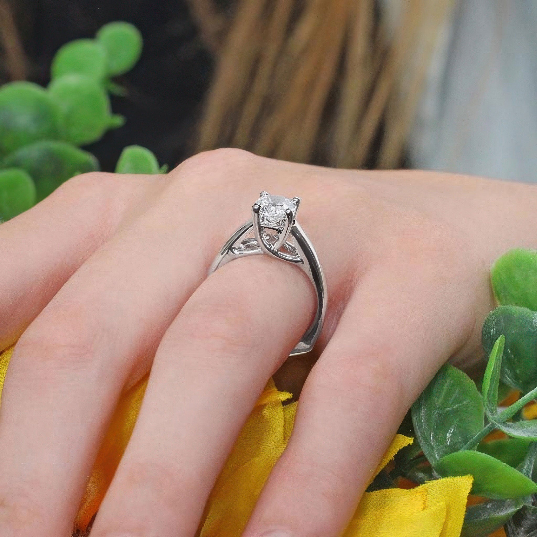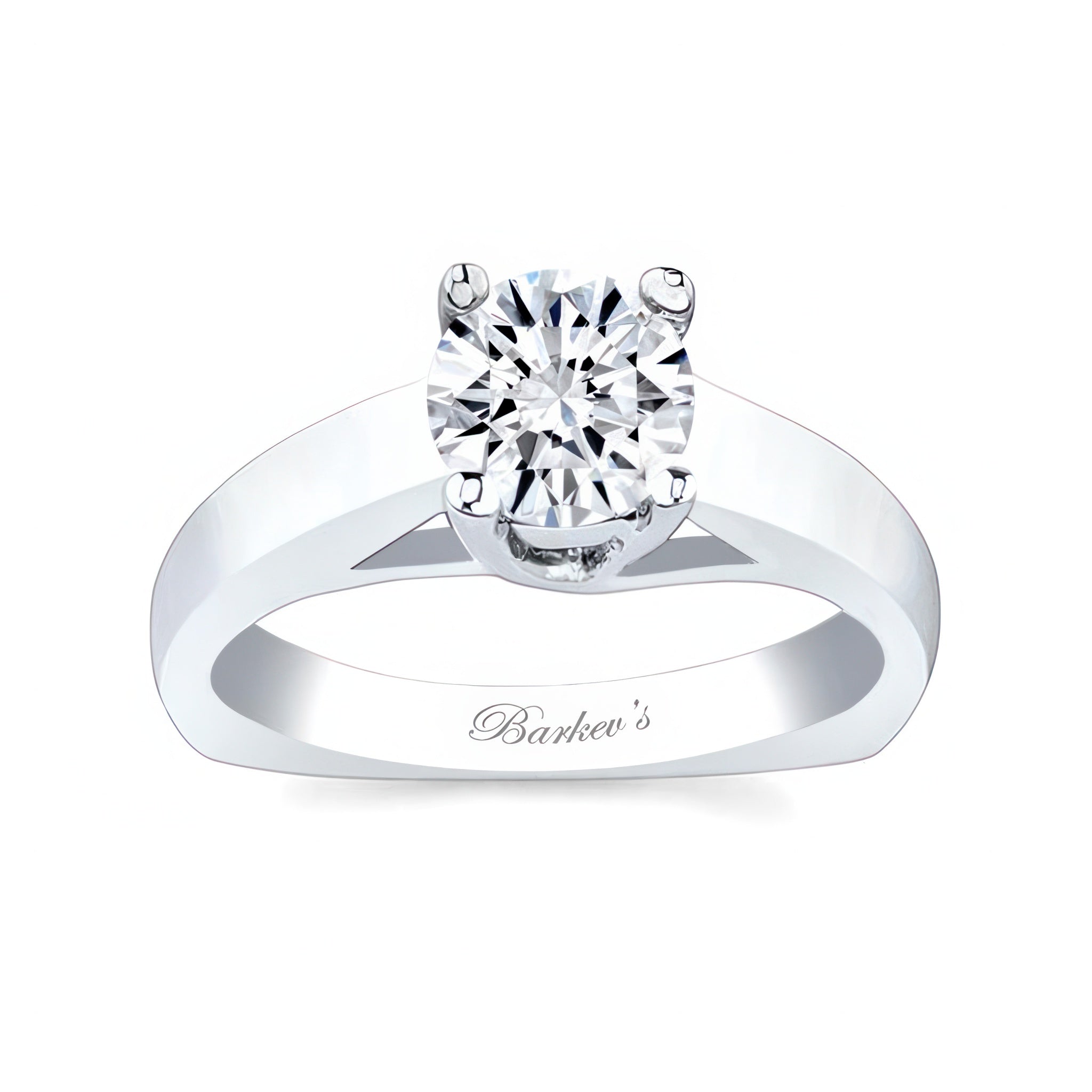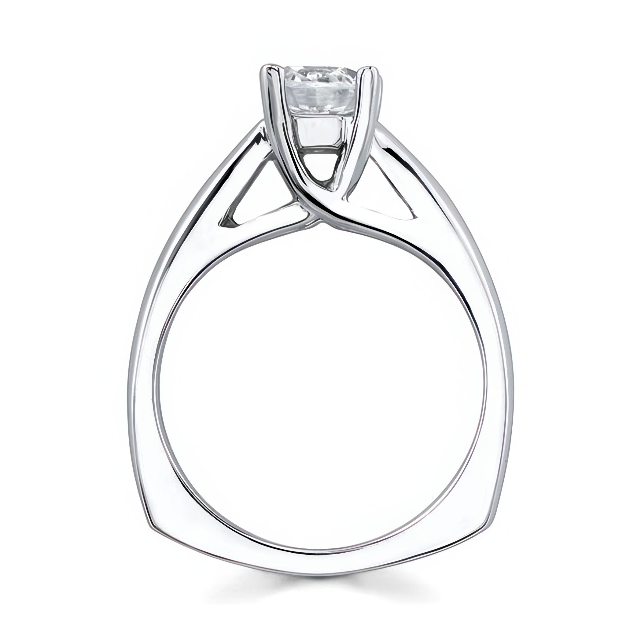 This 1 ct solitaire diamond ring features a prong set round center with a square shank and bright polish finish.