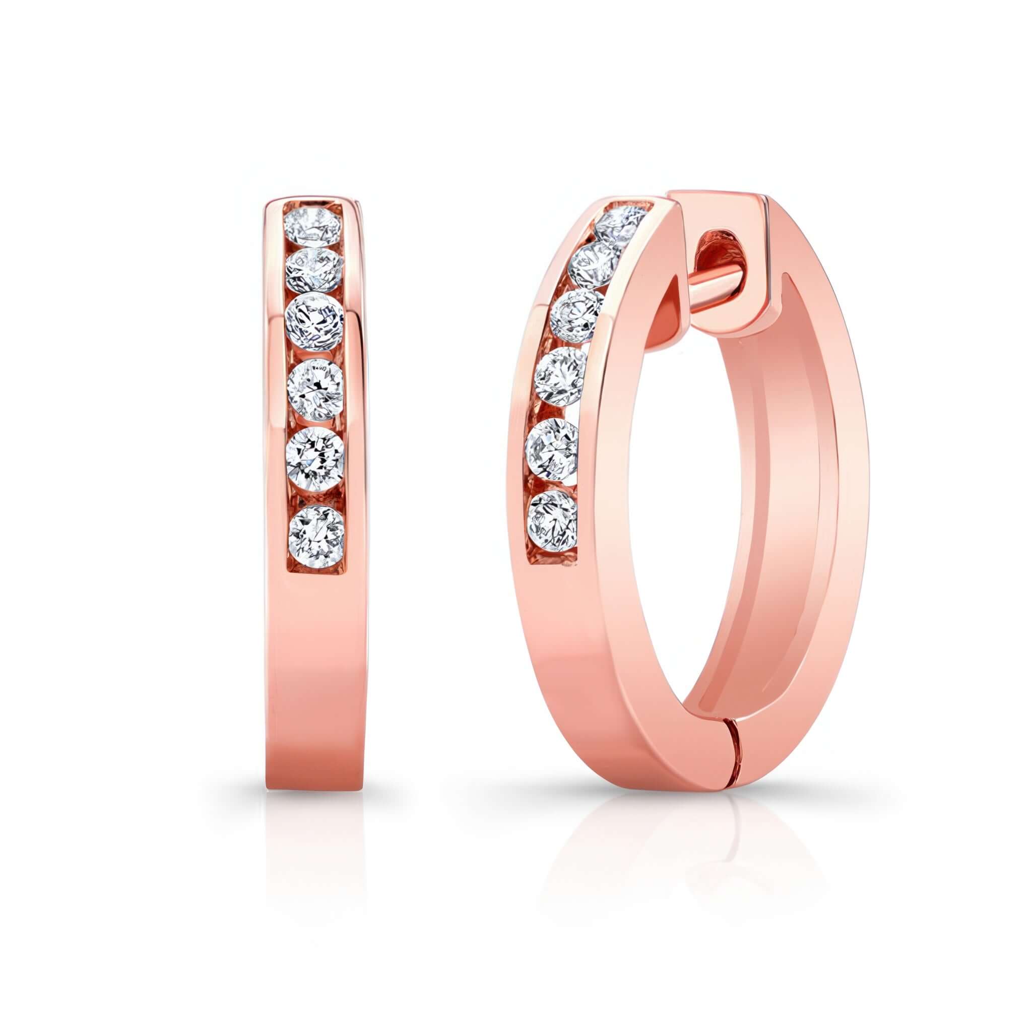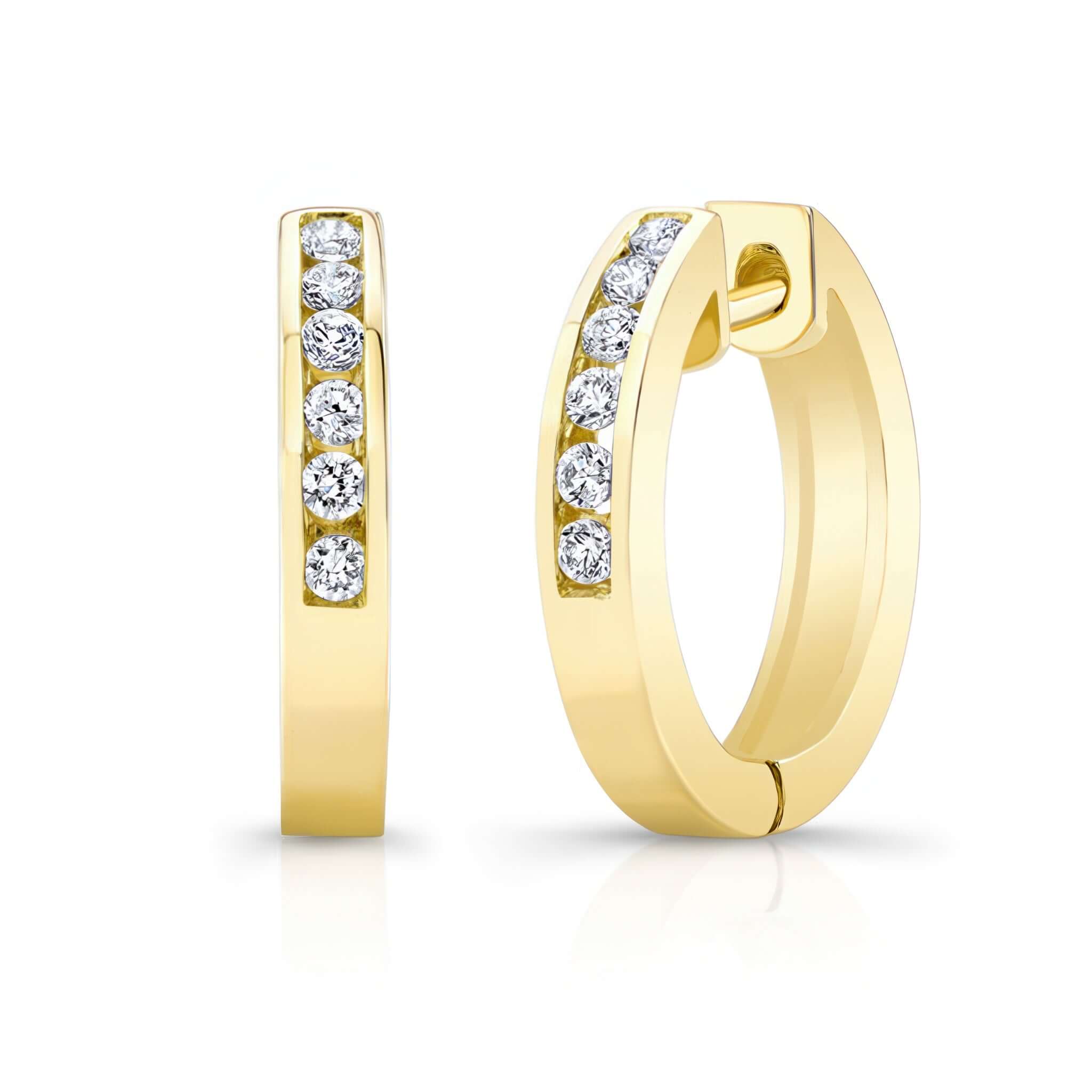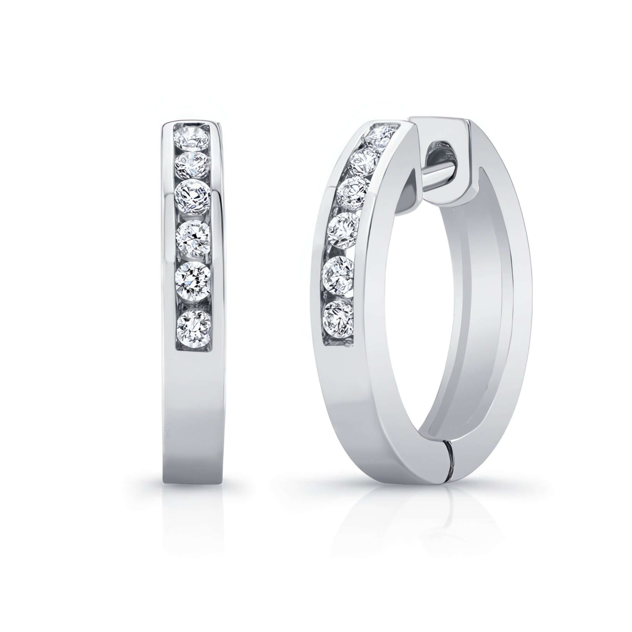 These 0.25 carat channel diamond hoop earrings feature channel set diamonds for a subtle shimmer.