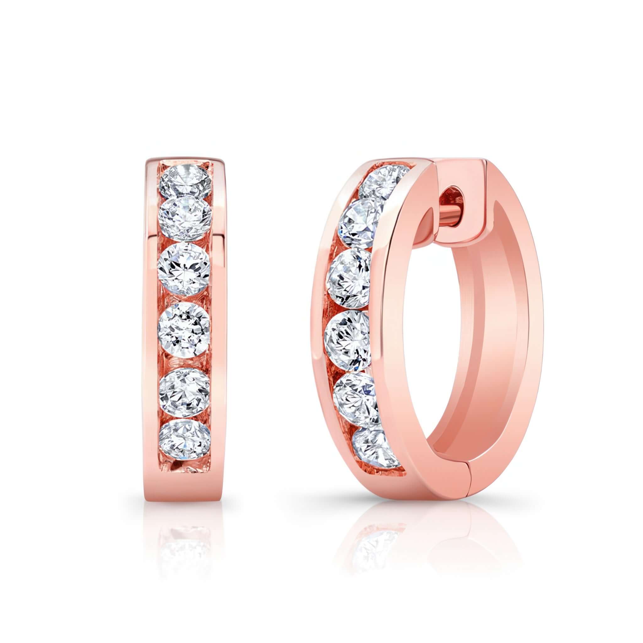 These 0.7 carat channel lab diamond hoop earrings feature channel set lab diamonds for a unique appeal.