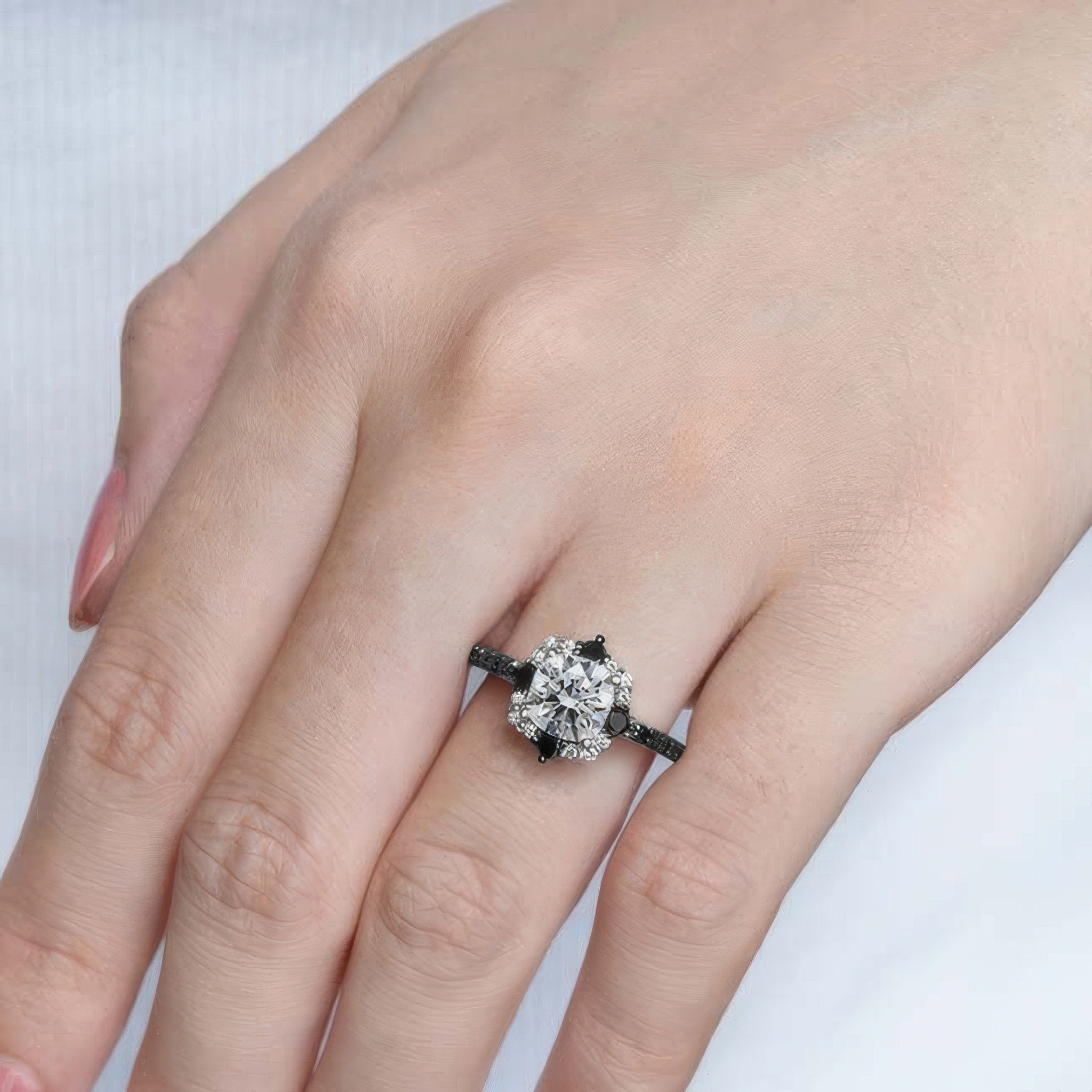 Halo Cushion Cut Black Diamond Accent Ring