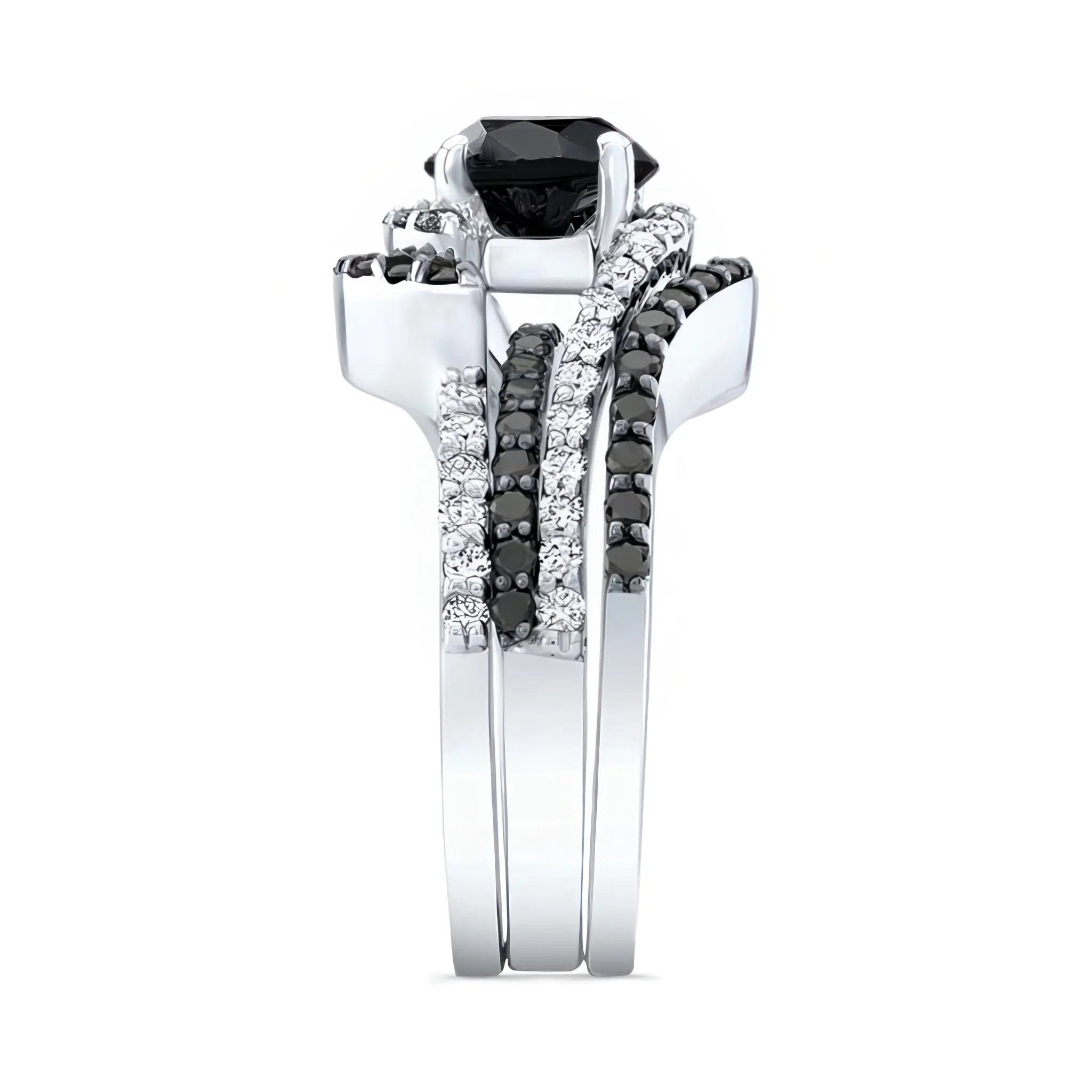 1 Carat Black Diamond Wedding Set With 2 Bands