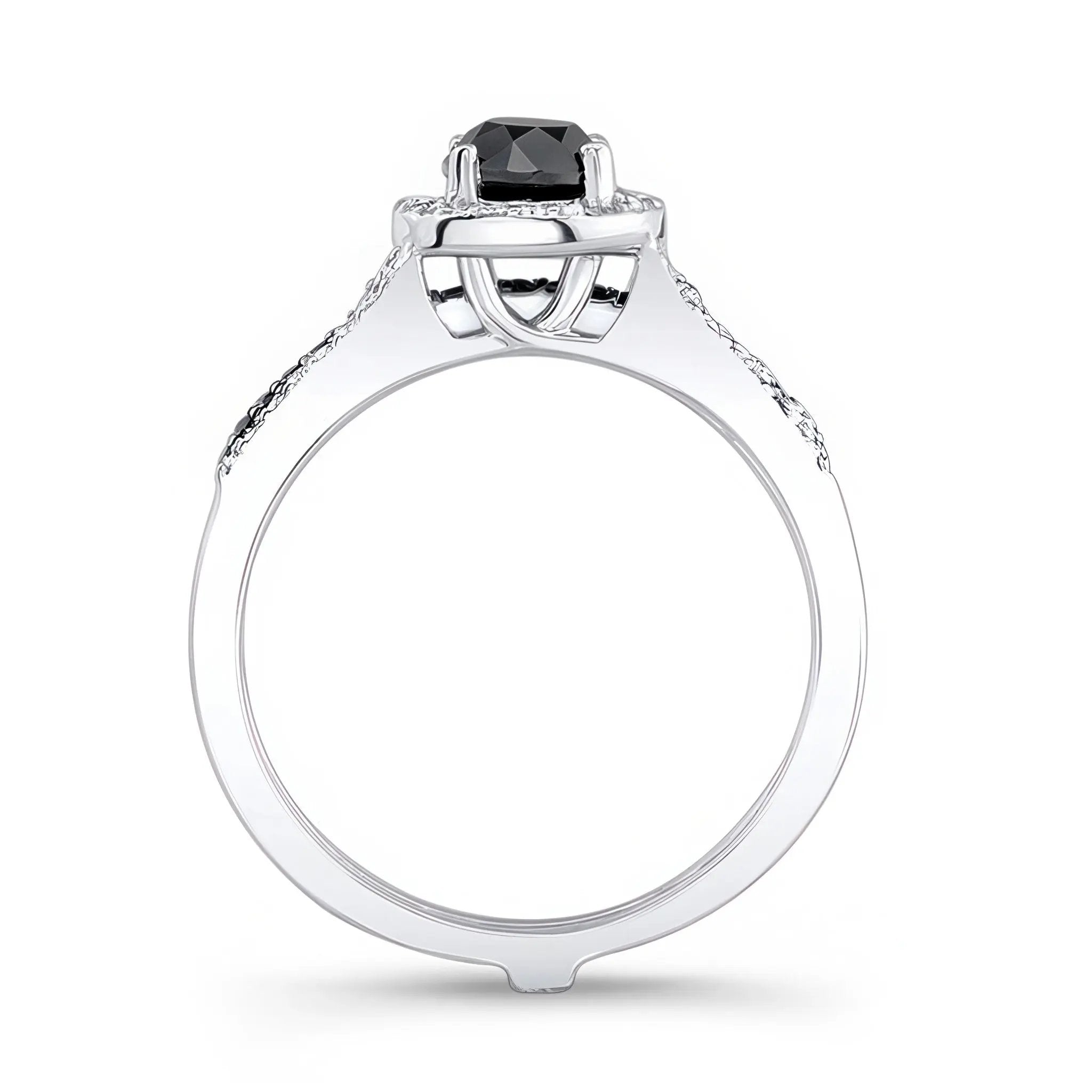Half Carat Interlock Halo Black Diamond Bridal Set