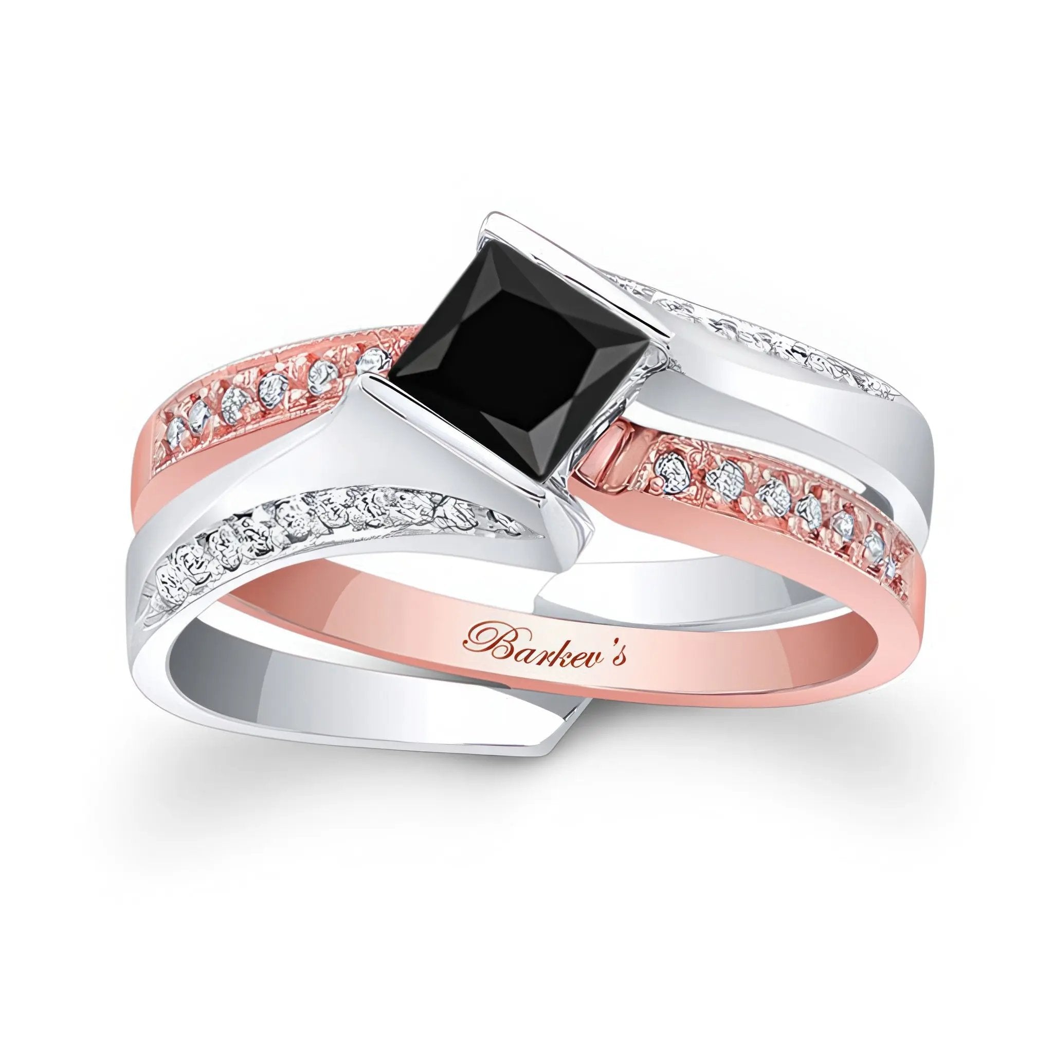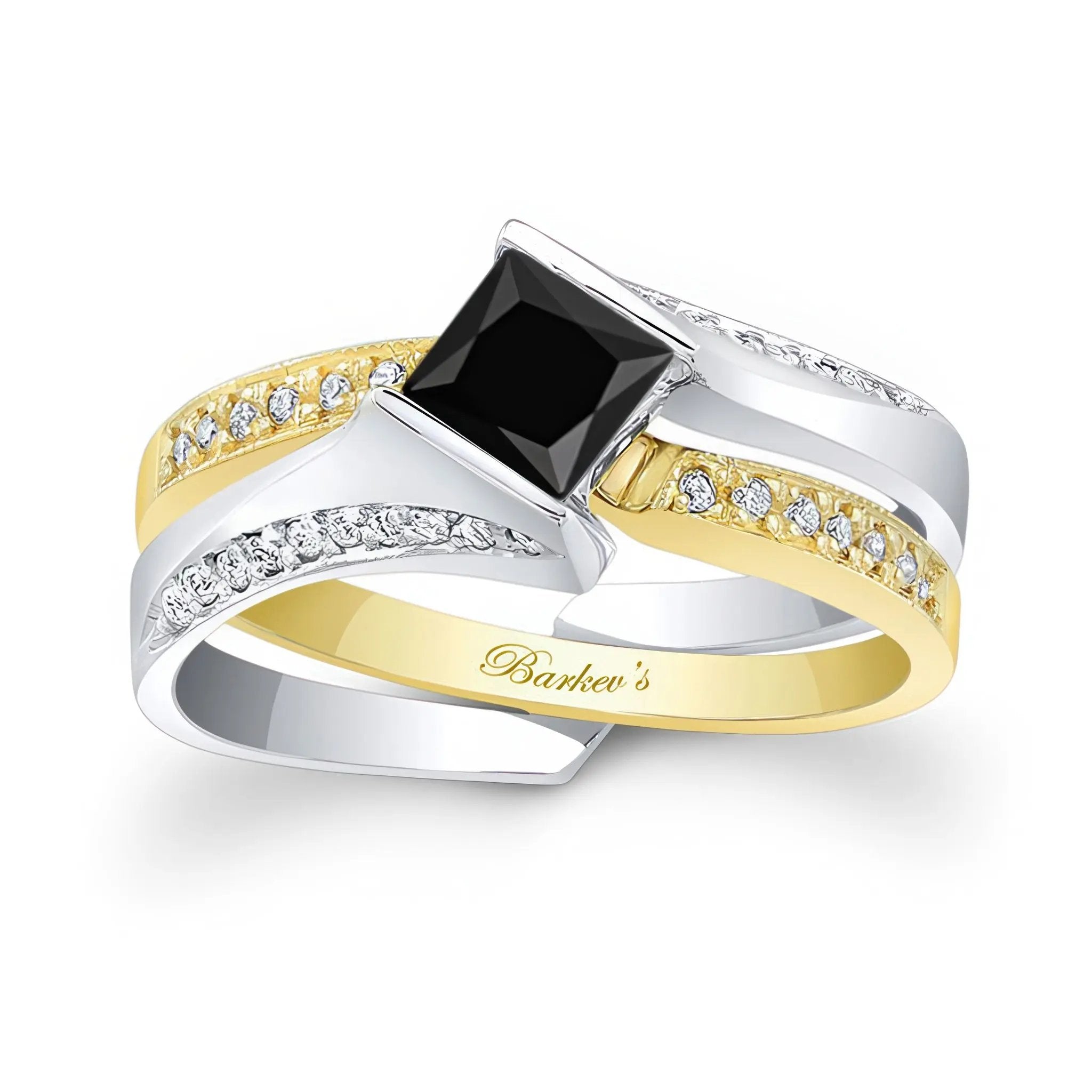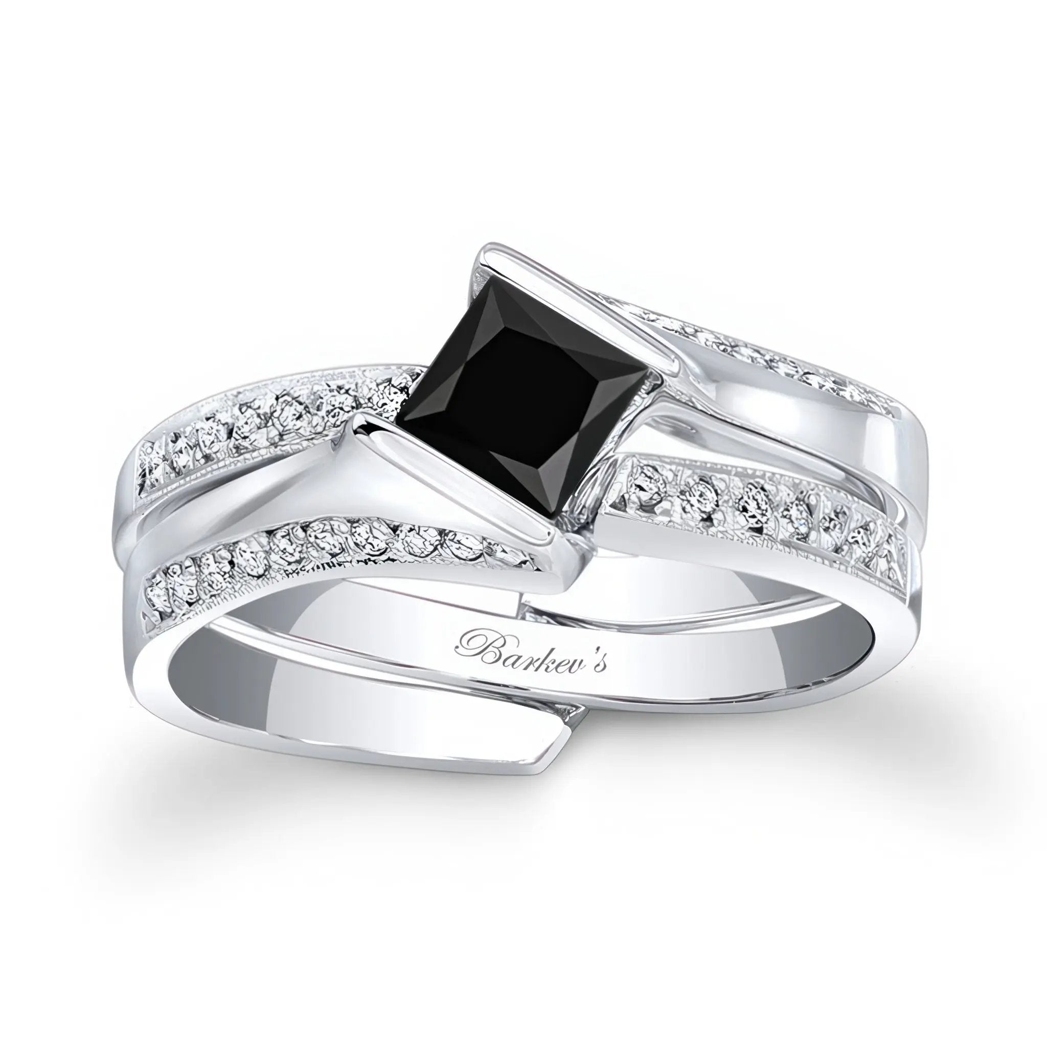 Half Carat Princess Black And White Diamond Interlock Bridal Set