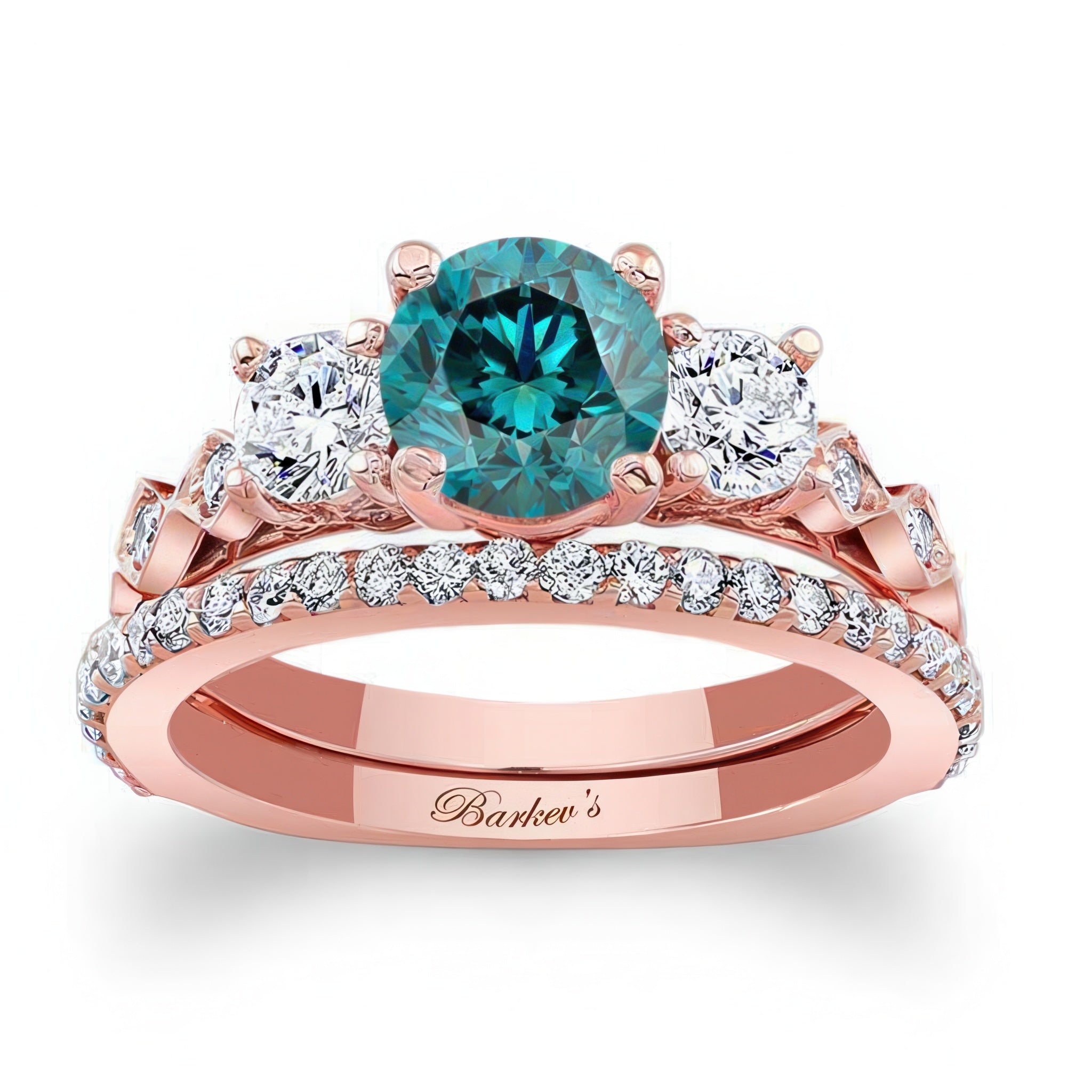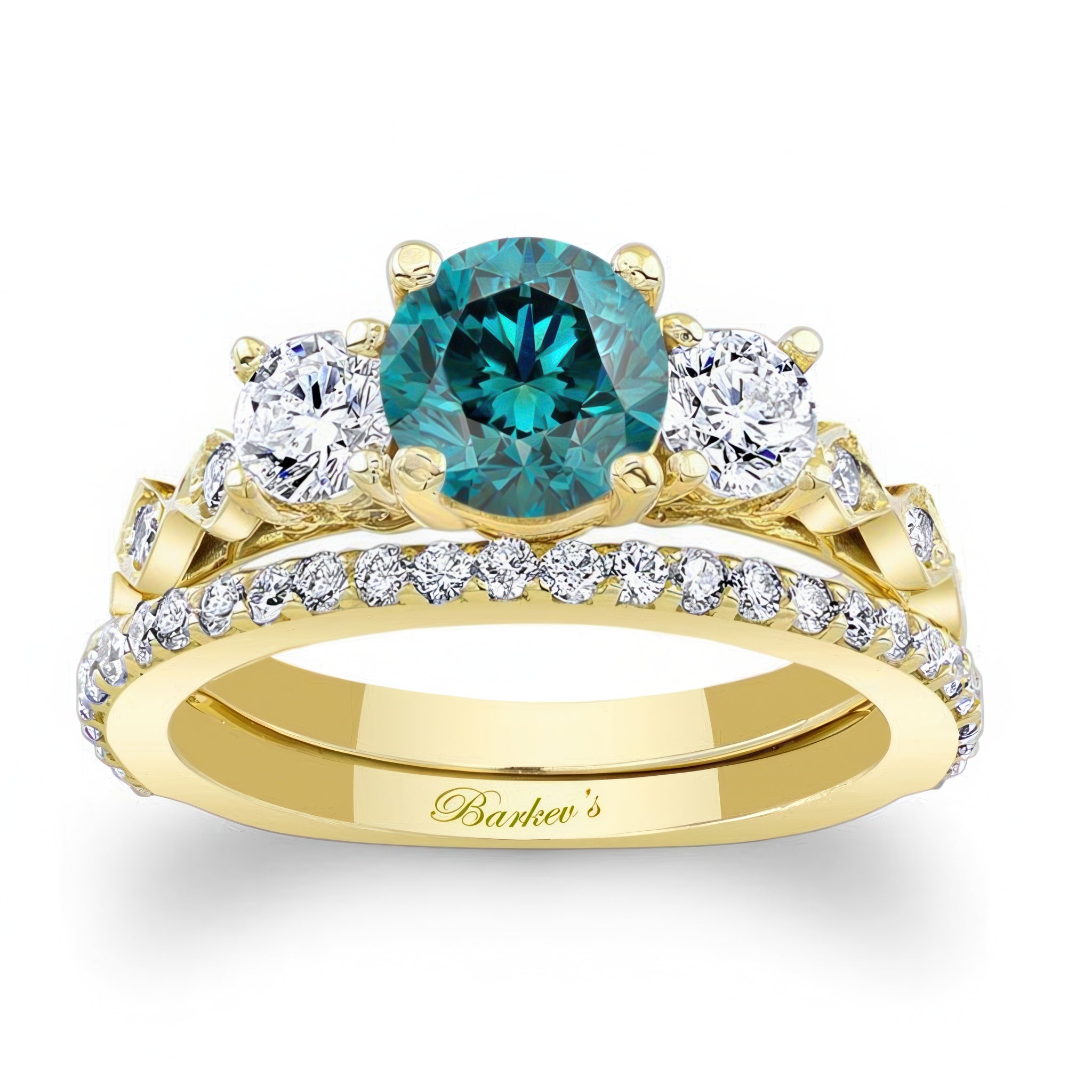 Vintage 3 Stone Blue And White Diamond Ring Set