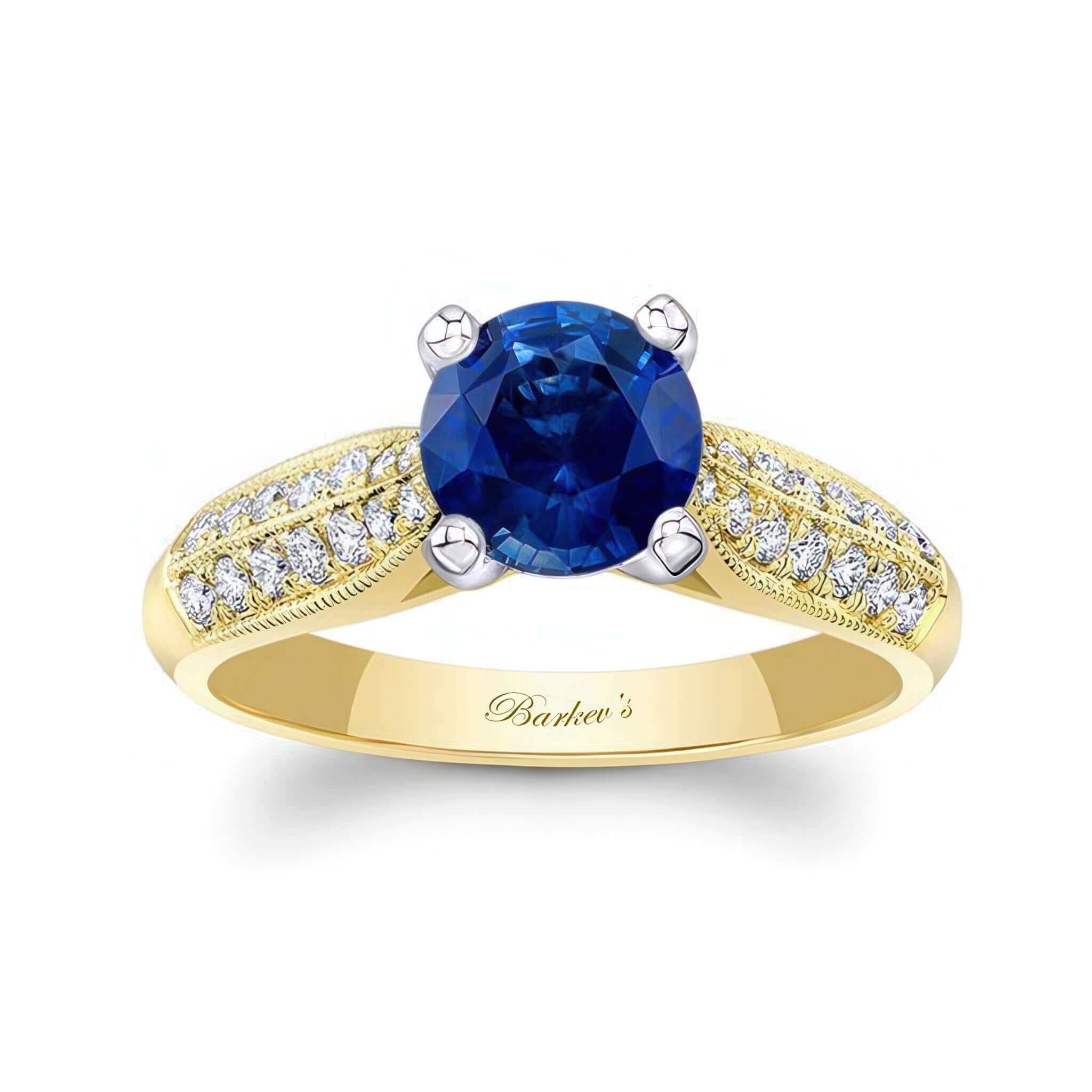 A beautiful 2 row blue sapphire and diamond ring featuring two rows of diamonds neatly set into the band and a brilliant 1 carat round center made to impress onlookers.