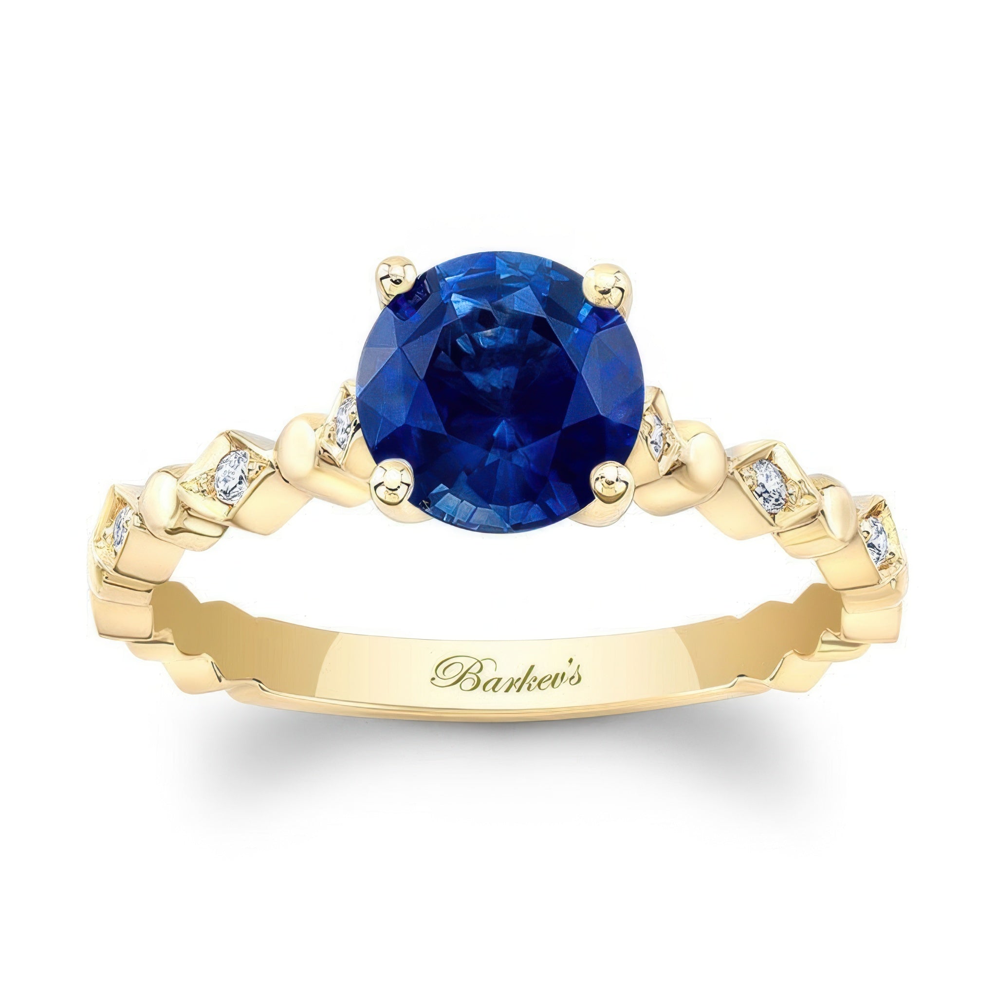This art deco blue sapphire and diamond engagement ring combines a vintage and modern dainty design. The center sits beautifully on the playful diamond pave setting adorning the band.