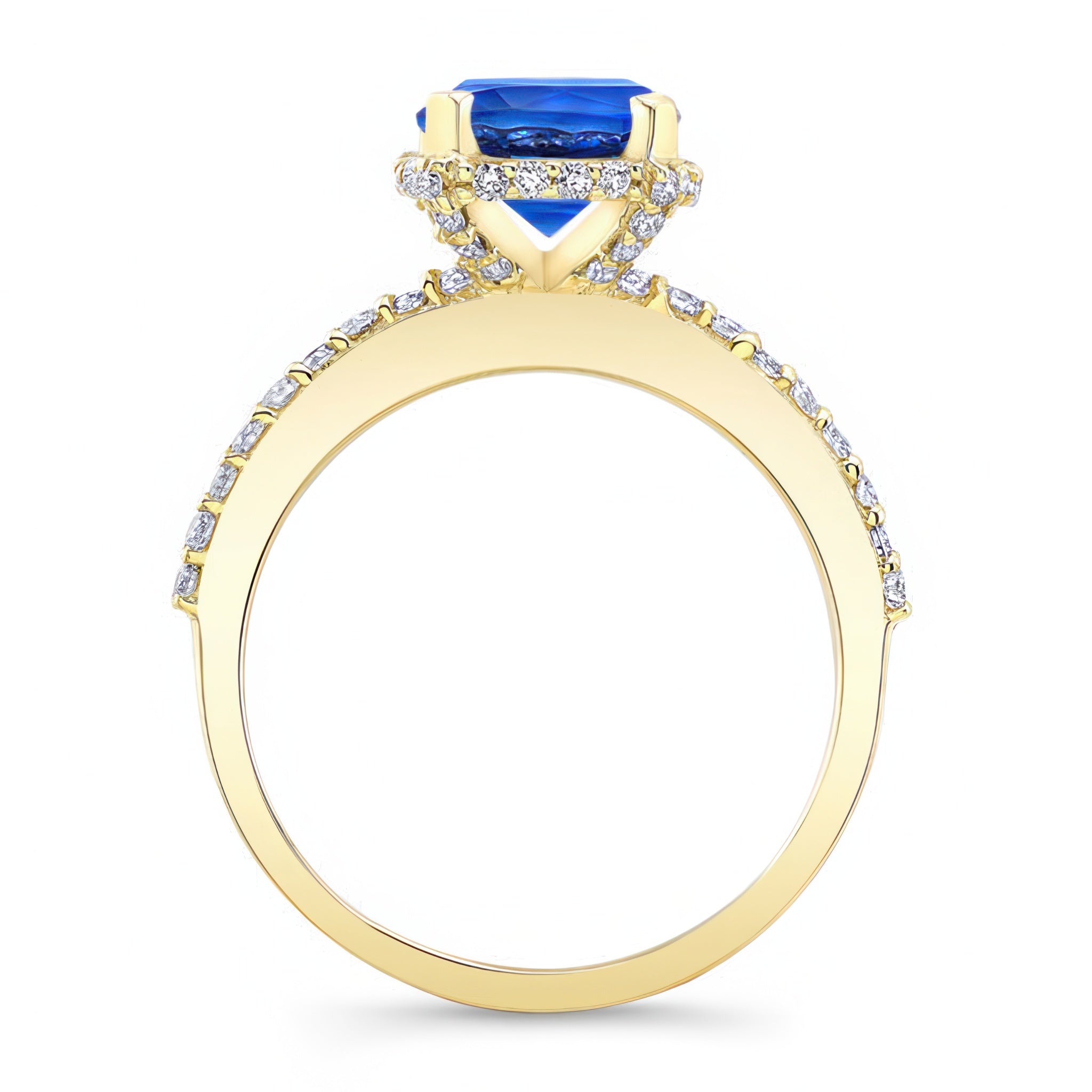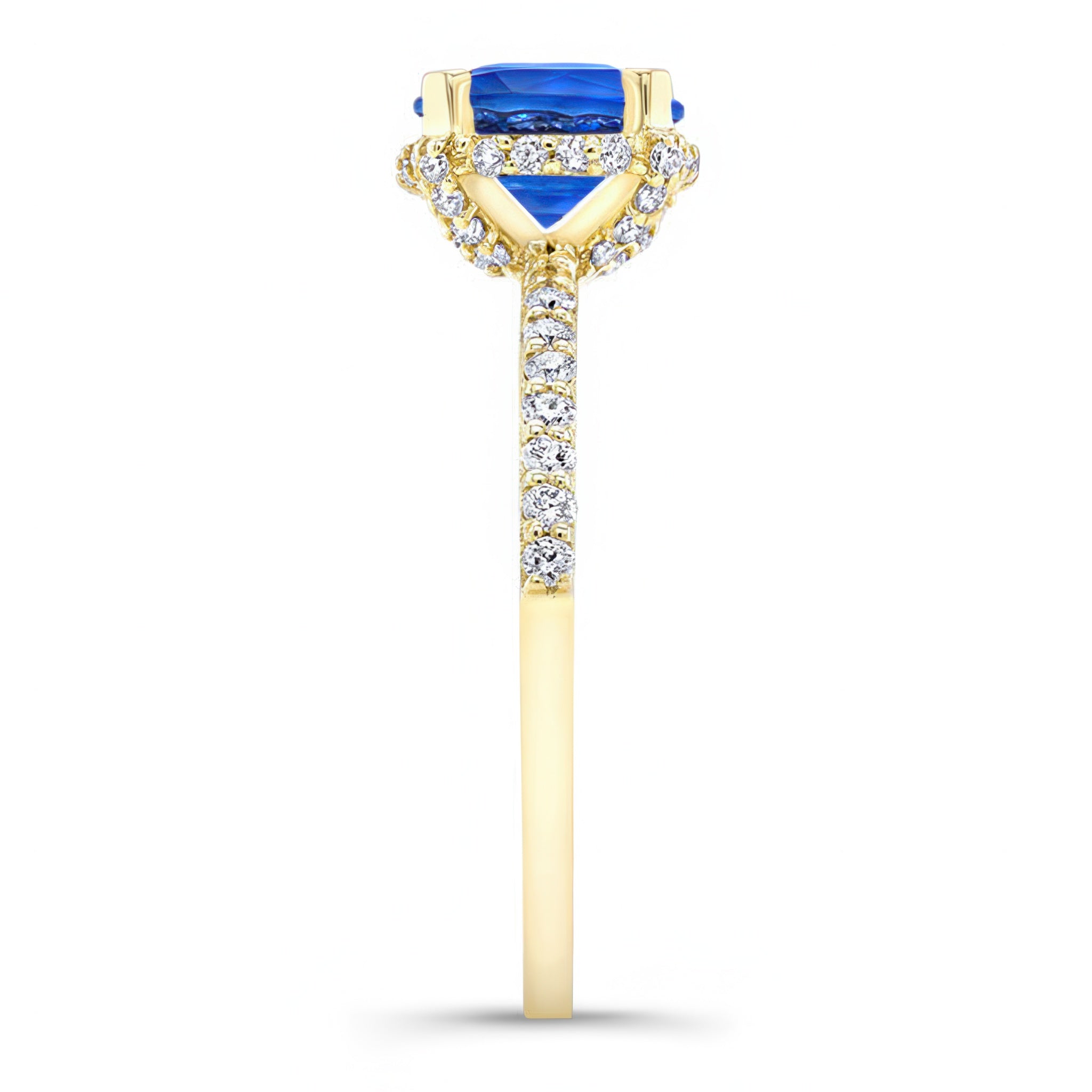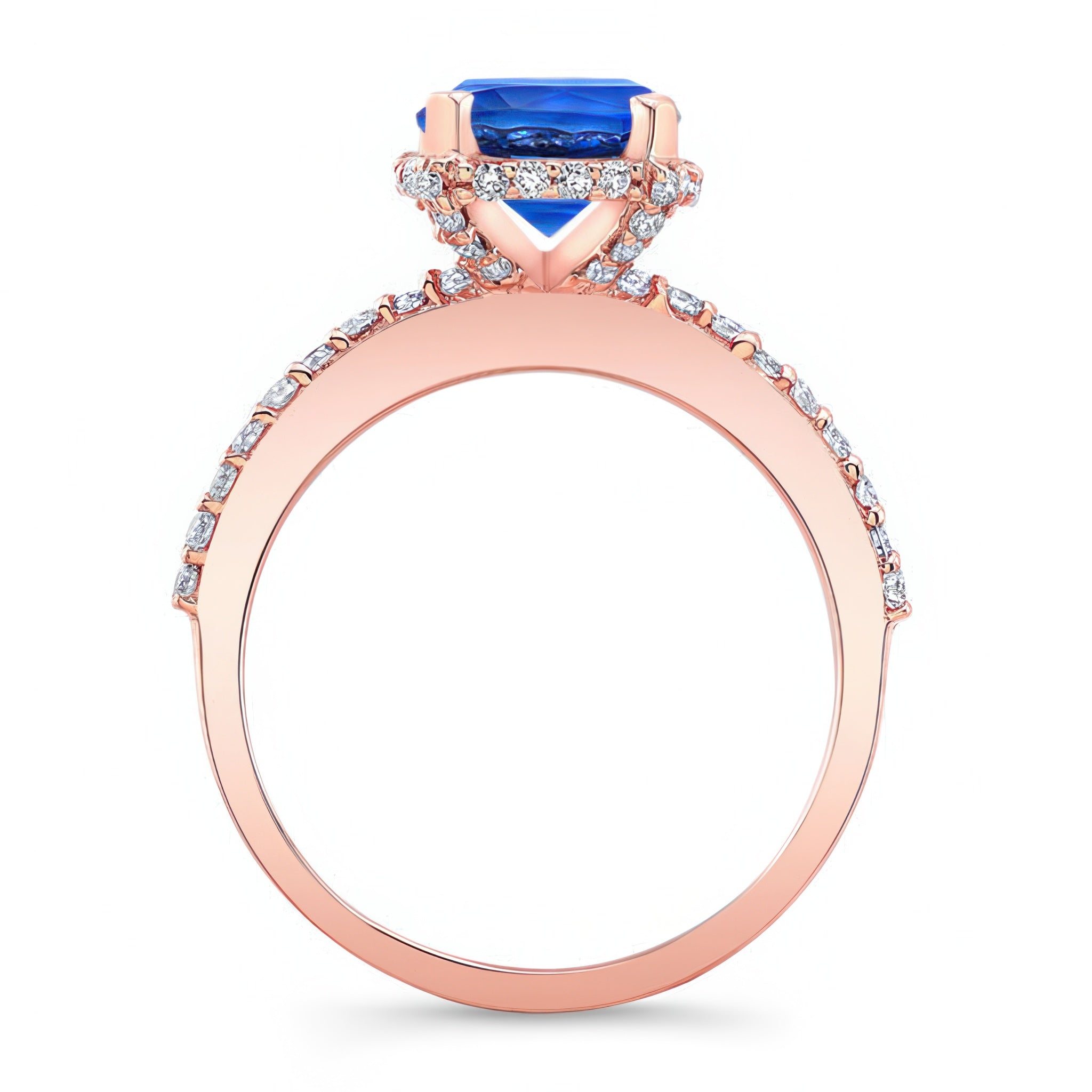 Blue Sapphire And Diamond Hidden Halo Ring