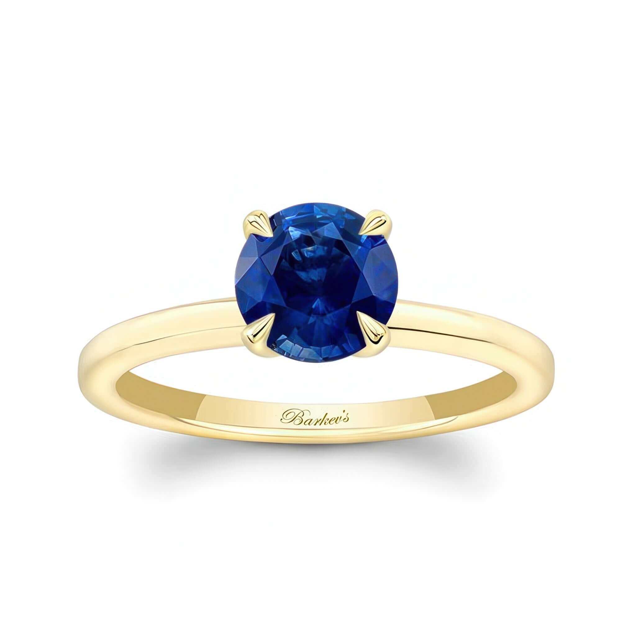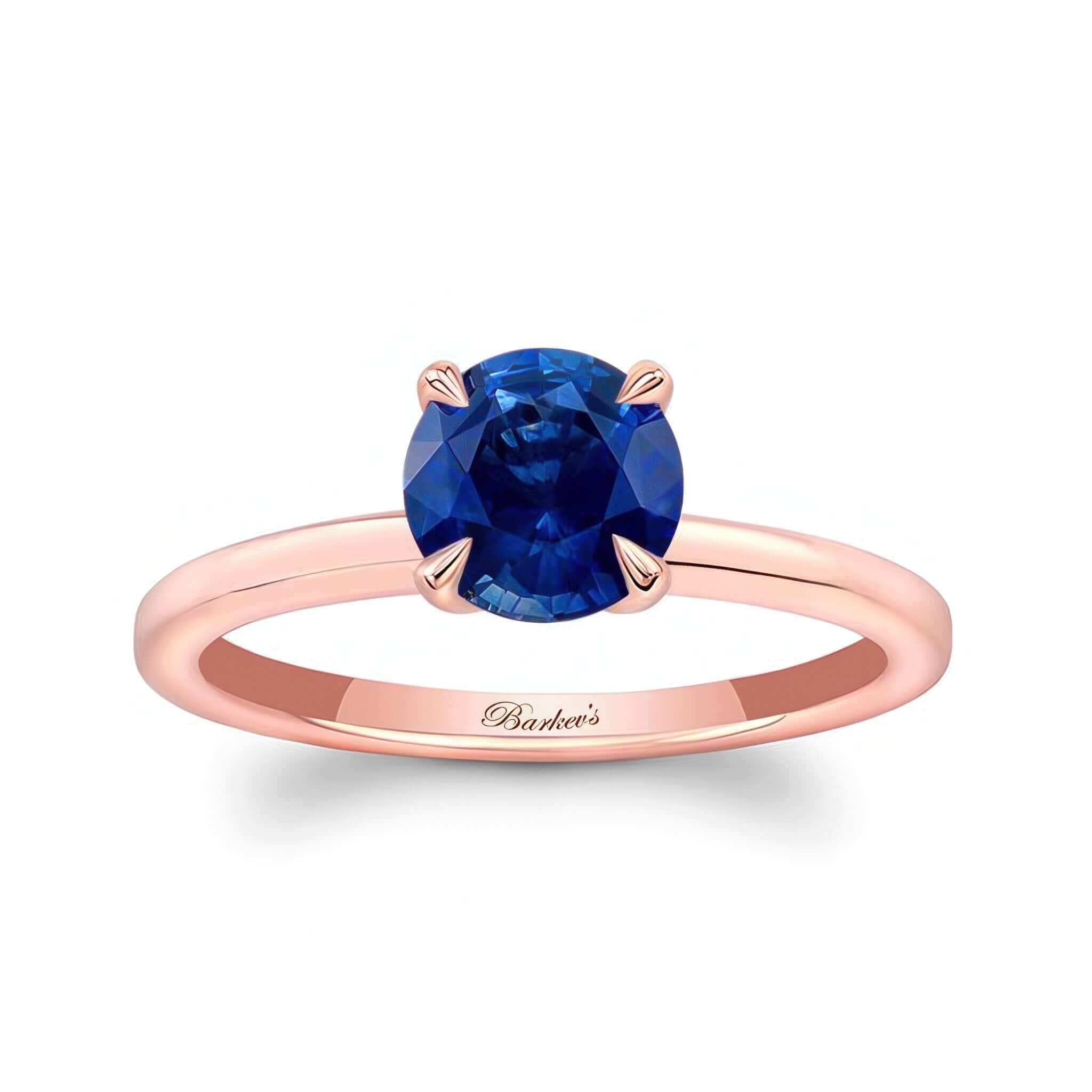 This minimal blue sapphire and diamond micro pave hidden halo ring features a prong set round center with a diamond halo sitting underneath it for a stunning modern look.