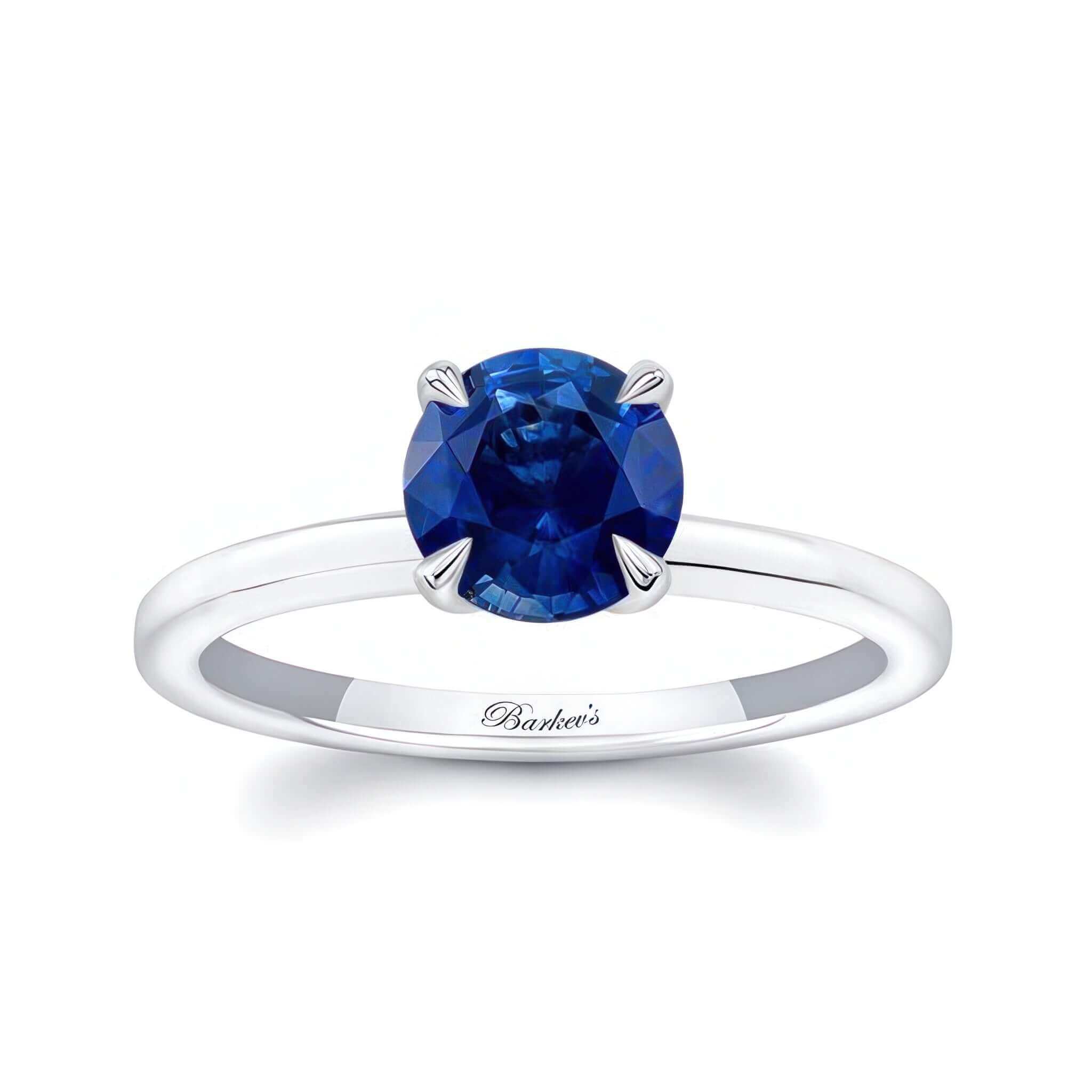 This minimal blue sapphire solitaire ring features a prong set round center for a stunning modern look.