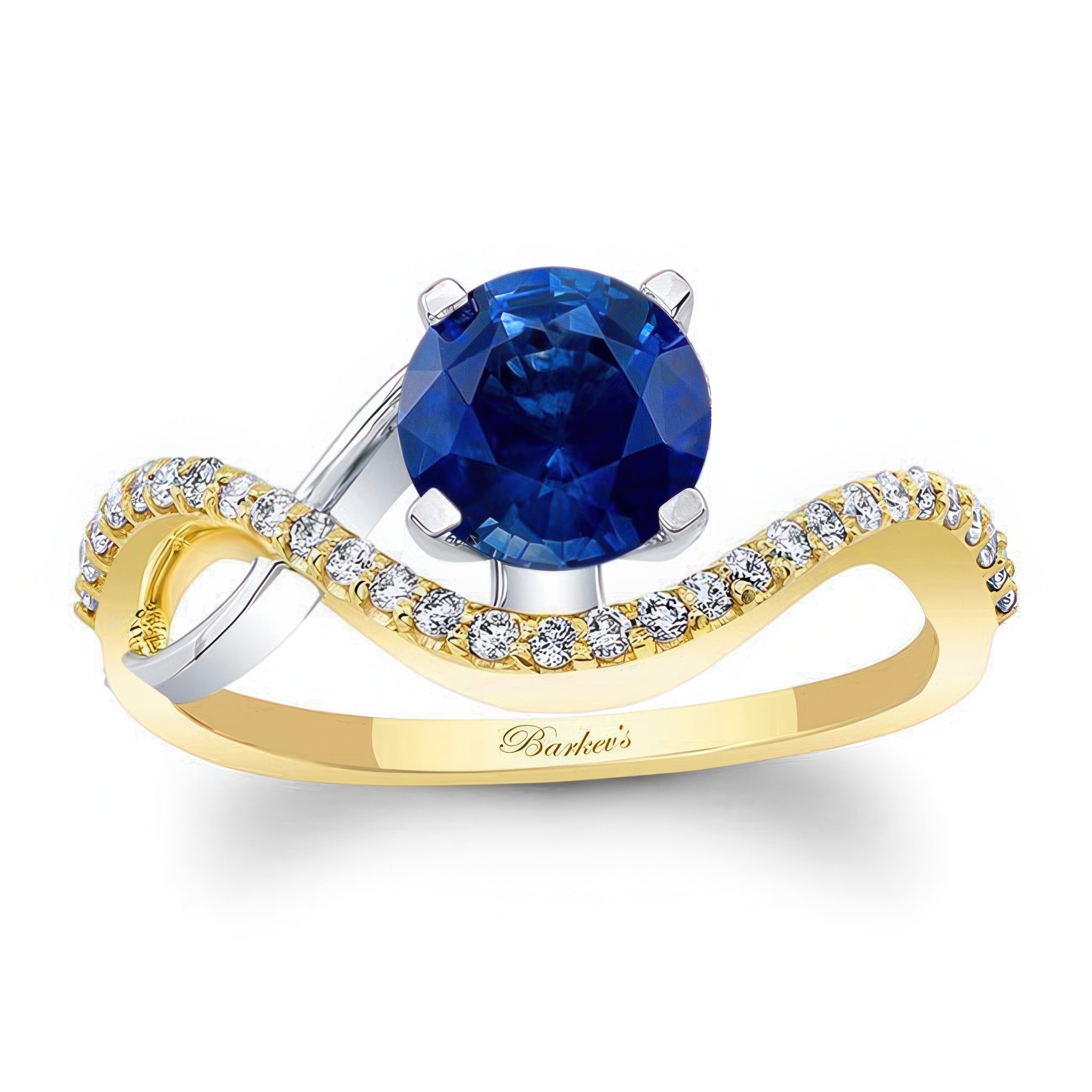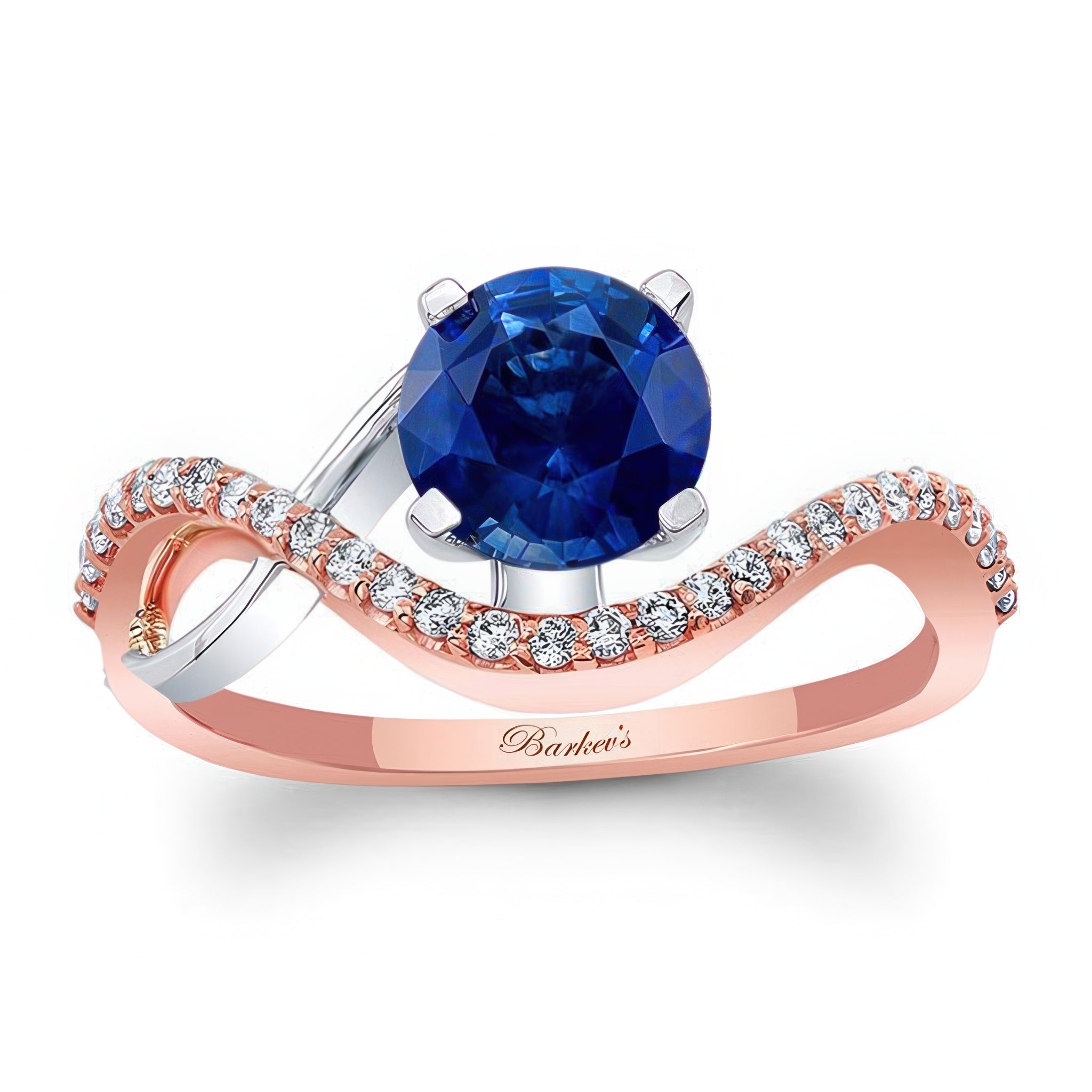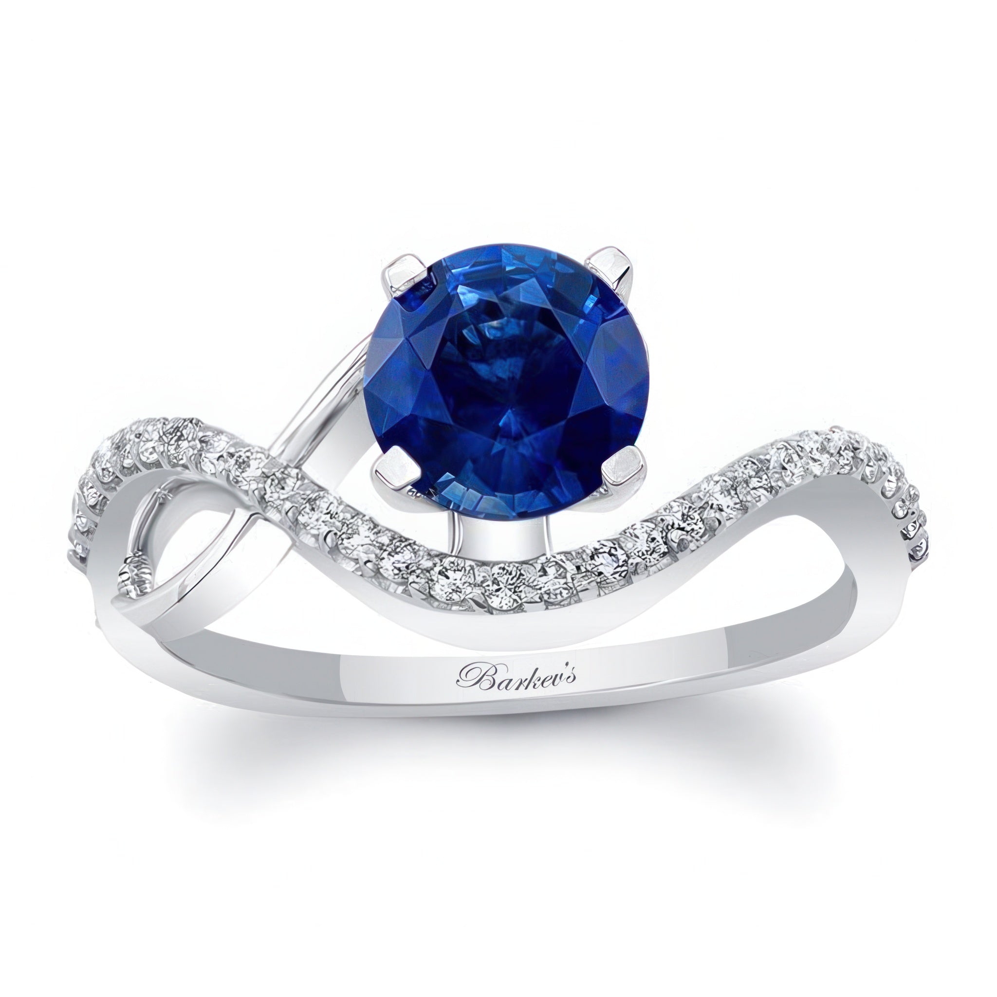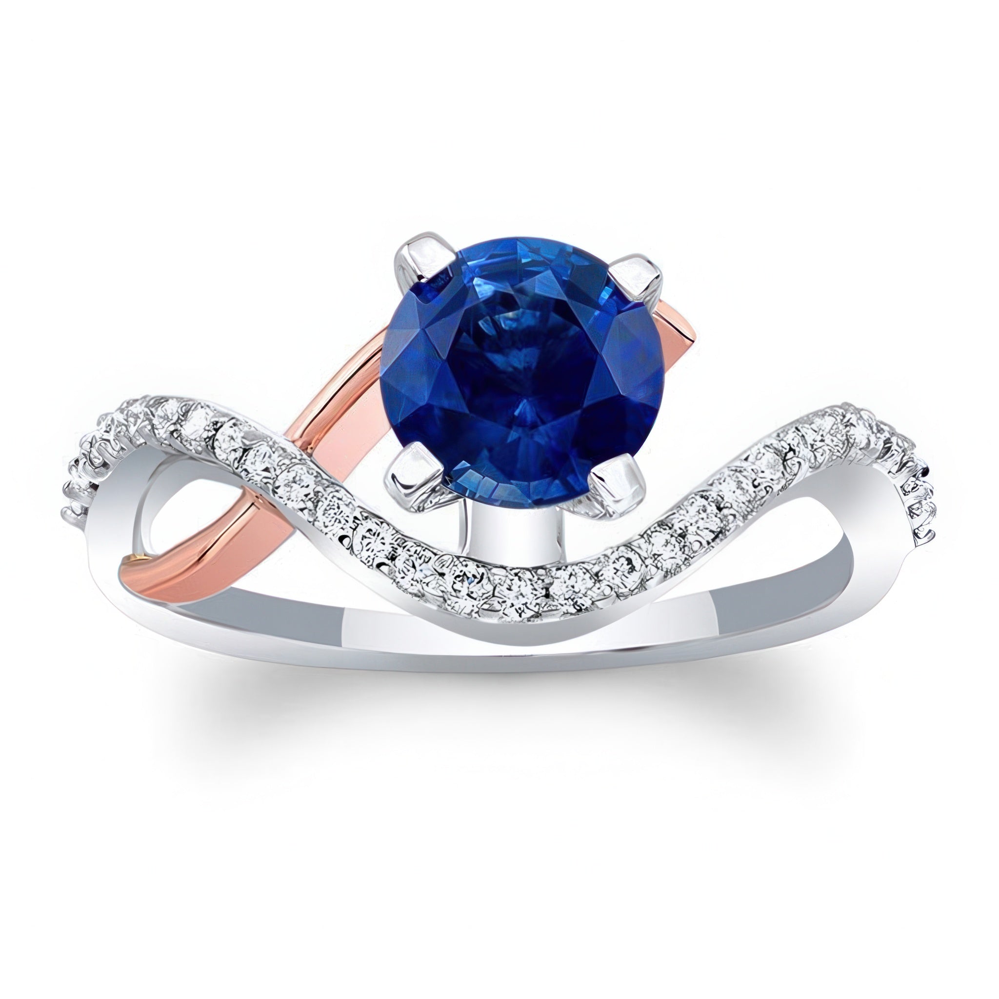 Curved Blue Sapphire And Diamond Wedding Ring