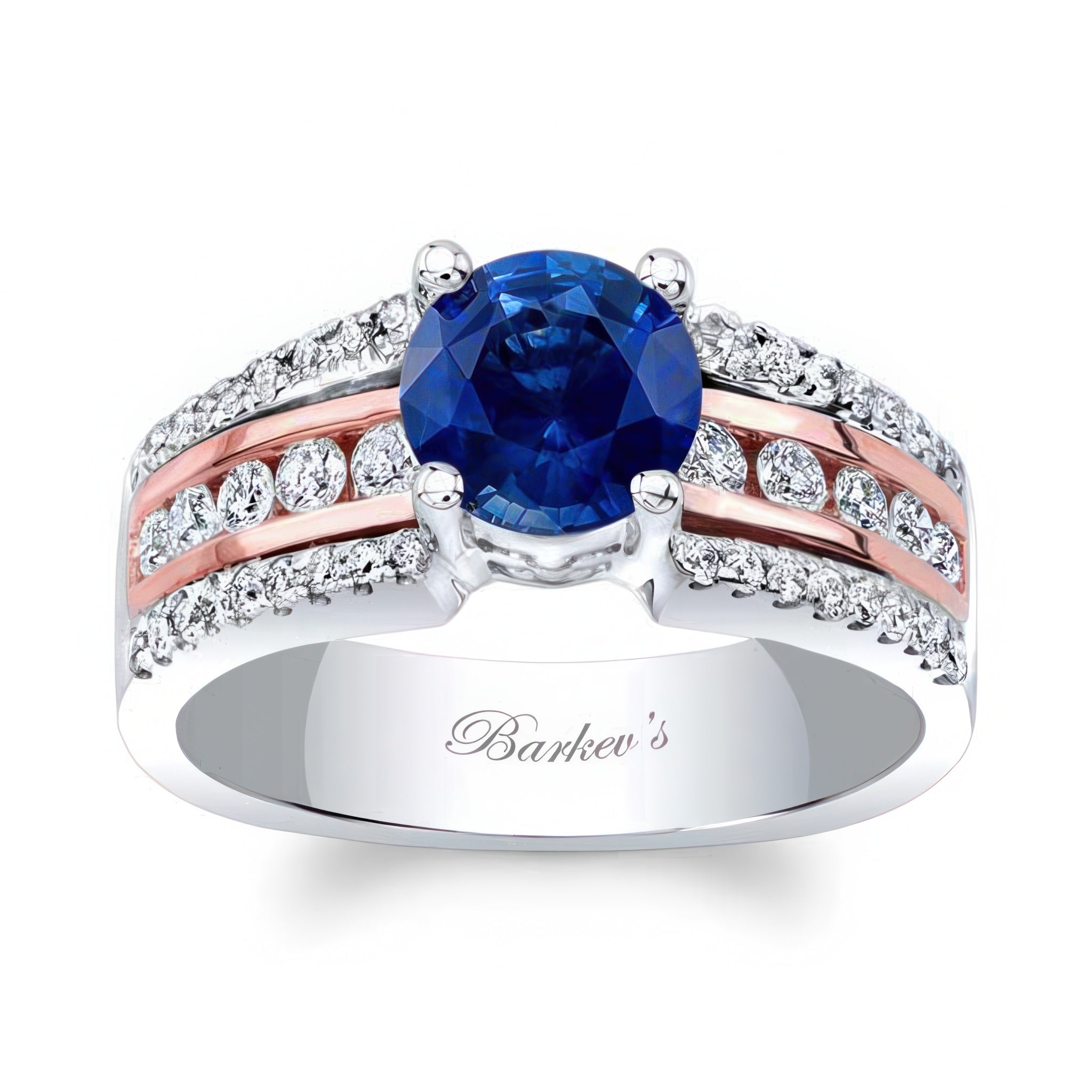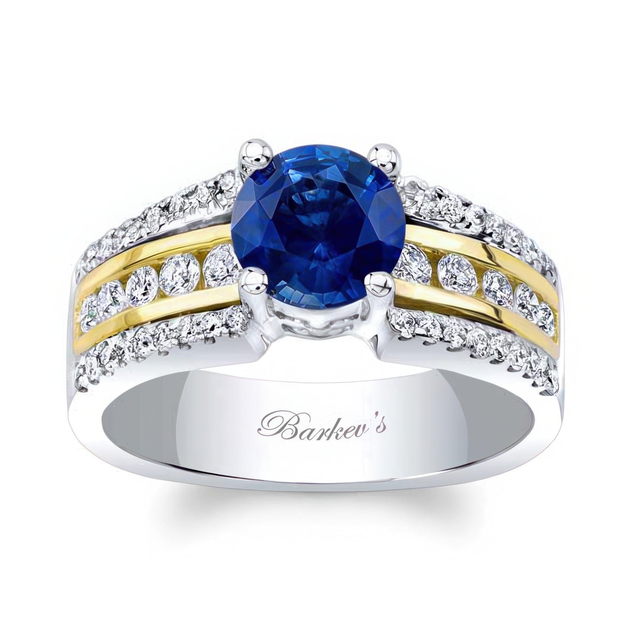 Round Blue Sapphire And Diamond Channel Set Engagement Ring
