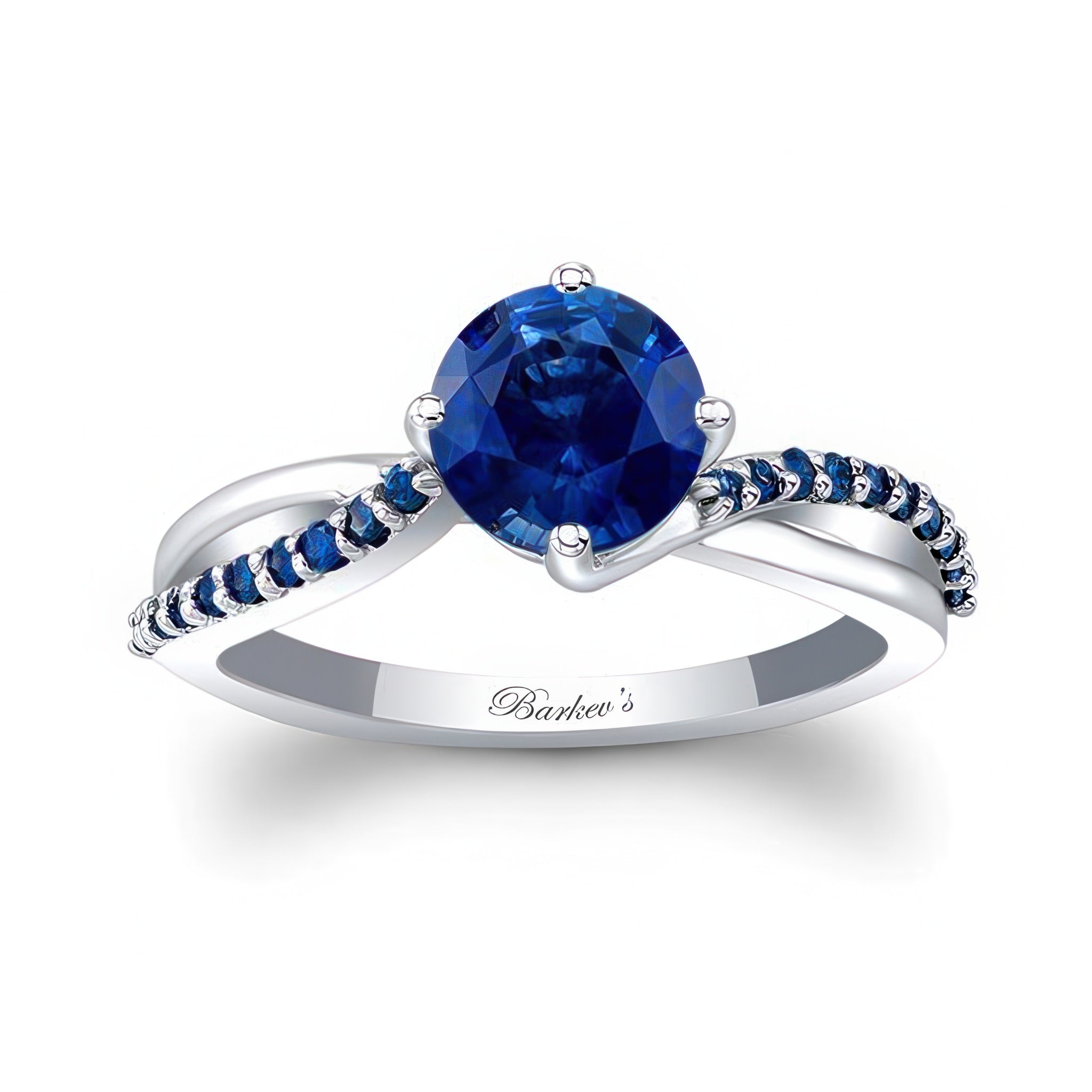 Diamond accents along the twist add subtle sparkle and amplify the sapphire’s brilliance.The twisted band flows naturally toward the center, drawing the eye with sculptural elegance. An open-shoulder design adds a sense of lightness and grace, while the deep blue stone commands attention with timeless poise.Â