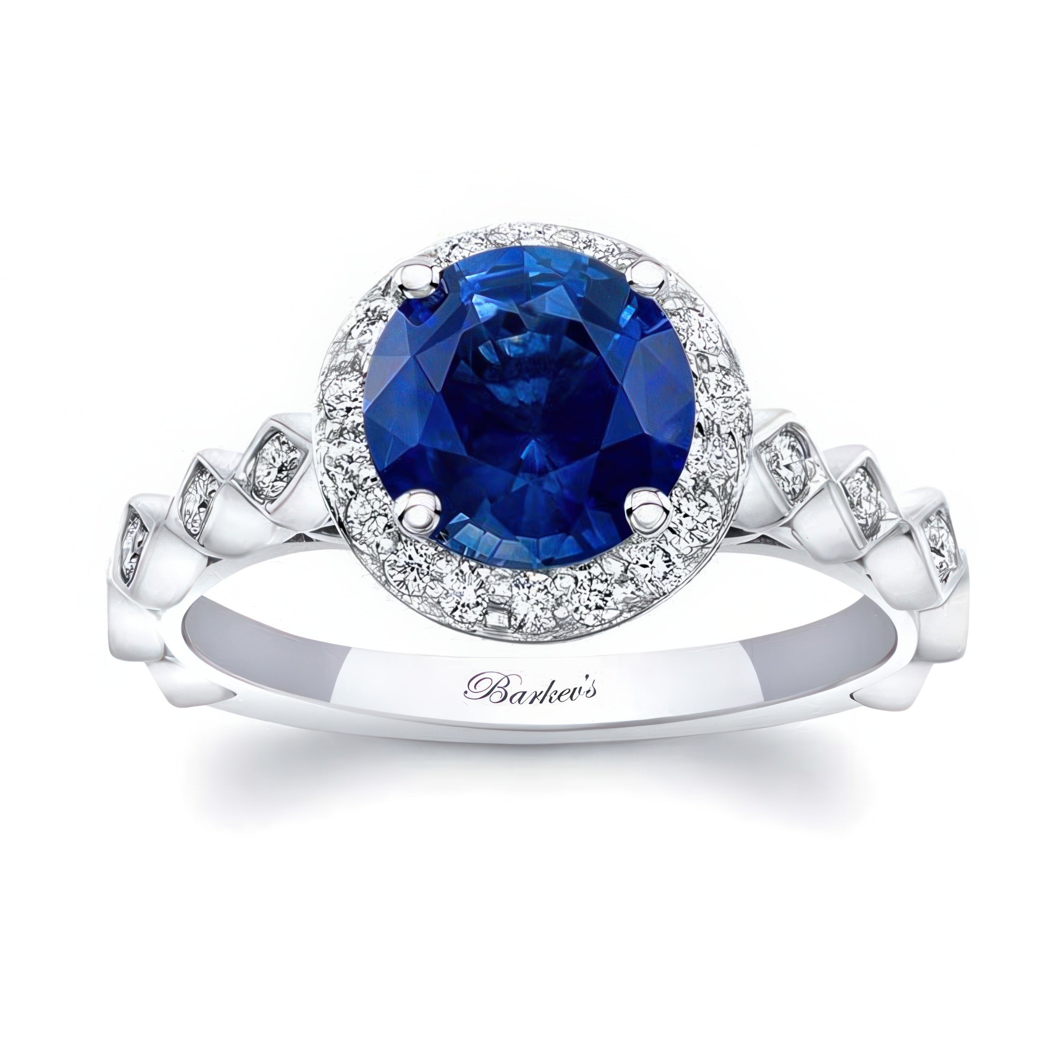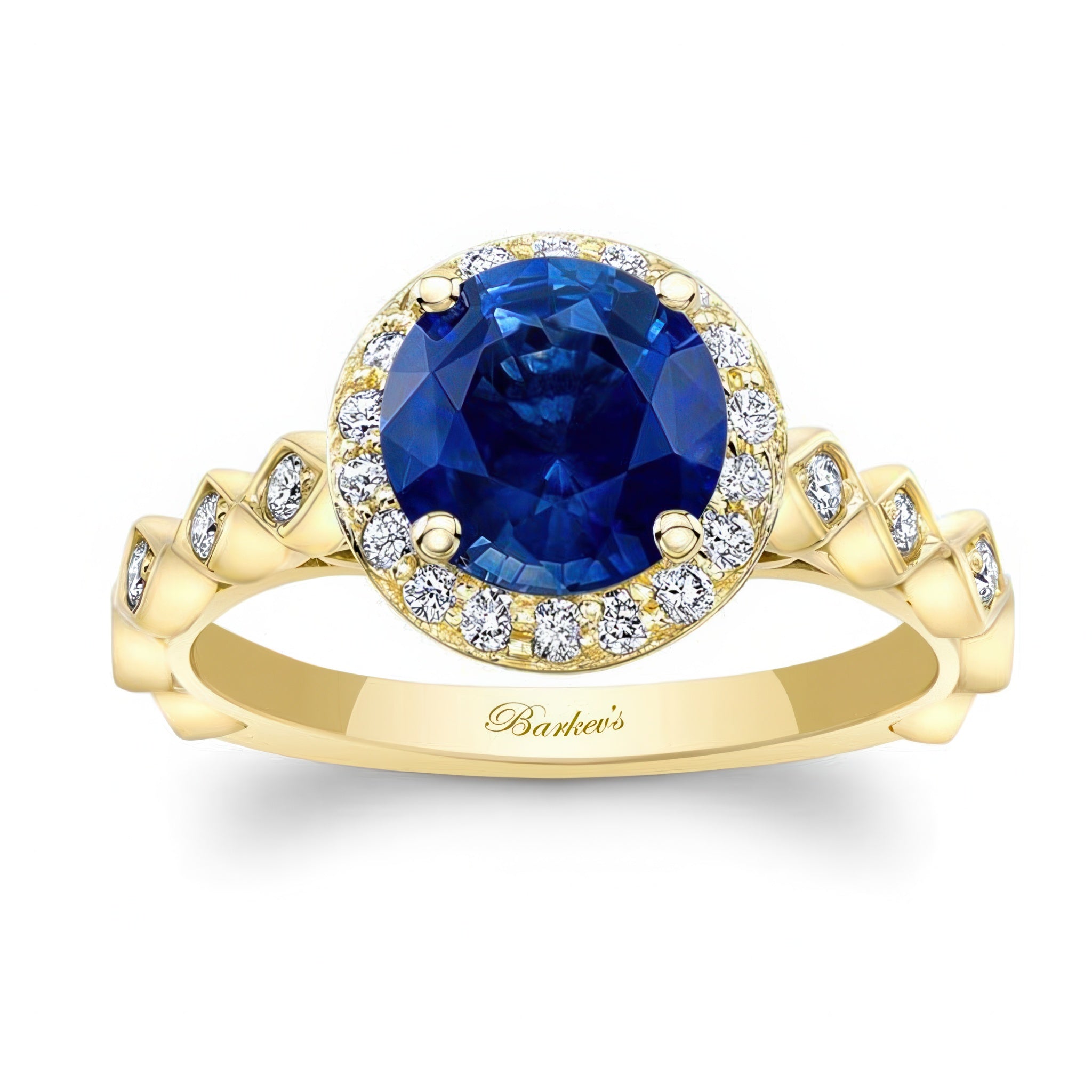Vintage Halo Blue Sapphire And Diamond Engagement Ring