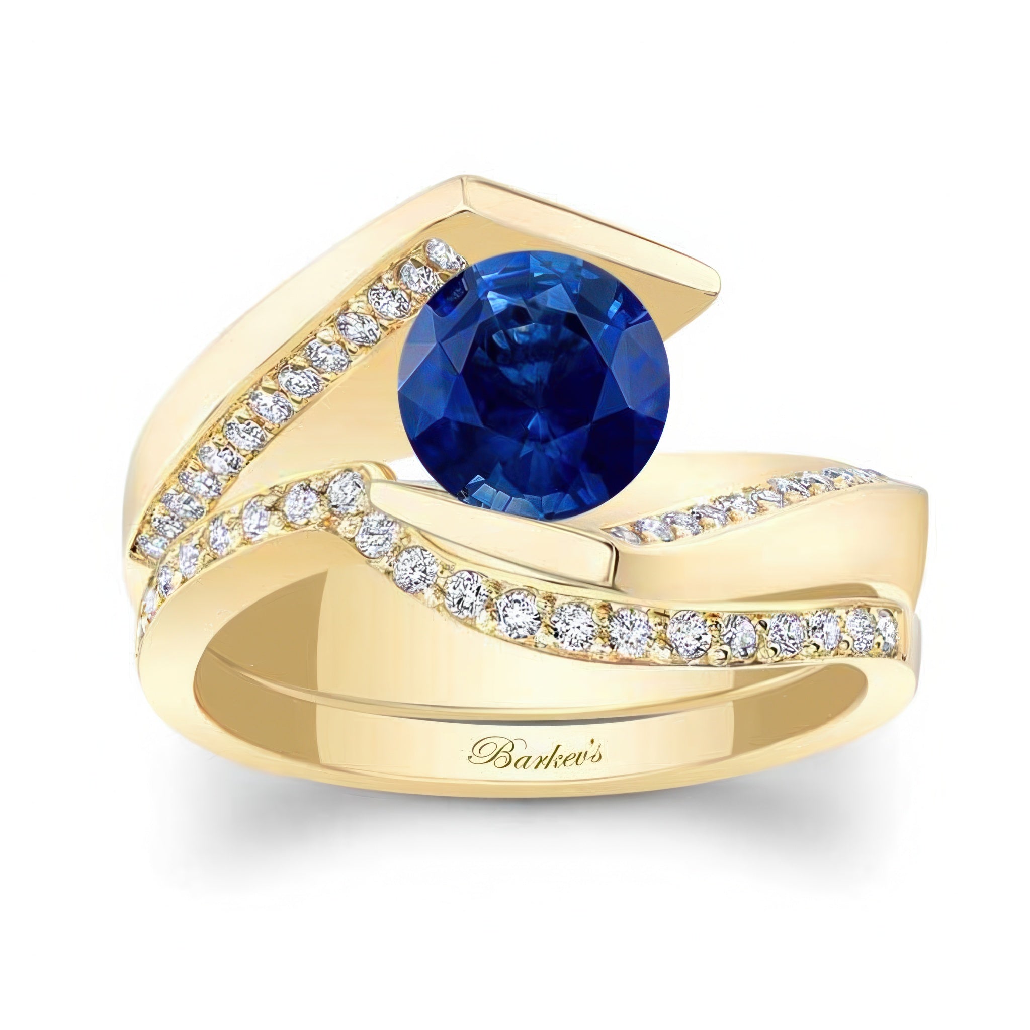 Tension Setting Blue Sapphire And Diamond Bridal Set
