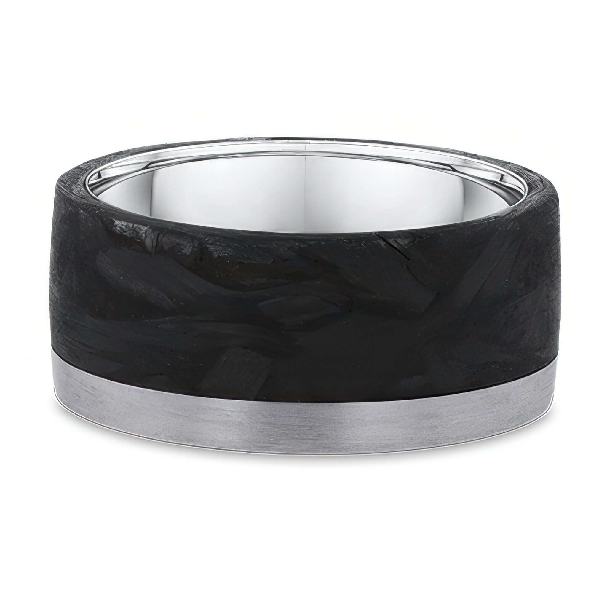 10mm Brushed Carbon Fiber and White Gold Wedding Band