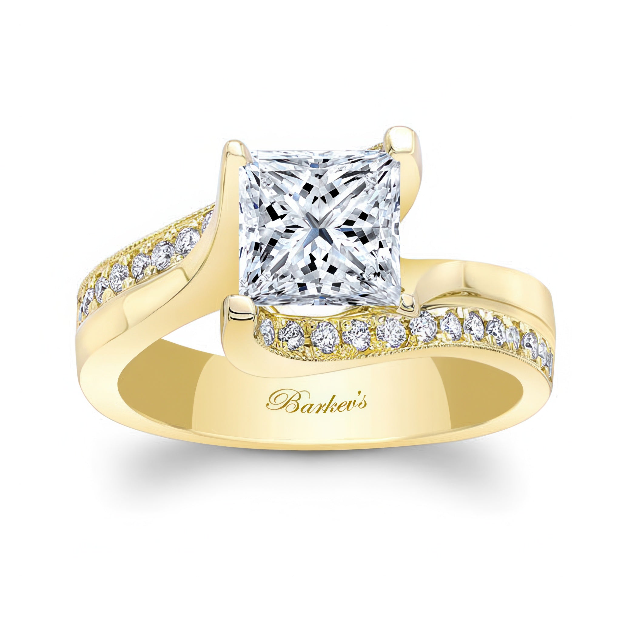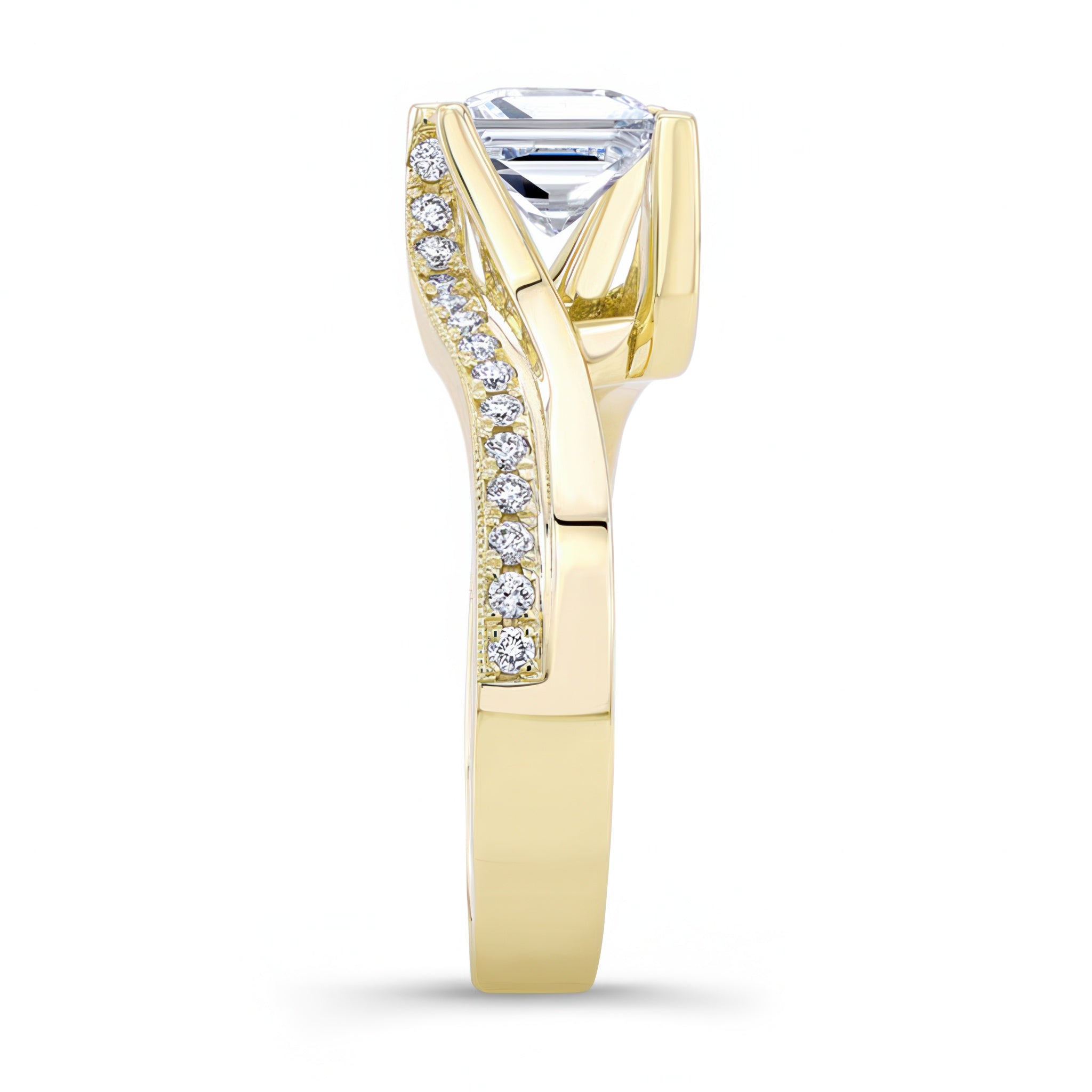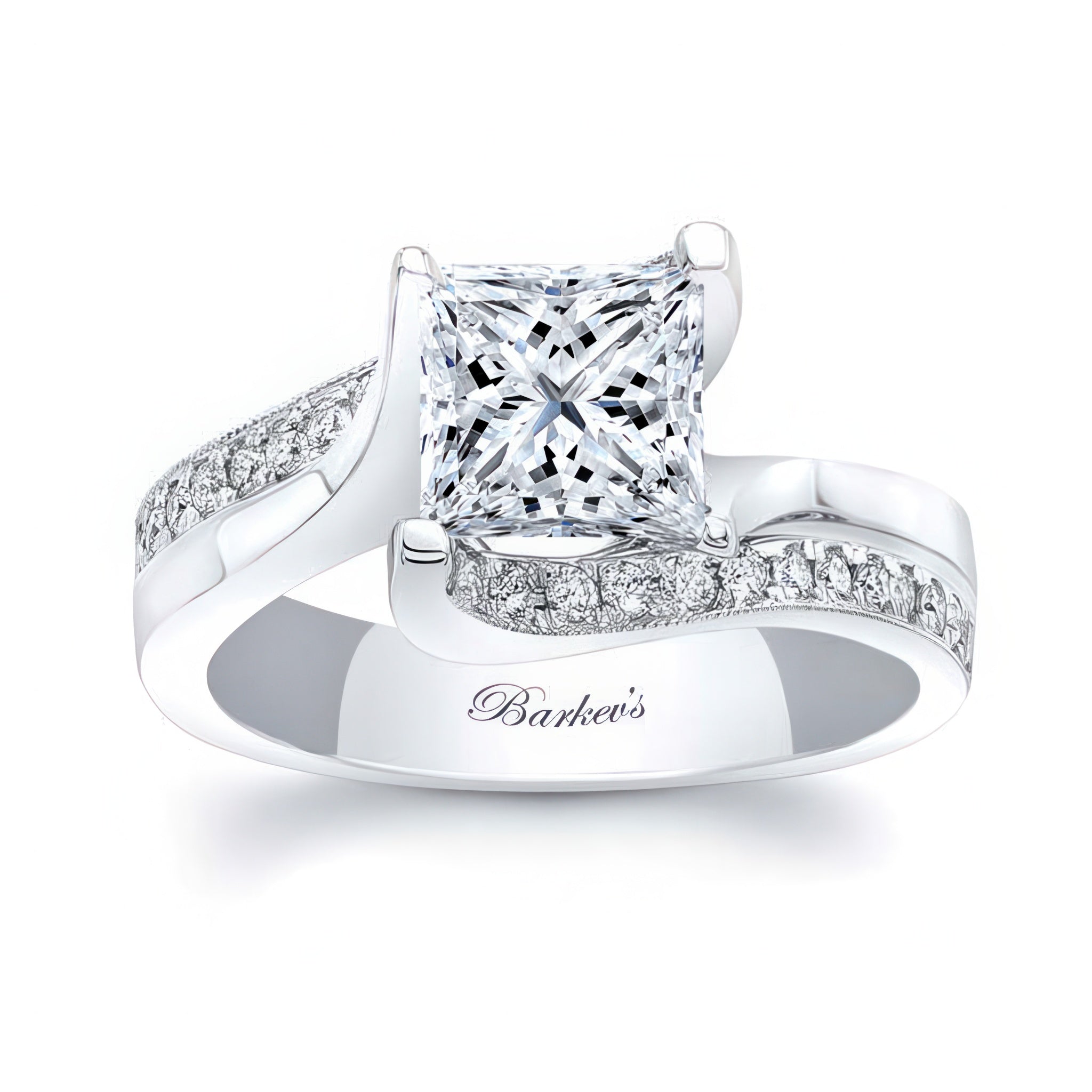 This 1.25 carat diamond ring features a princess cut center with two opposing shoulders pave set with diamonds and a bright luster finish adding a touch of sophistication.