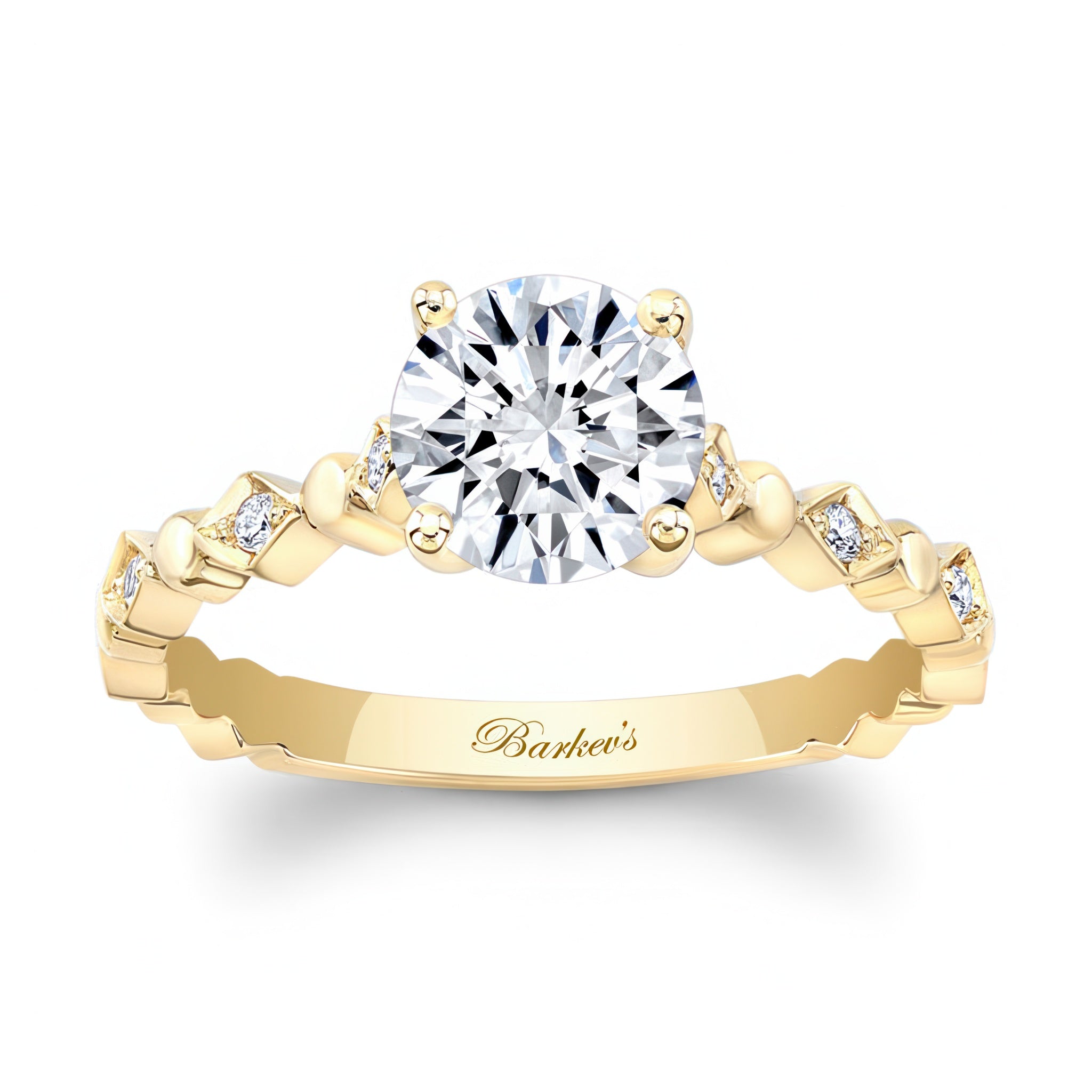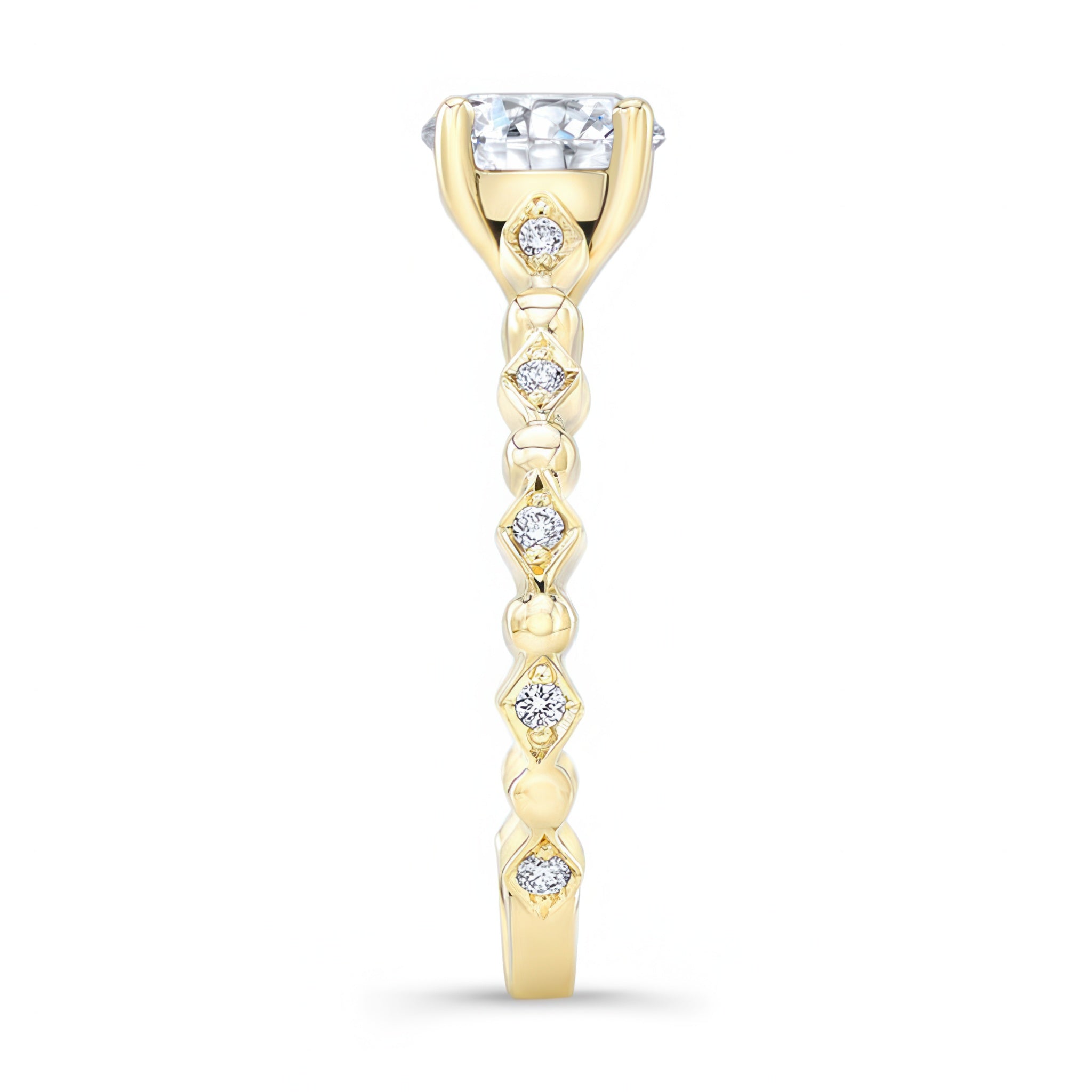 This art deco diamond engagement ring combines a vintage and modern dainty design. The center sits beautifully on the playful diamond pave setting adorning the band.