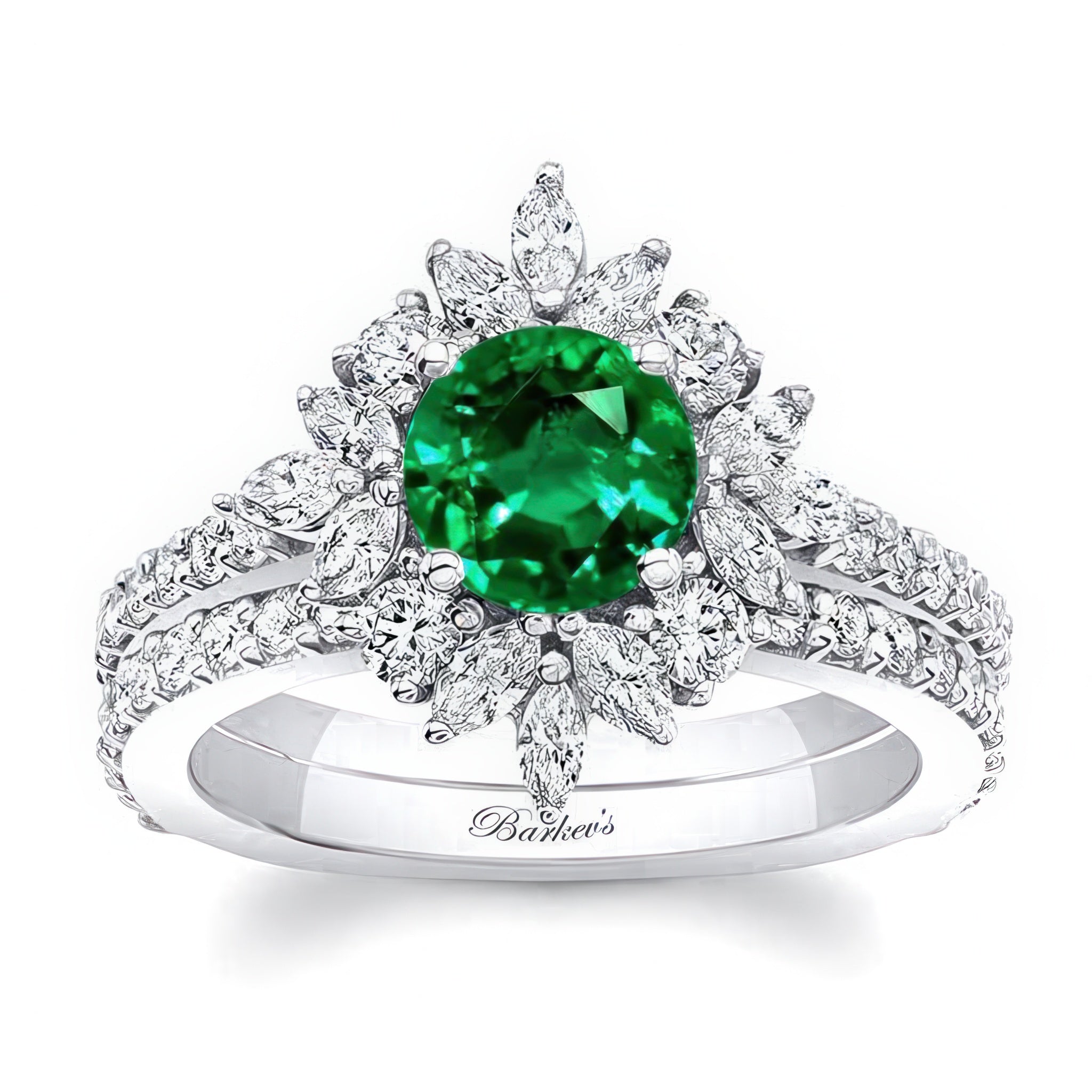 Marquise Halo Emerald And Diamond Engagement Ring