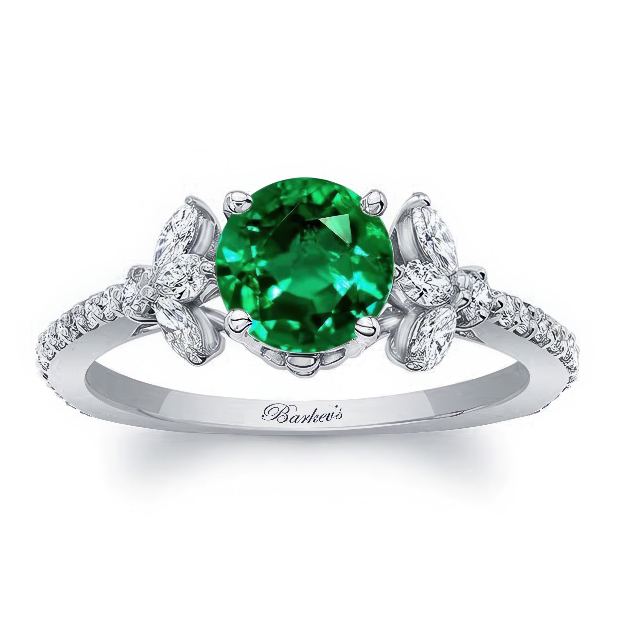 Emerald And Diamond Leaf Engagement Ring