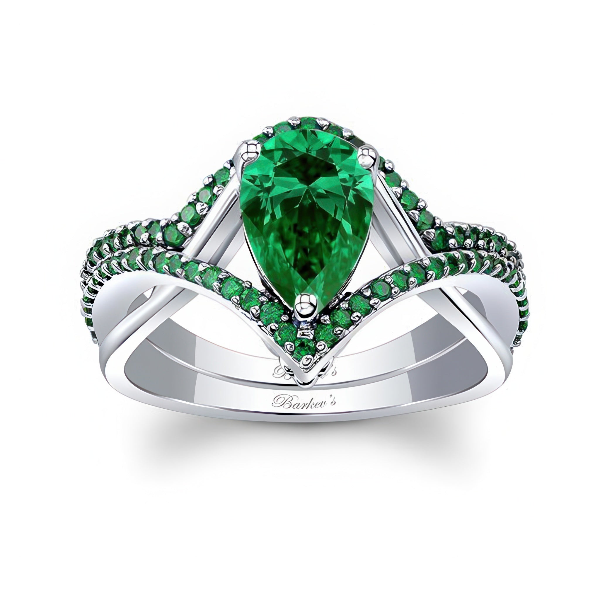 Unique Pear Shaped Emerald Wedding Set