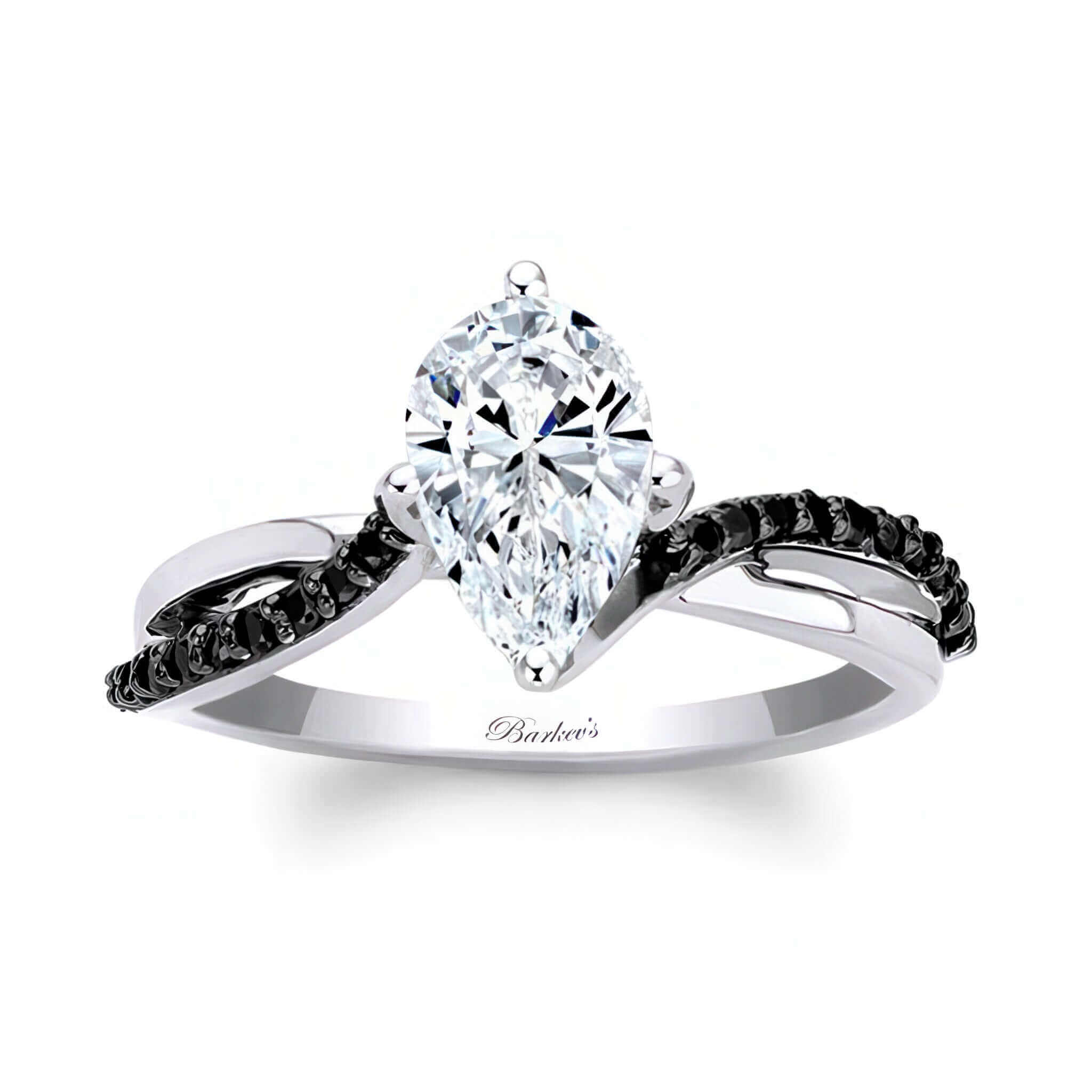 This pear shaped black diamond accent ring with twisted band features open curving shoulders with an almond shaped center and a shank adorned with shared-prong set black diamonds for a subtle sparkle that will draw the eye.