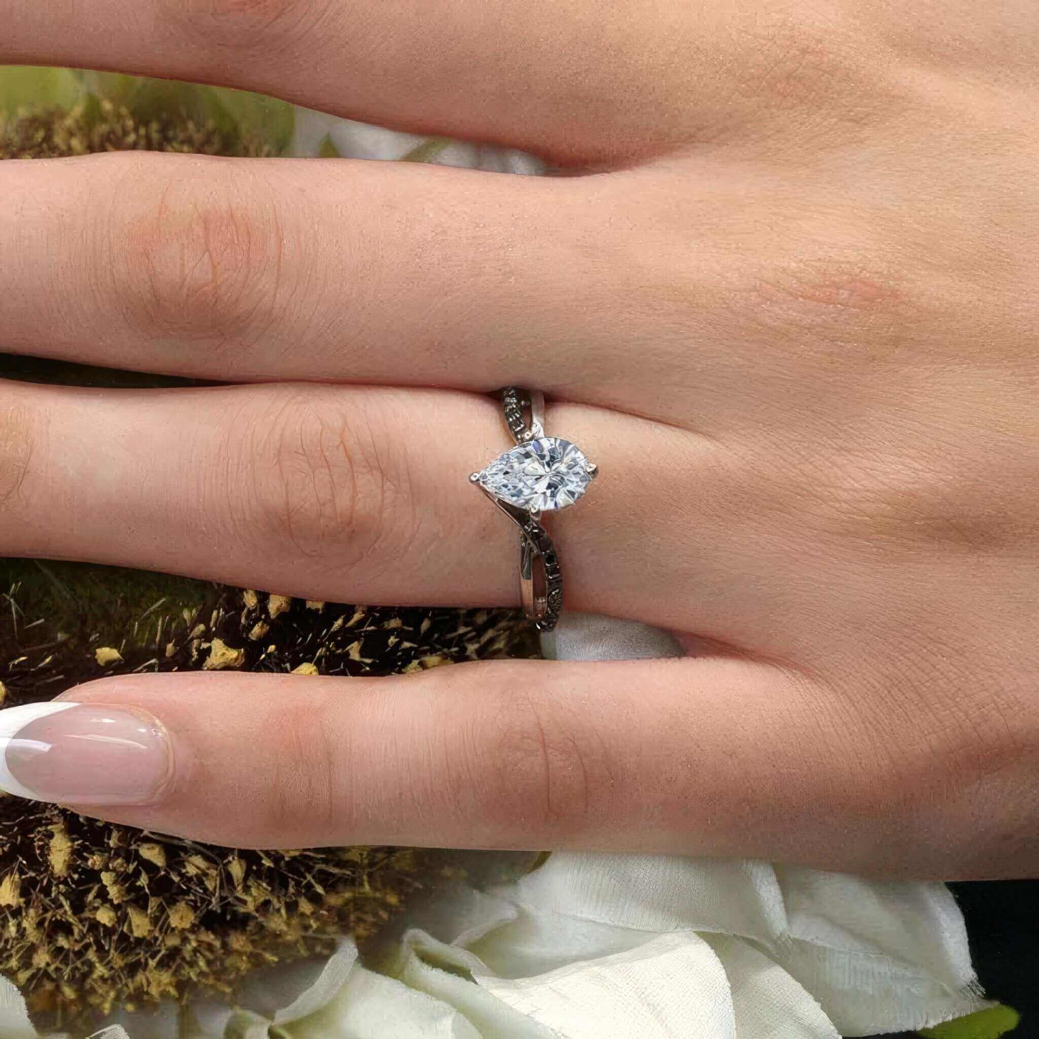 Pear Shaped Black Diamond Accent Ring With Twisted Band