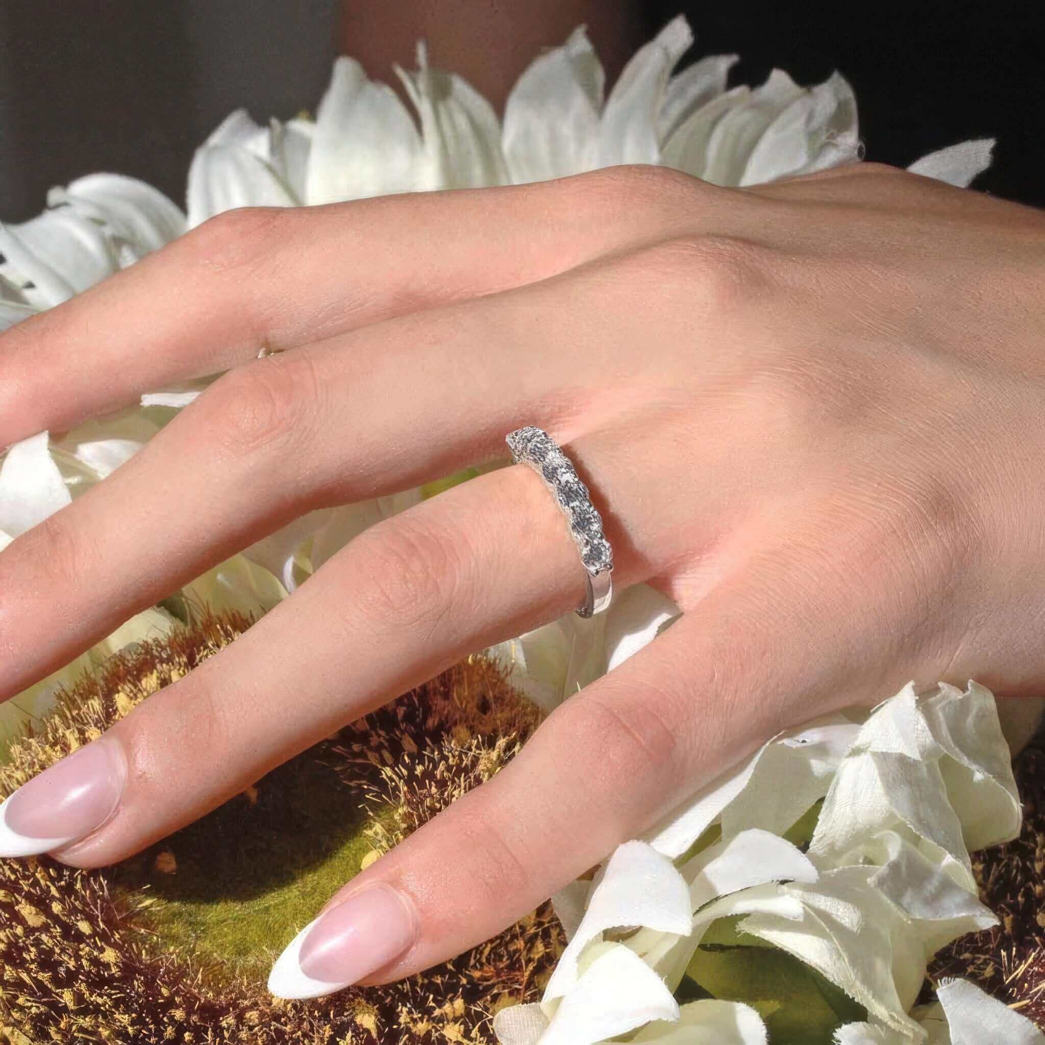 A 1.4 carat lab diamond half eternity band featuring shared prong set lab grown diamonds