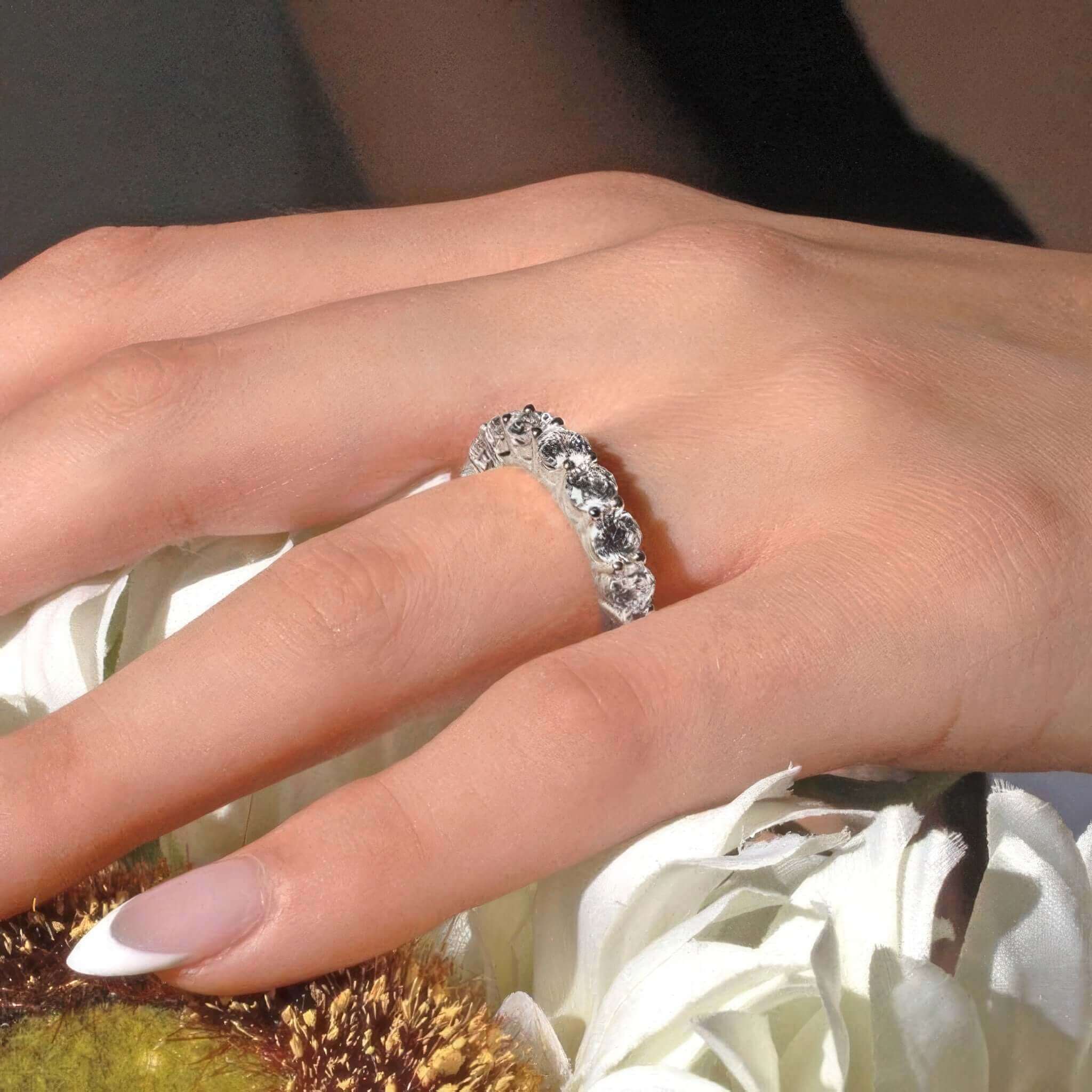 Please note that due to the design, full eternity bands can't be resized. Please make sure to order the correct ring size or contact us to order a replacement ring if it doesn't fit.