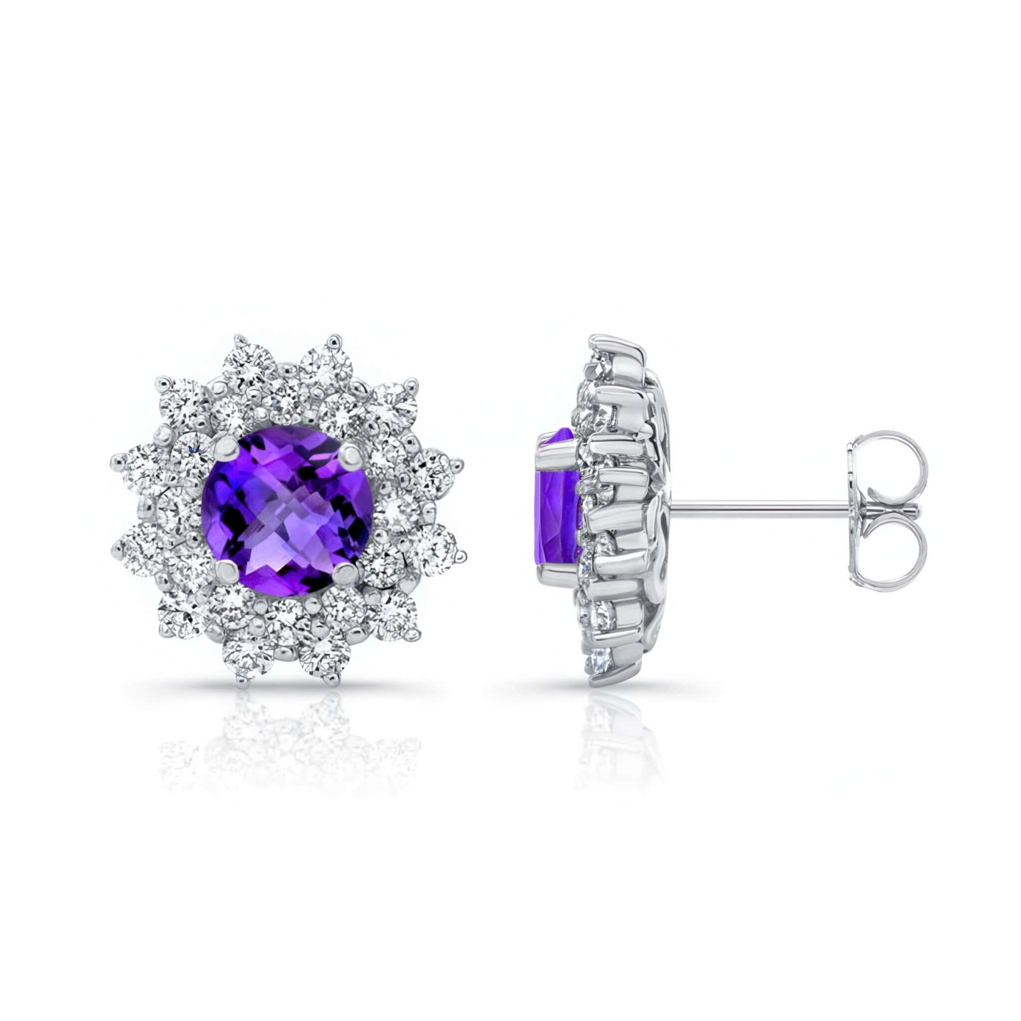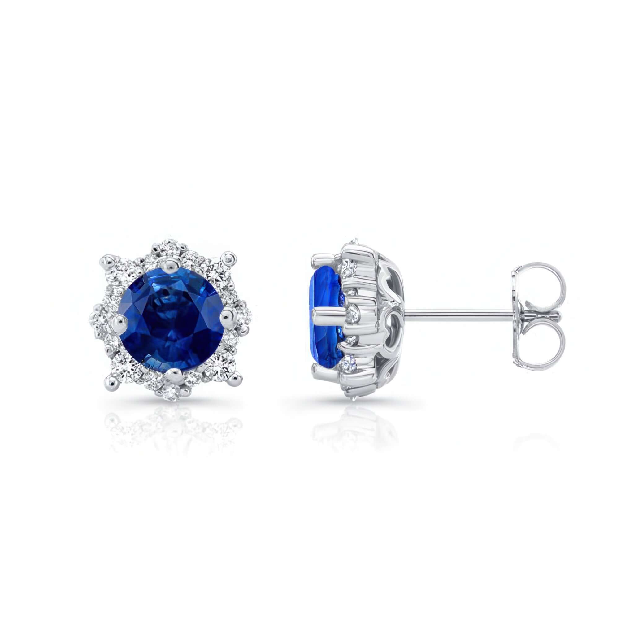 Gemstone Halo Studs feature vivid gems like sapphires, rubies, and emeralds, each surrounded by a radiant halo of diamonds. Elegant and eye catching, these studs add timeless color, sparkle, and beauty to every occasion.