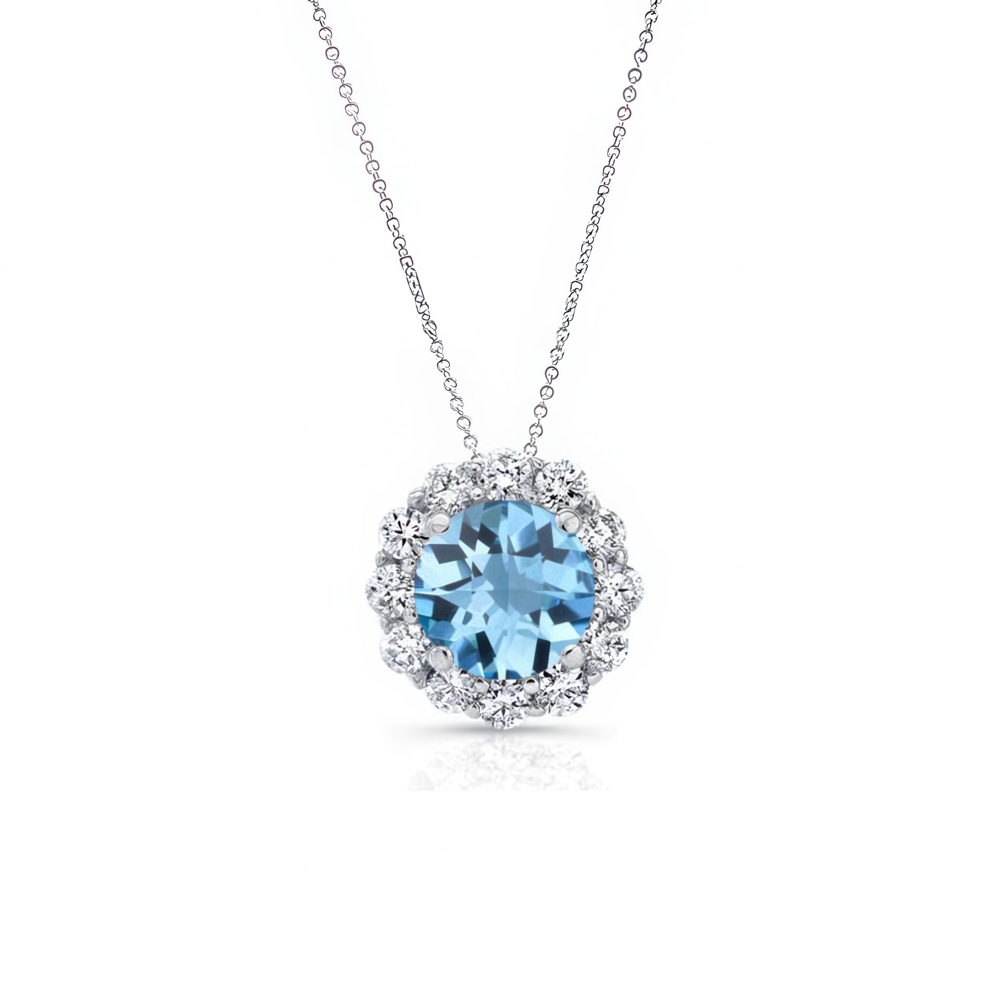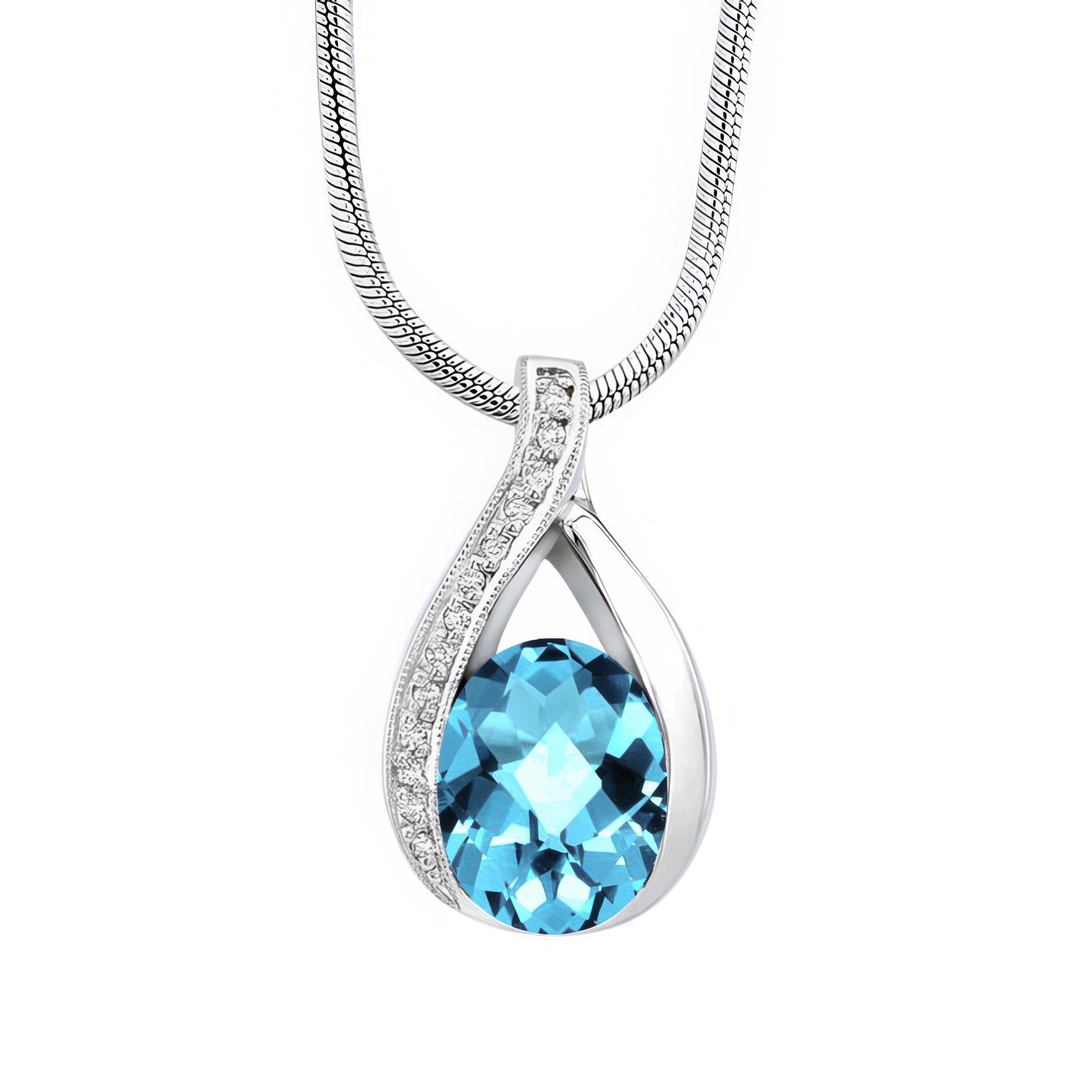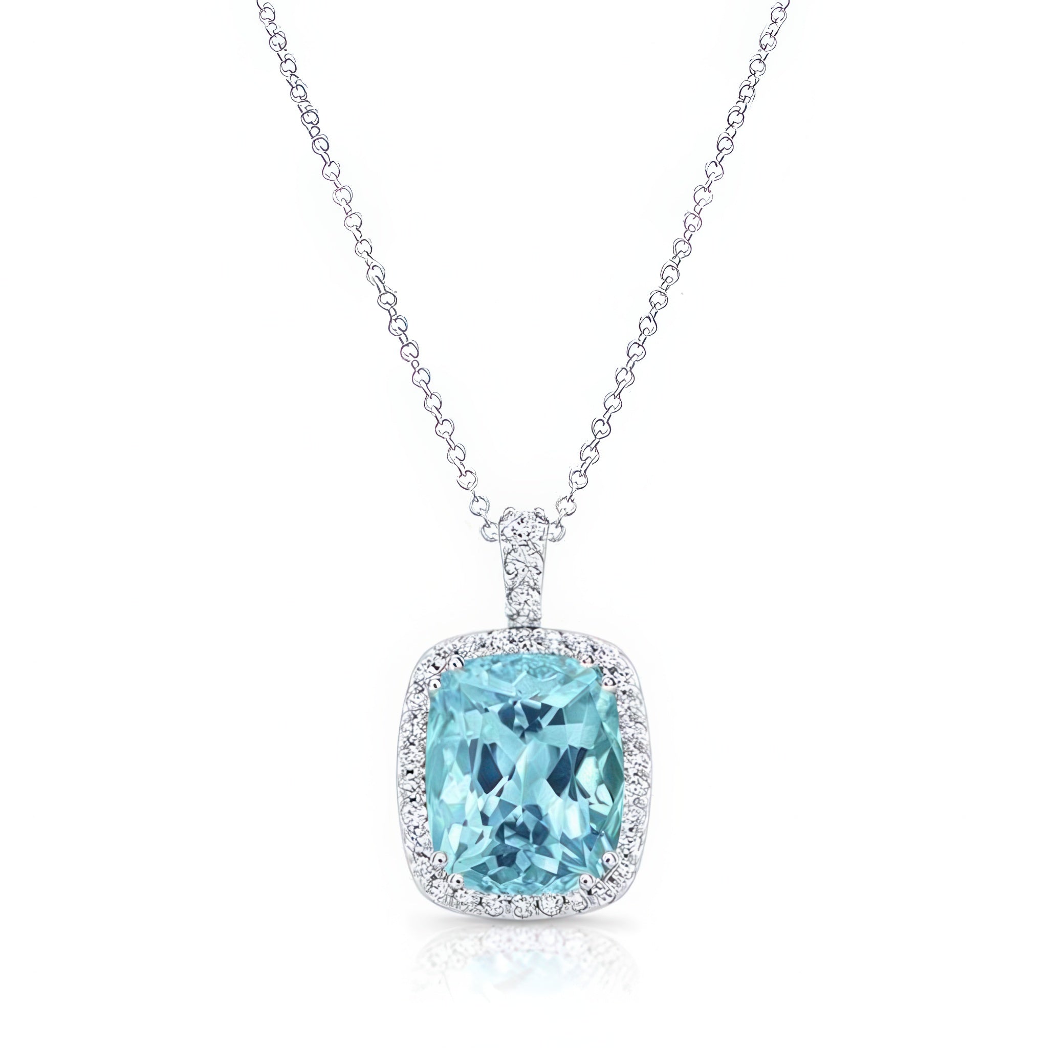 5 Carat Cushion Blue Topaz Diamond Necklace