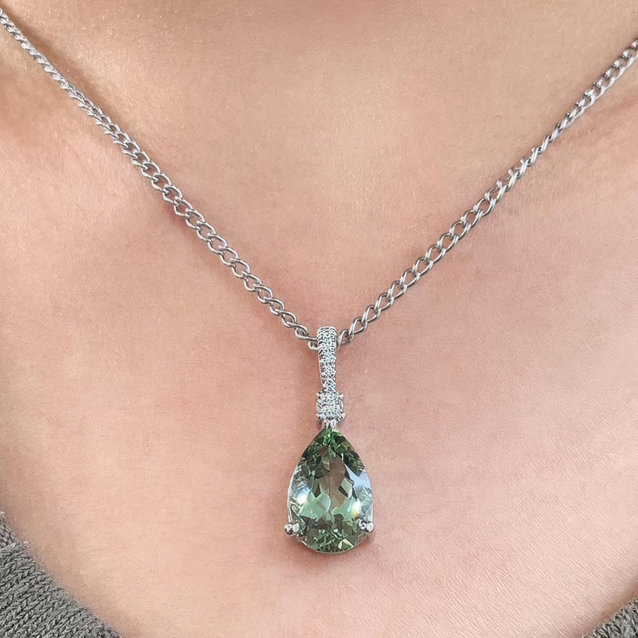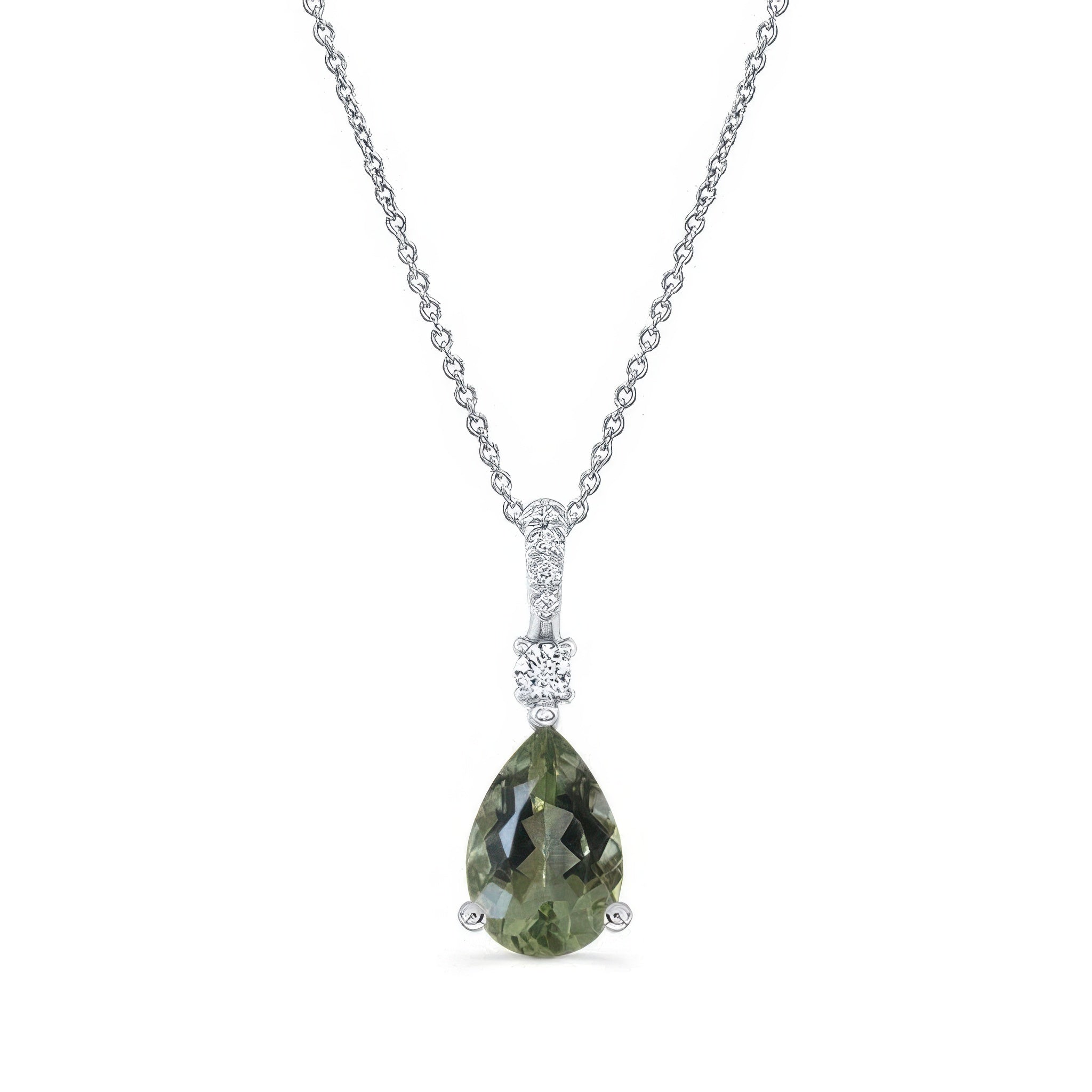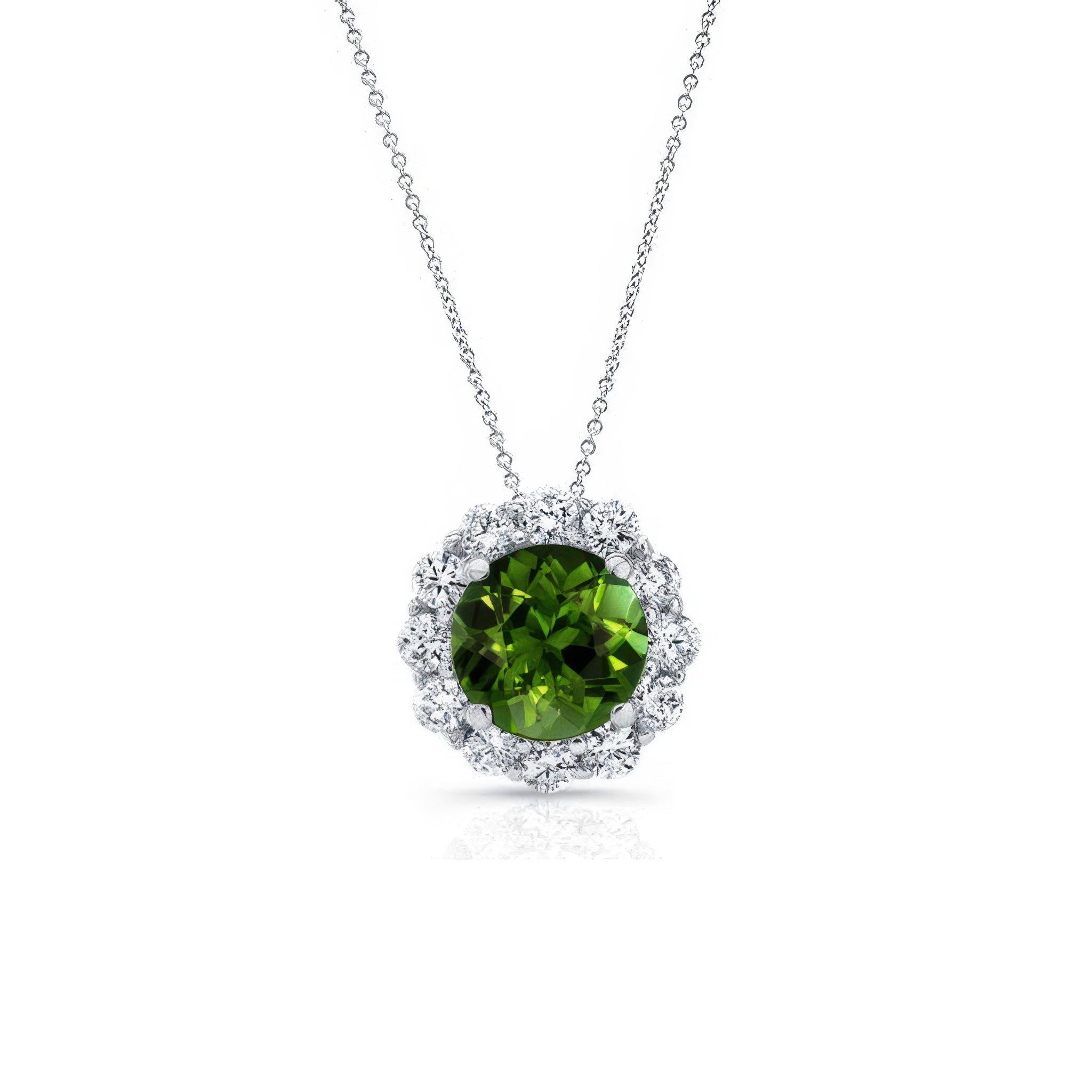 White Gold Green Tourmaline and Diamond Necklace GT-8178N