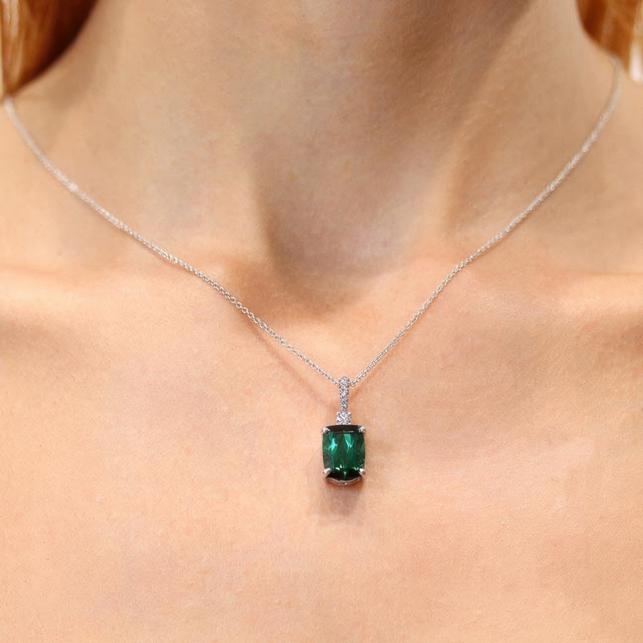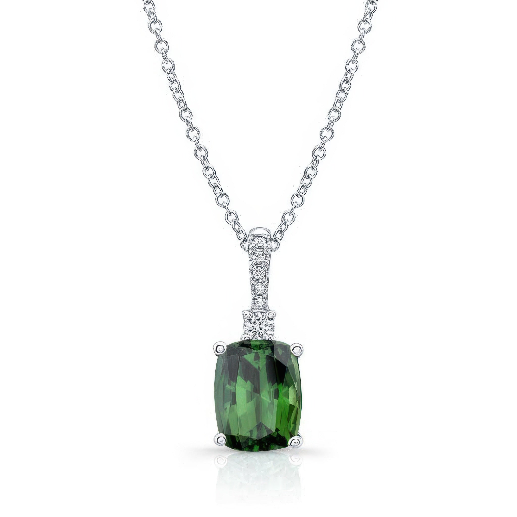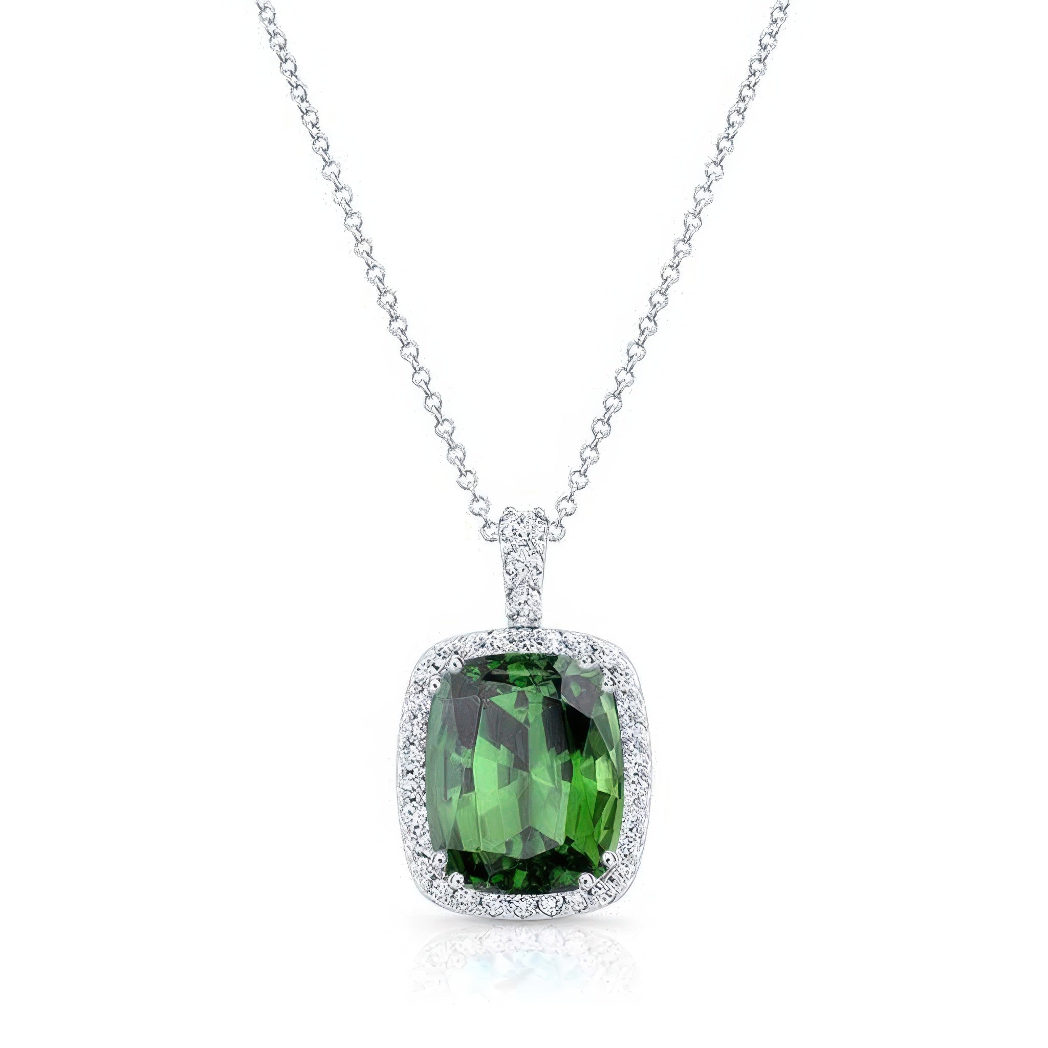 5 Carat Cushion Green Tourmaline Diamond Necklace