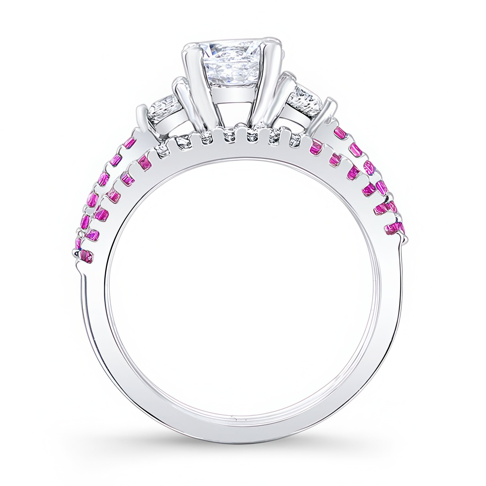3 Stone Pink Sapphire Accent Moissanite Wedding Ring Set