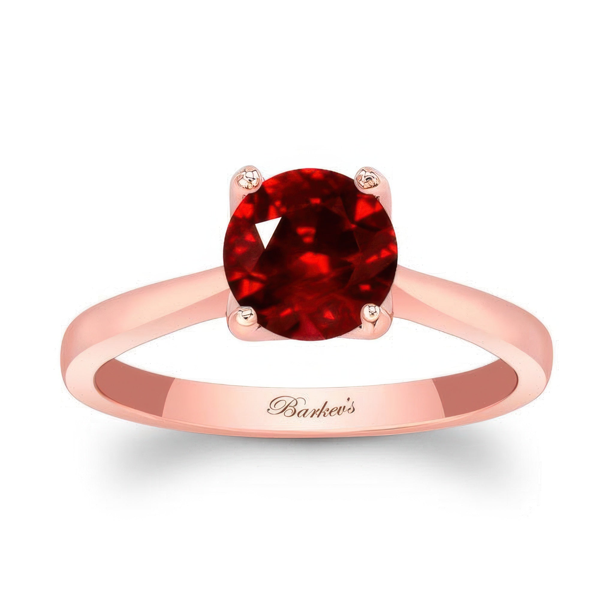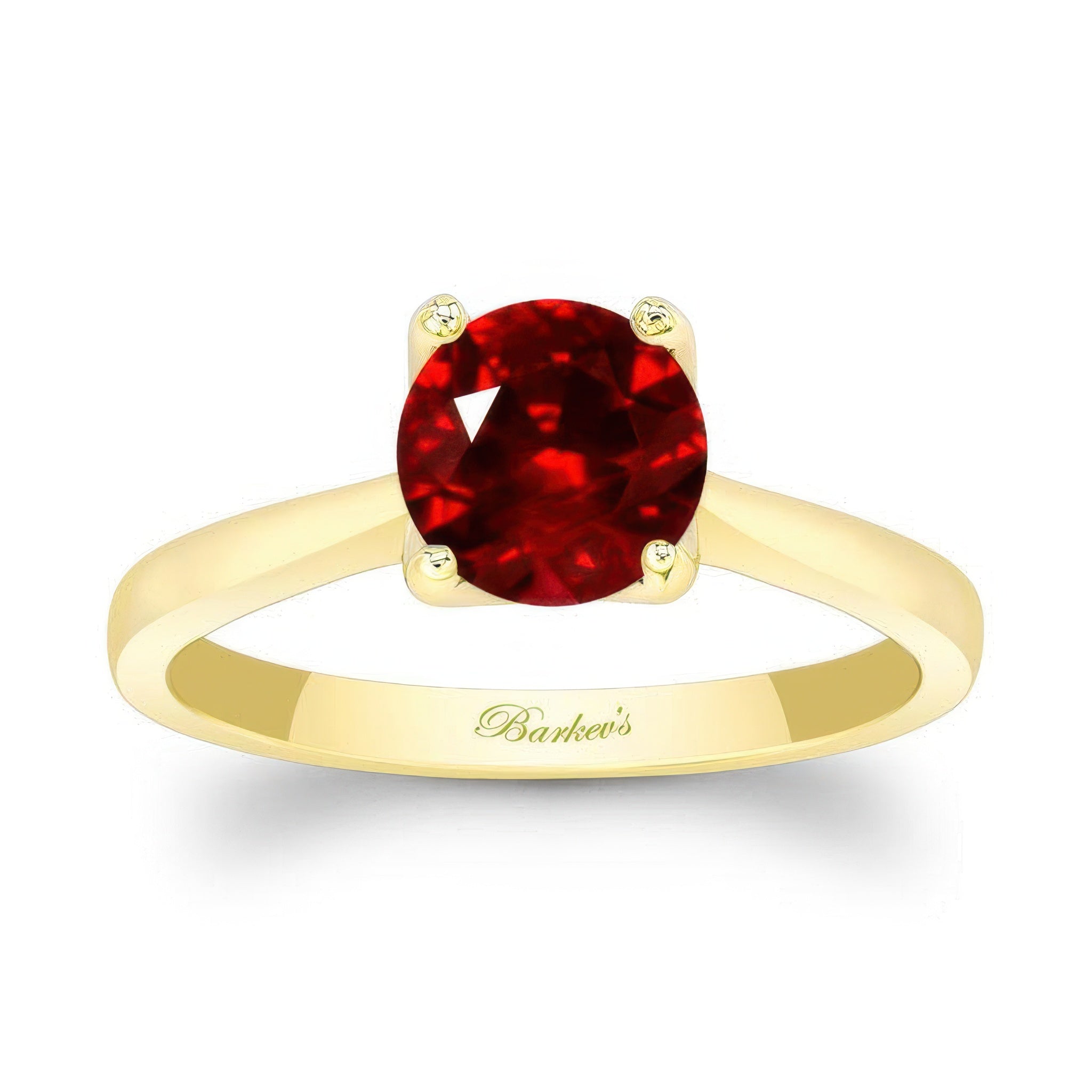A delicate curved ruby solitaire ring boasting a classic and everlasting design, with a brilliant round center and a beautiful side view.