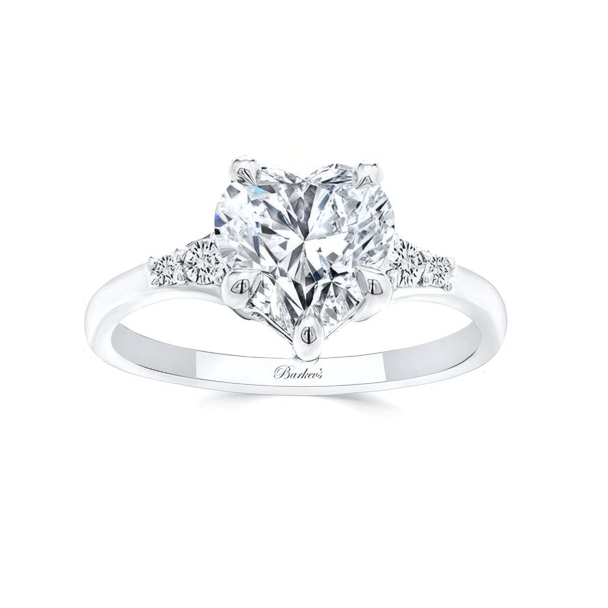 This Modern 2 Carat Heart Shape Moissanite Ring features a stunning central heart shape moissanite flanked by two smaller diamonds on each side, enhancing its brilliance and visual impact. The carefully balanced design combines contemporary style with expert craftsmanship, highlighting the main diamond’s impressive size while adding subtle sparkle from the side stones. Perfect for those seeking a refined yet distinctive ring, it offers both elegance and enduring quality.