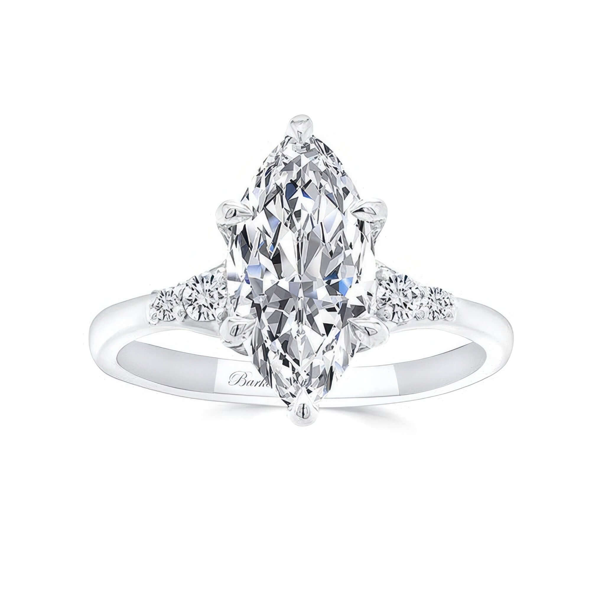 This Modern 2 Carat Marquise Moissanite Ring features a stunning central marquise moissanite flanked by two smaller diamonds on each side, enhancing its brilliance and visual impact. The carefully balanced design combines contemporary style with expert craftsmanship, highlighting the main diamond’s impressive size while adding subtle sparkle from the side stones. Perfect for those seeking a refined yet distinctive ring, it offers both elegance and enduring quality.