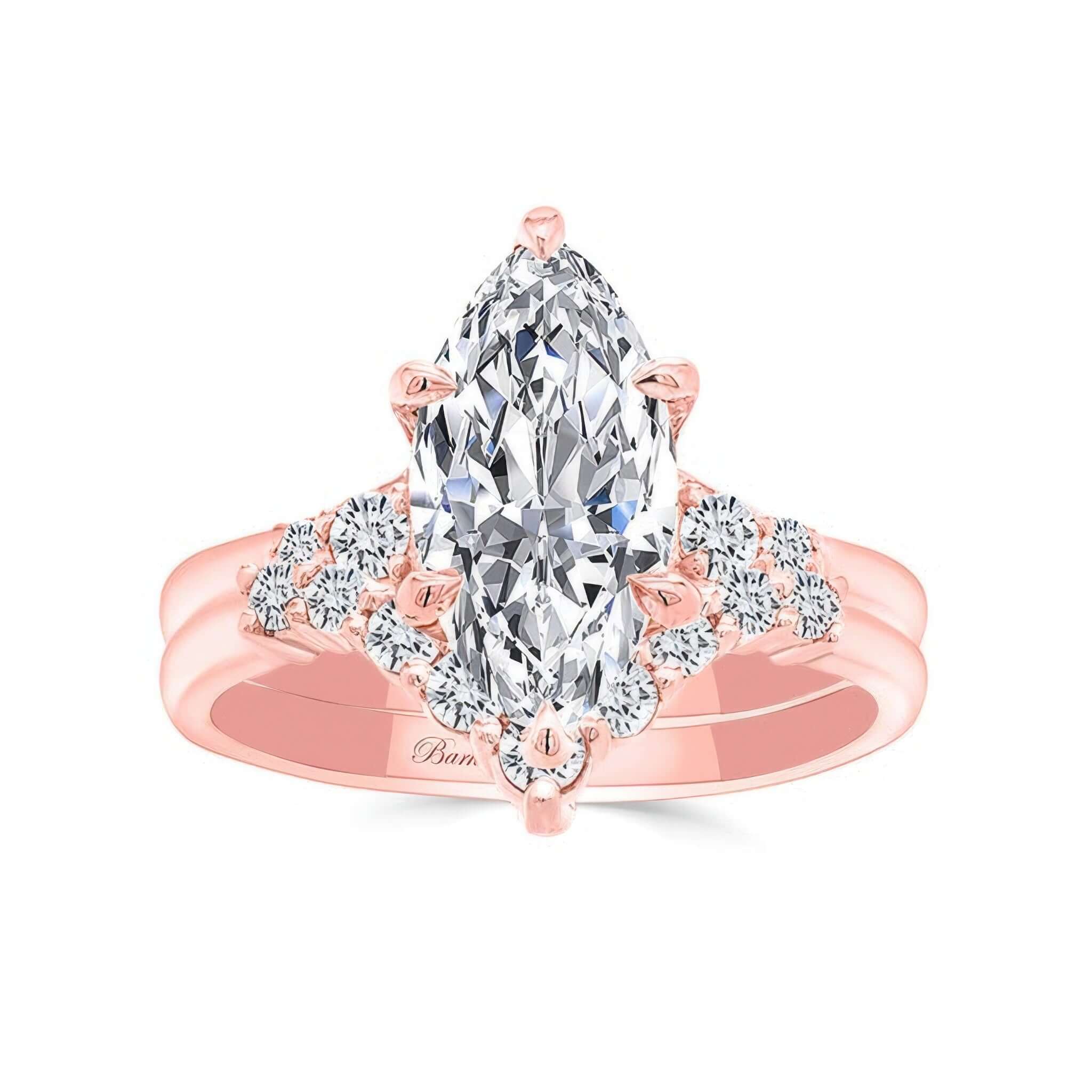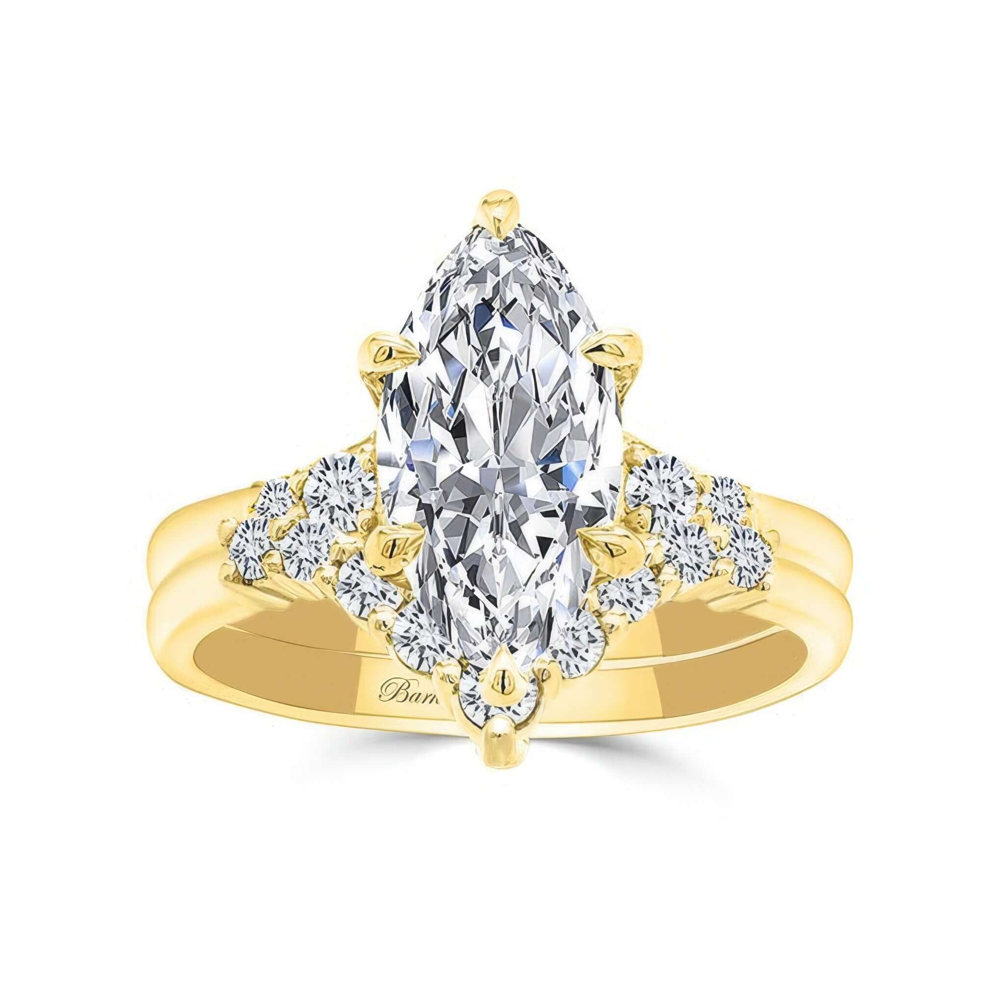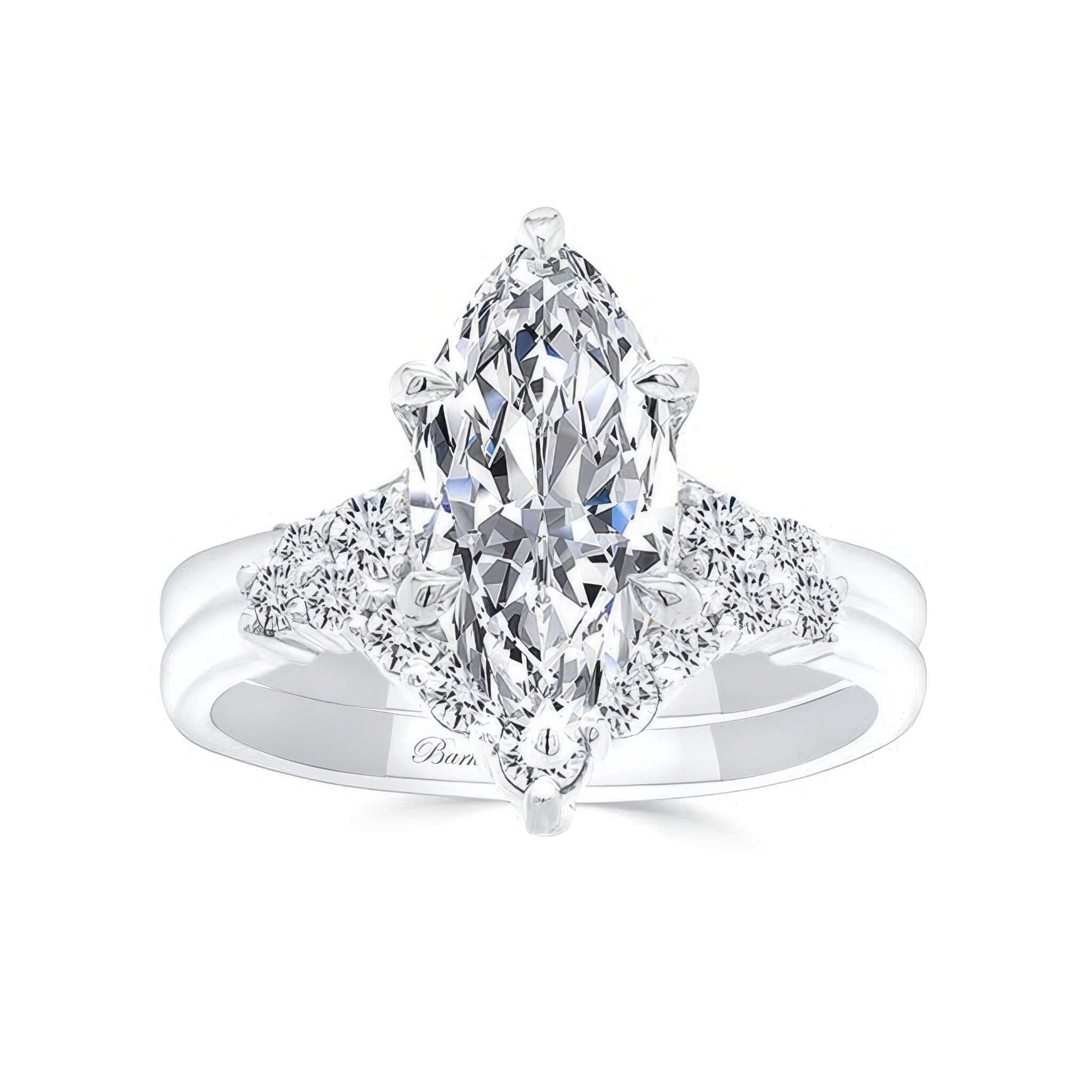 This Modern 2 Carat Marquise Moissanite Wedding Ring Set features a sophisticated design with two diamonds flanking each side of the engagement ring, complemented by seven diamonds elegantly set along the wedding band. Crafted to highlight the brilliance of the round diamonds, this set offers a balanced and timeless look, perfect for those seeking both sparkle and refined craftsmanship in their symbol of commitment.