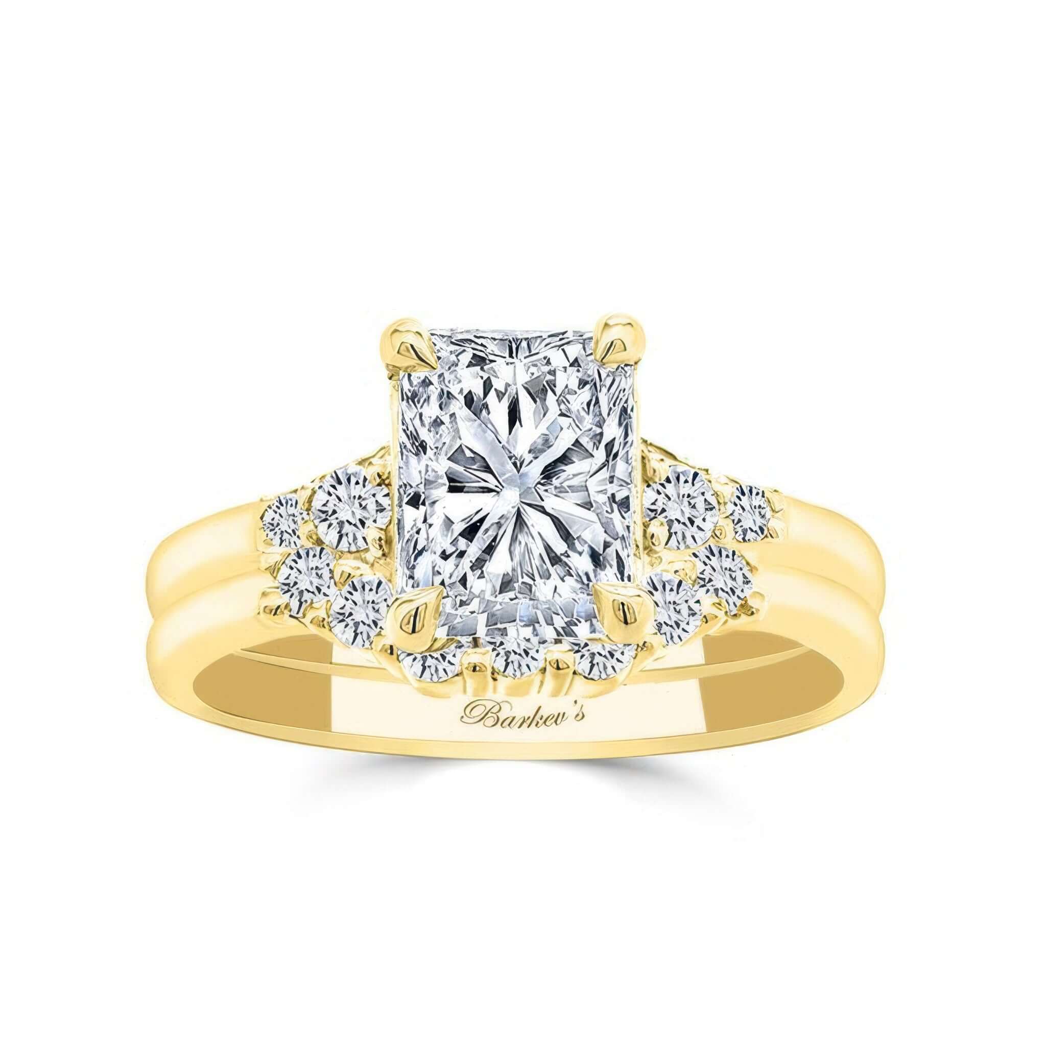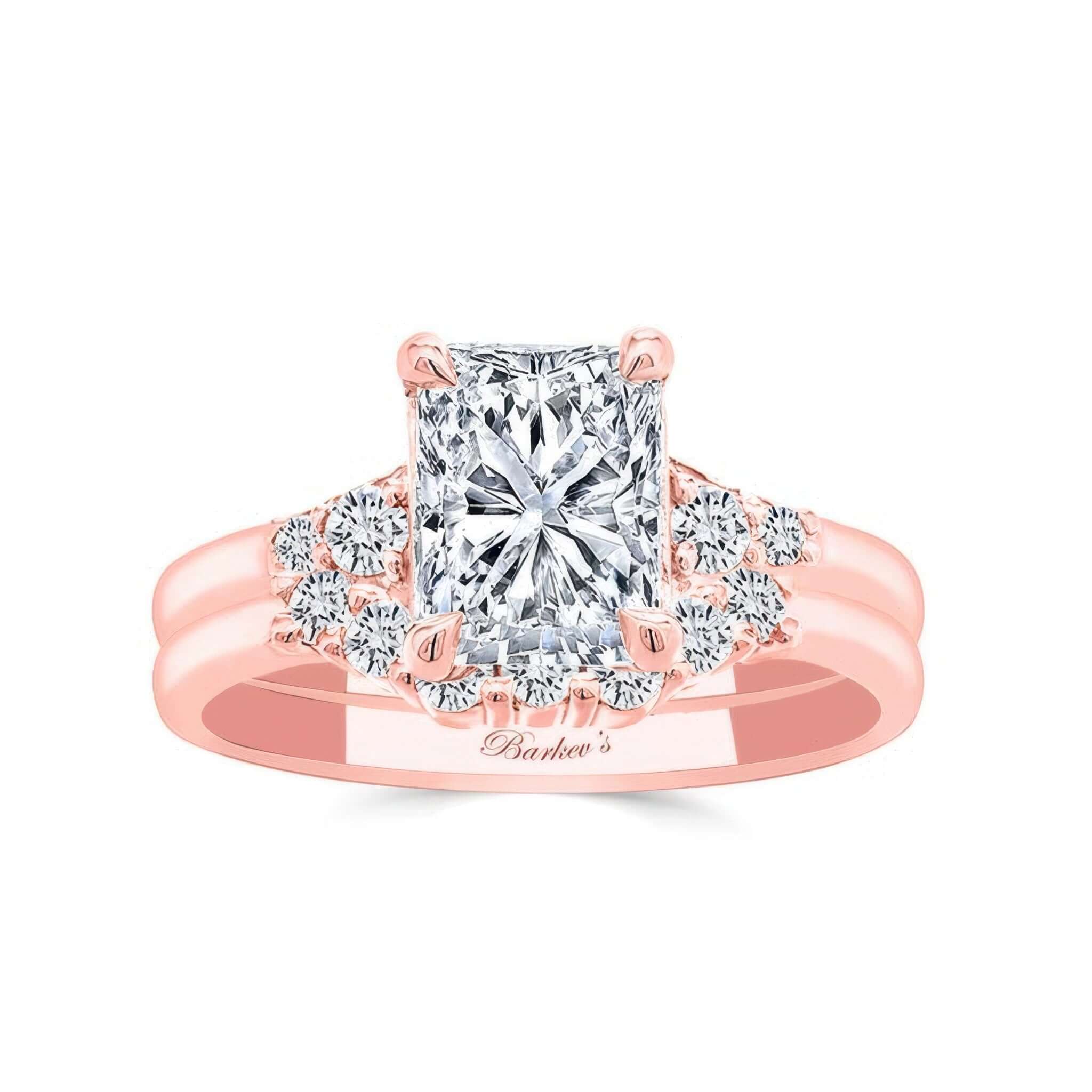 This Modern 2 Carat Radiant Moissanite Wedding Ring Set features a sophisticated design with two diamonds flanking each side of the engagement ring, complemented by seven diamonds elegantly set along the wedding band. Crafted to highlight the brilliance of the round diamonds, this set offers a balanced and timeless look, perfect for those seeking both sparkle and refined craftsmanship in their symbol of commitment.