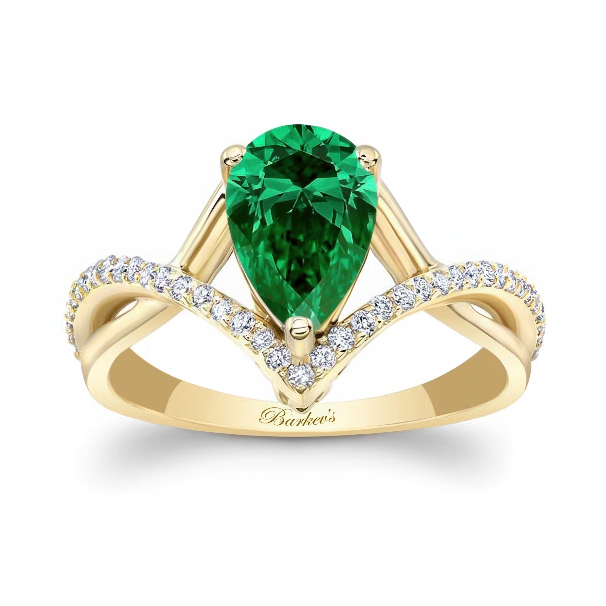 Jewel as rare and vibrant as an emerald forest at dawn, this Unique Pear Shaped Emerald And Diamond Ring might just be the perfect piece. Featuring a stunning pear-shaped emerald center, its rich green brilliance captivates the eye, while the twisted diamond-accented band adds graceful movement and sparkle.