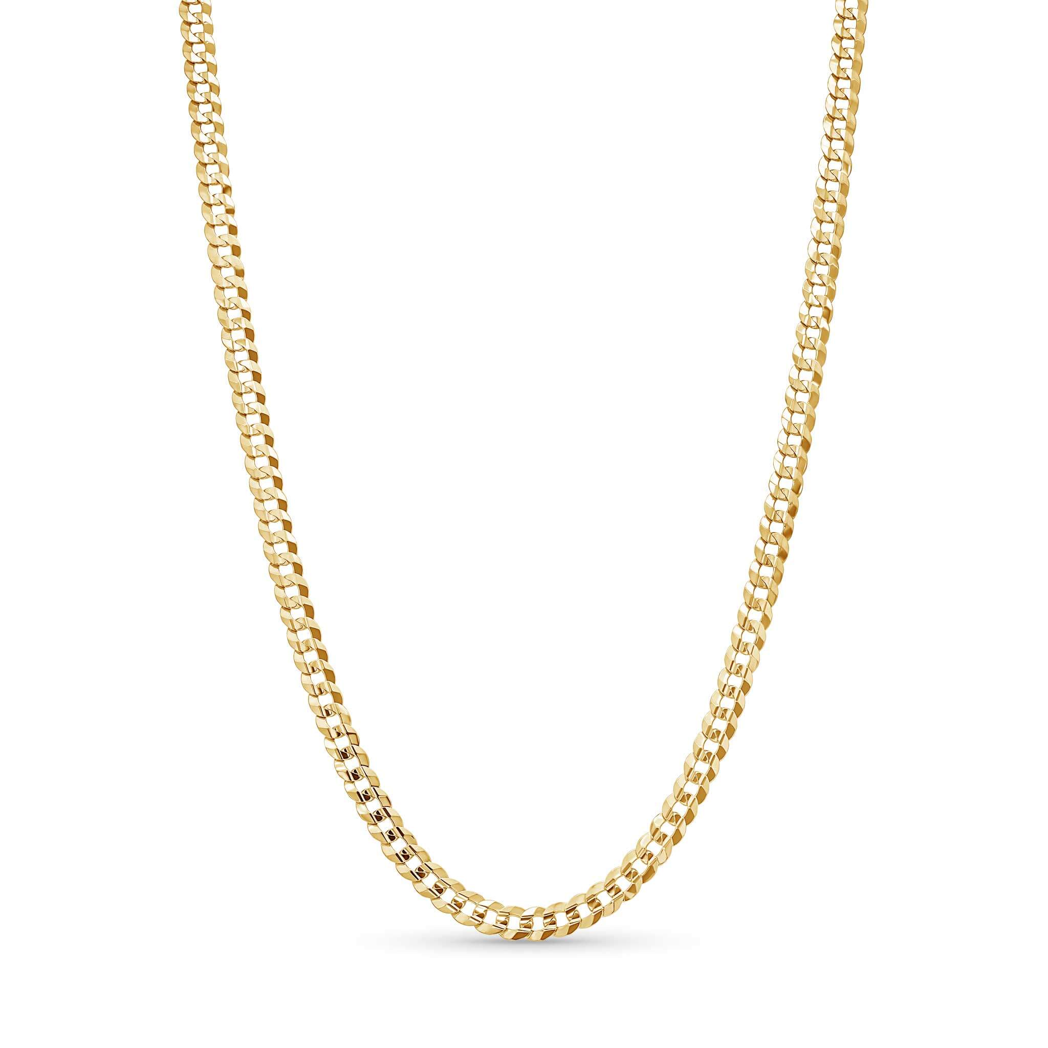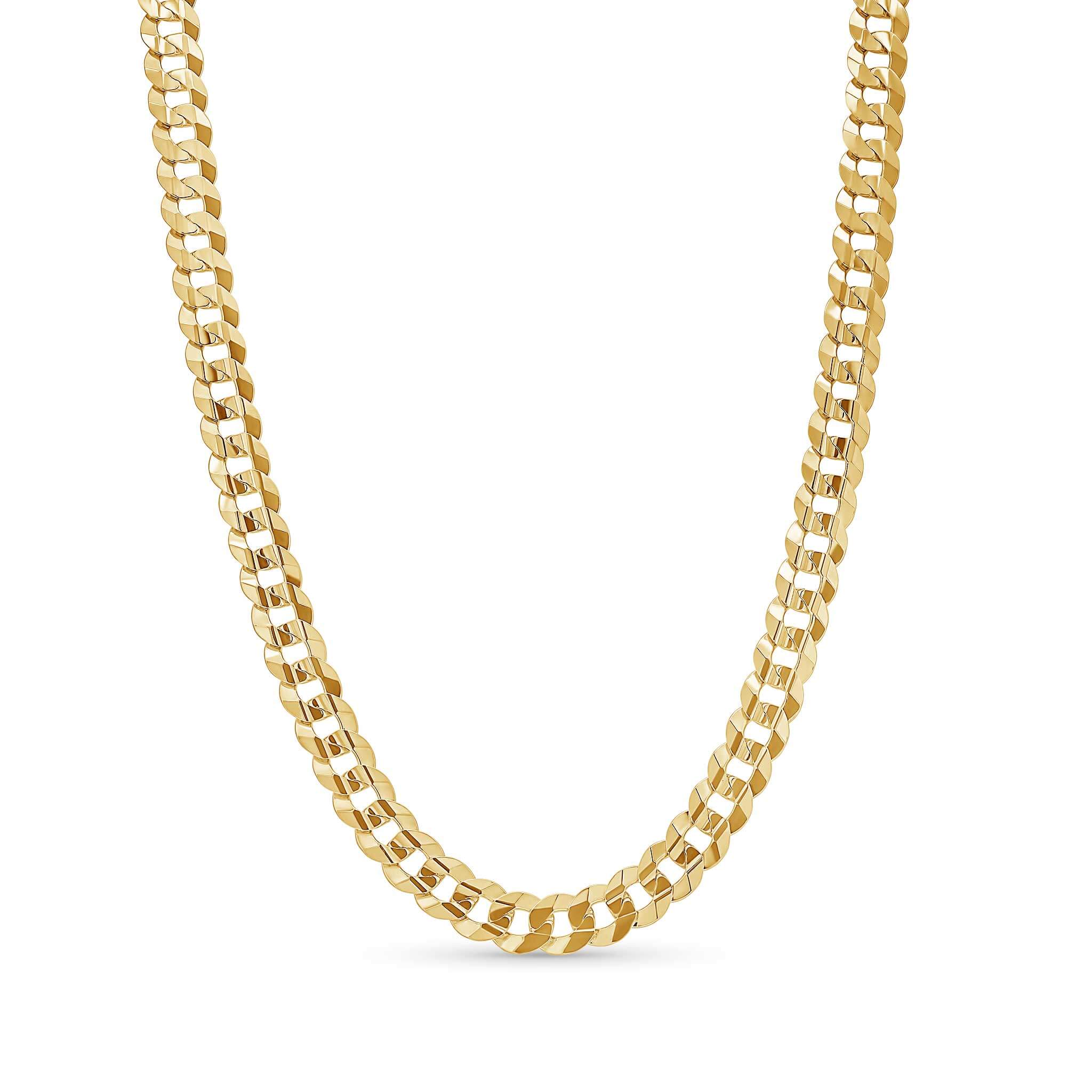 The secure lobster clasp ensures reliable fastening, while the flat curb link design prevents tangling and provides a smooth, comfortable fit against the skin.