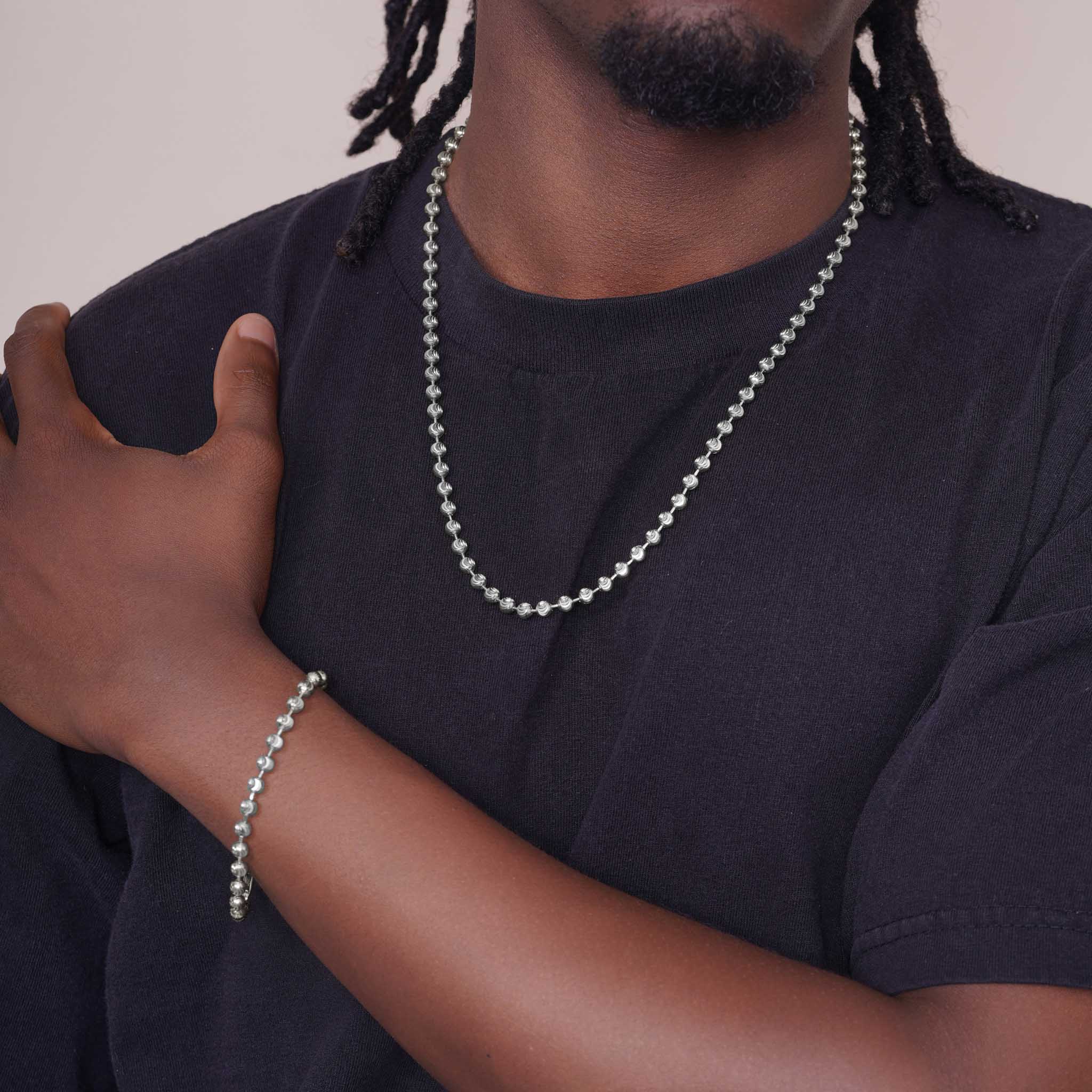 Crafted in your choice of 14k yellow or white gold, this men's moon cut bead chain showcases a distinctive textured surface that catches light beautifully. The moon cut beads create dimensional sparkle while maintaining a refined, masculine aesthetic. This versatile piece works equally well as a standalone statement or layered with other chains. Ideal for everyday wear or special occasions, the durable 14k gold construction ensures lasting quality and timeless appeal.