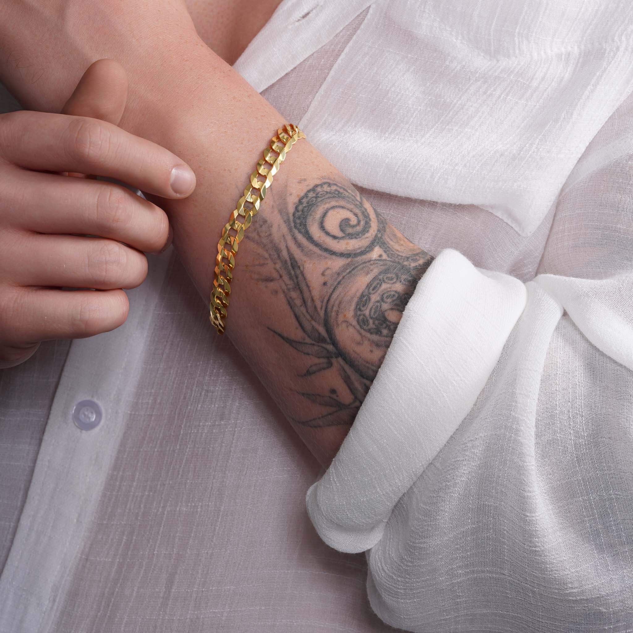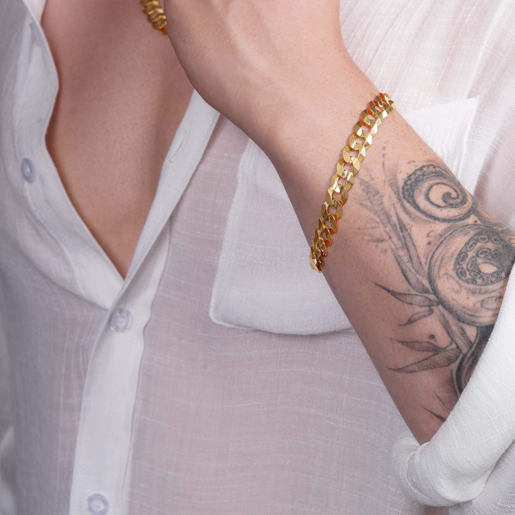 Crafted with precision, this men's vermeil curb bracelet features an 18k gold plating that offers both durability and a refined shine. Its classic curb chain design ensures timeless style, suitable for daily wear or special occasions. The vermeil finish provides an elegant alternative to solid gold, combining luxury with value for a distinguished accessory.