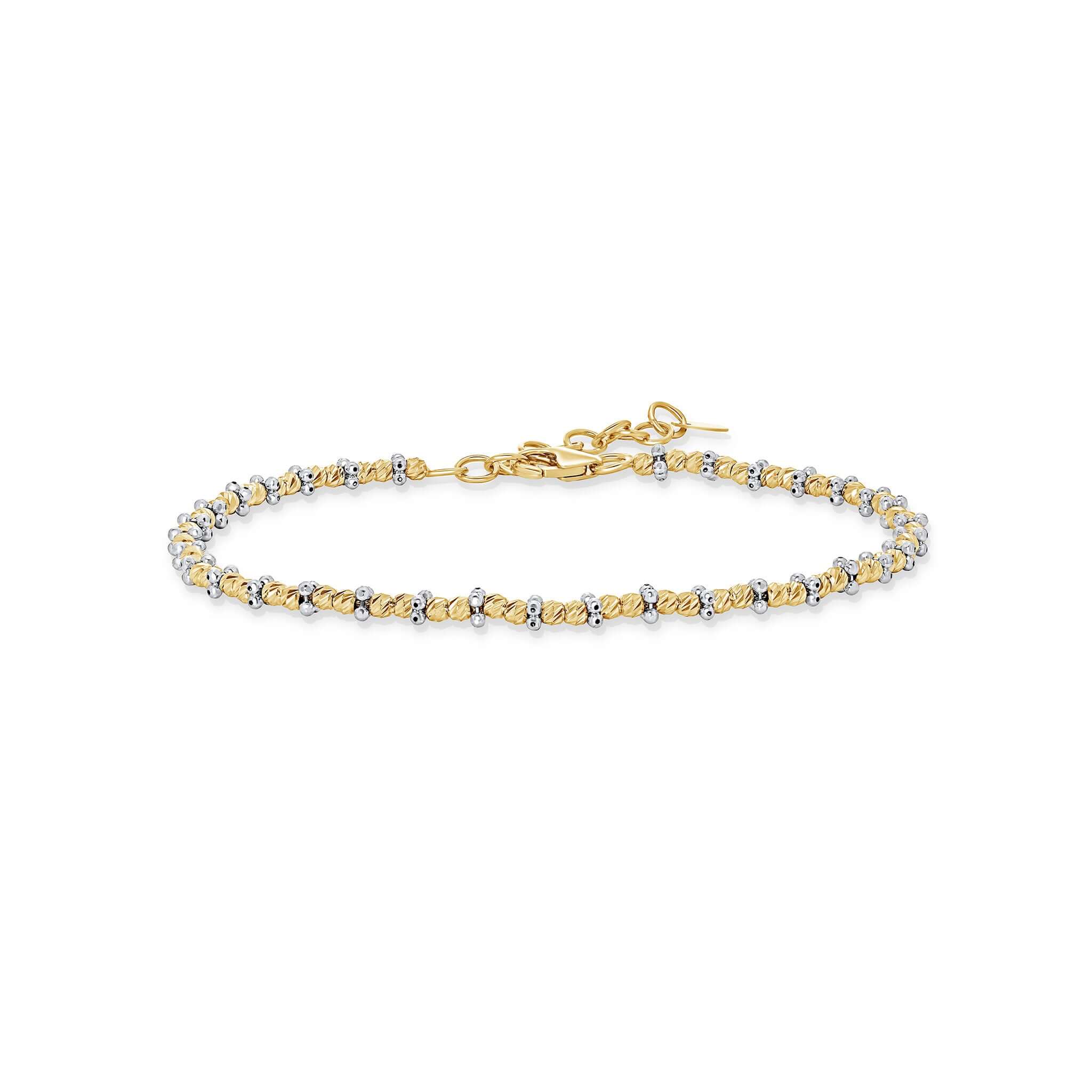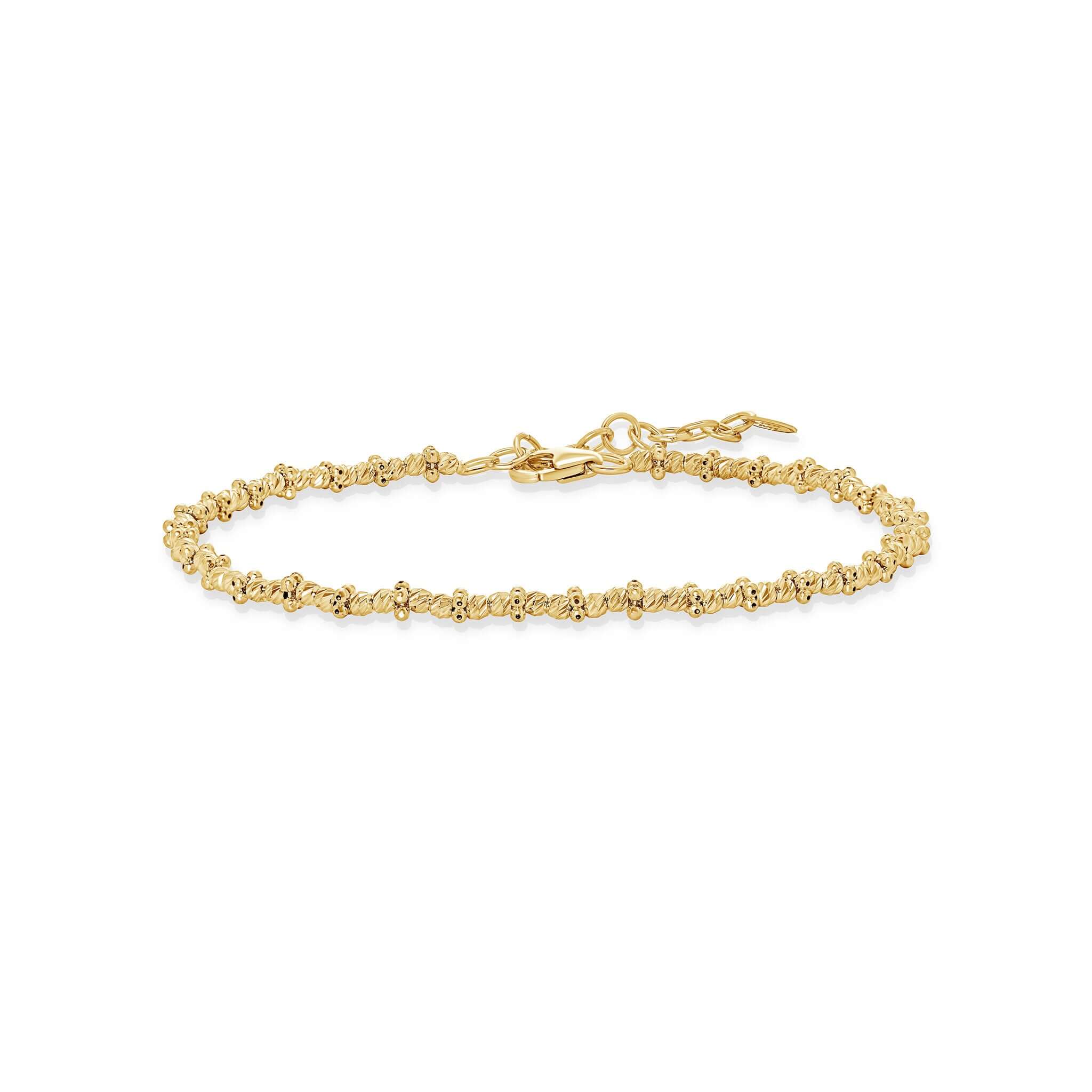 Bring brilliance to your wrist with the Adjustable Diamond Cut Ball Bracelet, where solid gold beads are diamond-cut to capture and reflect light like tiny mirrors.