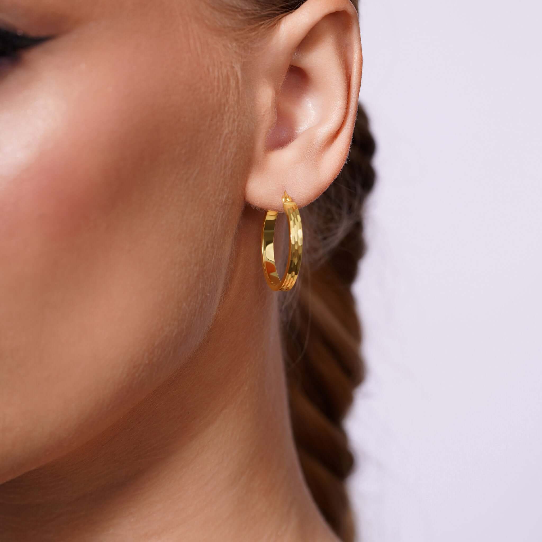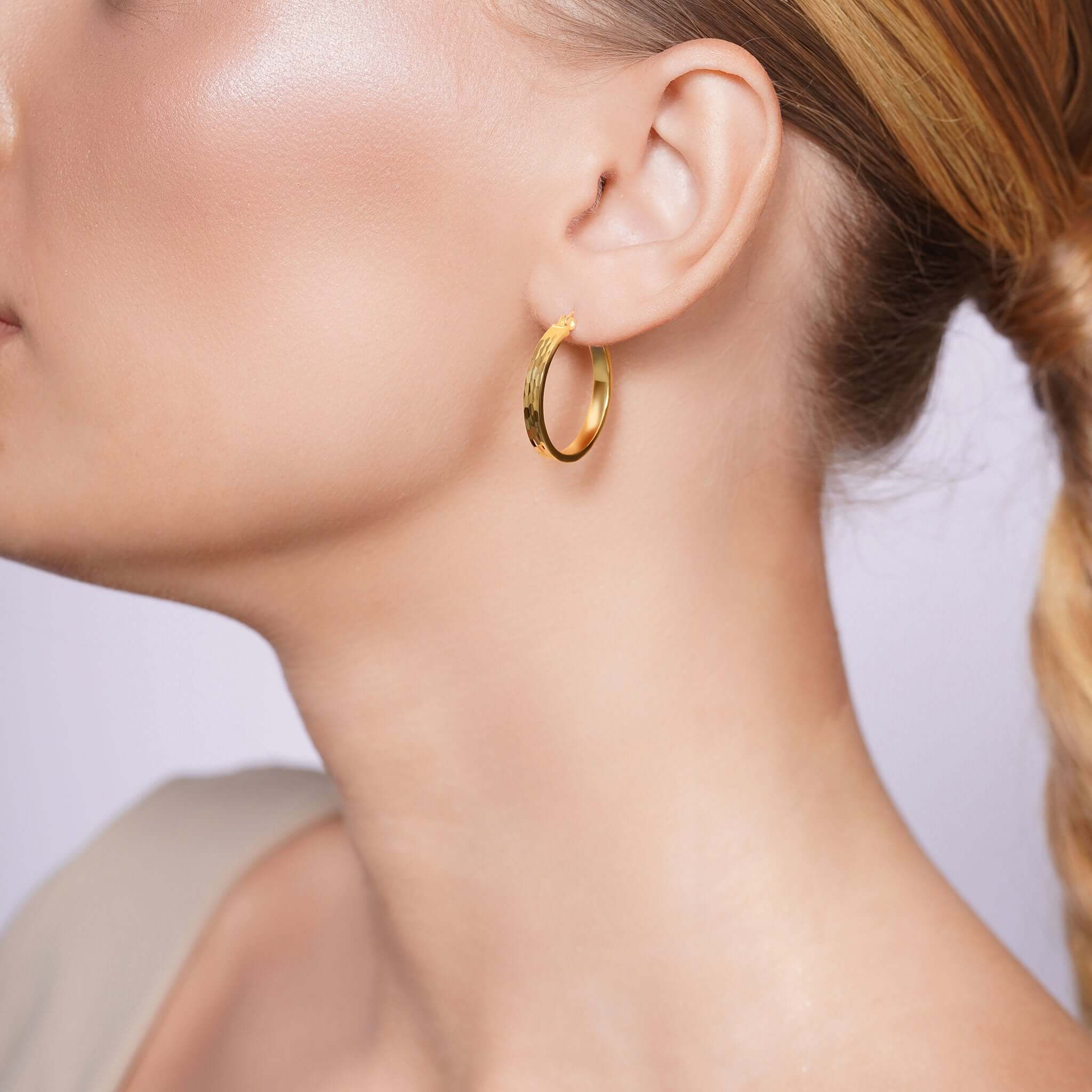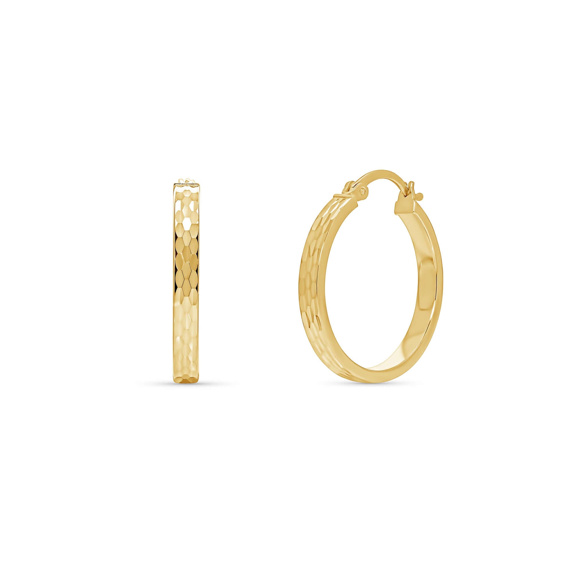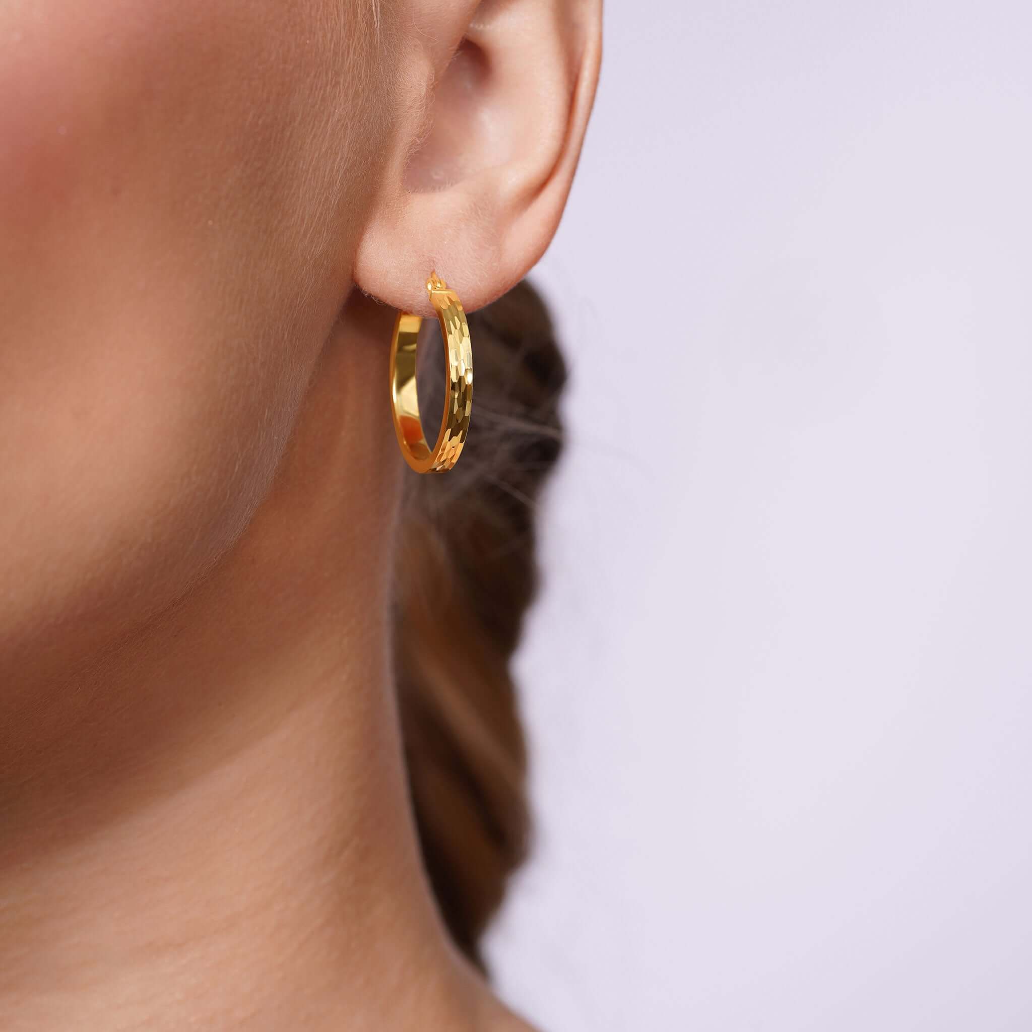 Catch every glimmer, sparkle from every angle — designed to maximize shine, our Diamond Cut Gold Hoop Earrings is a flat-style hoops that are expertly diamond-cut all around, creating a dazzling texture that catches and reflects light from every angle.