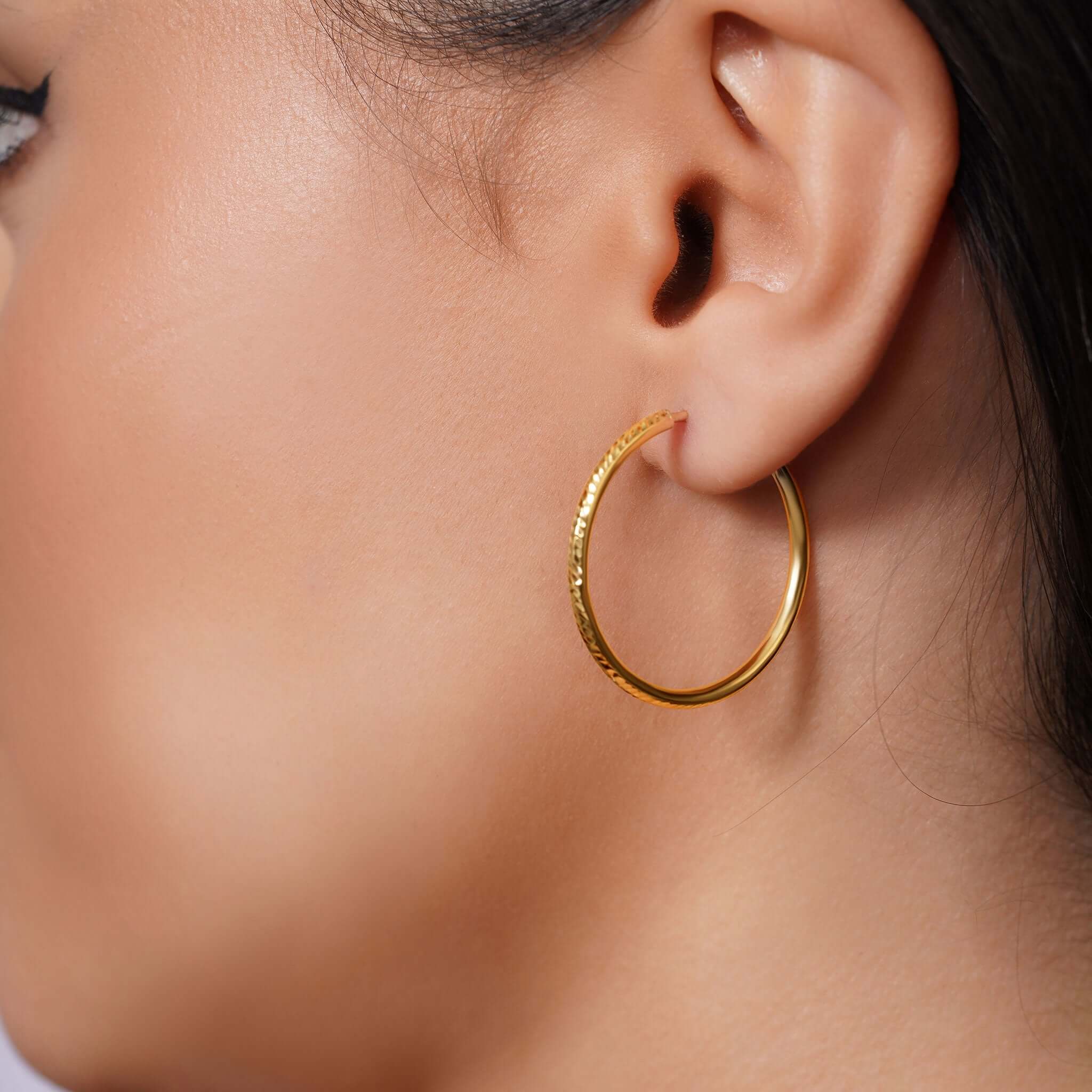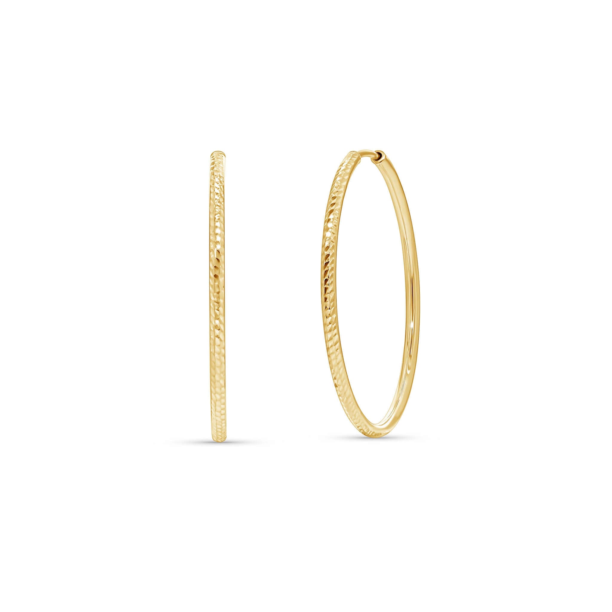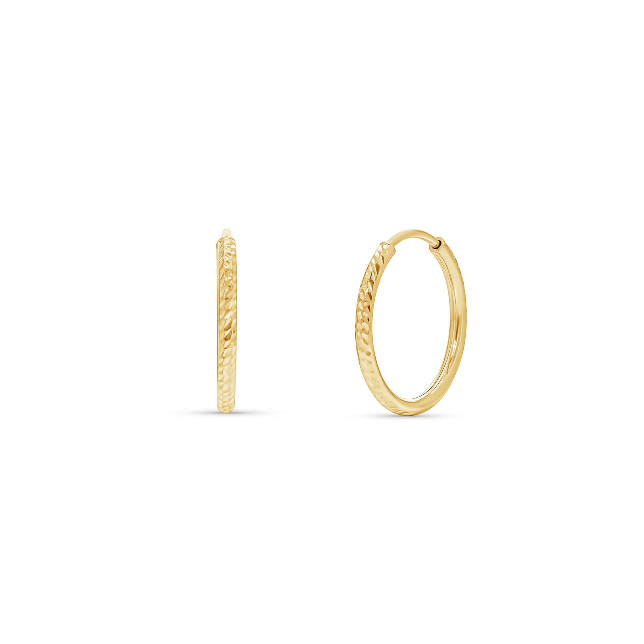 Our Textured Gold Endless Hoop Earrings, made from solid 14K gold, features a textured surface that shimmers softly in the light, adding dimension and personality without going over the top.