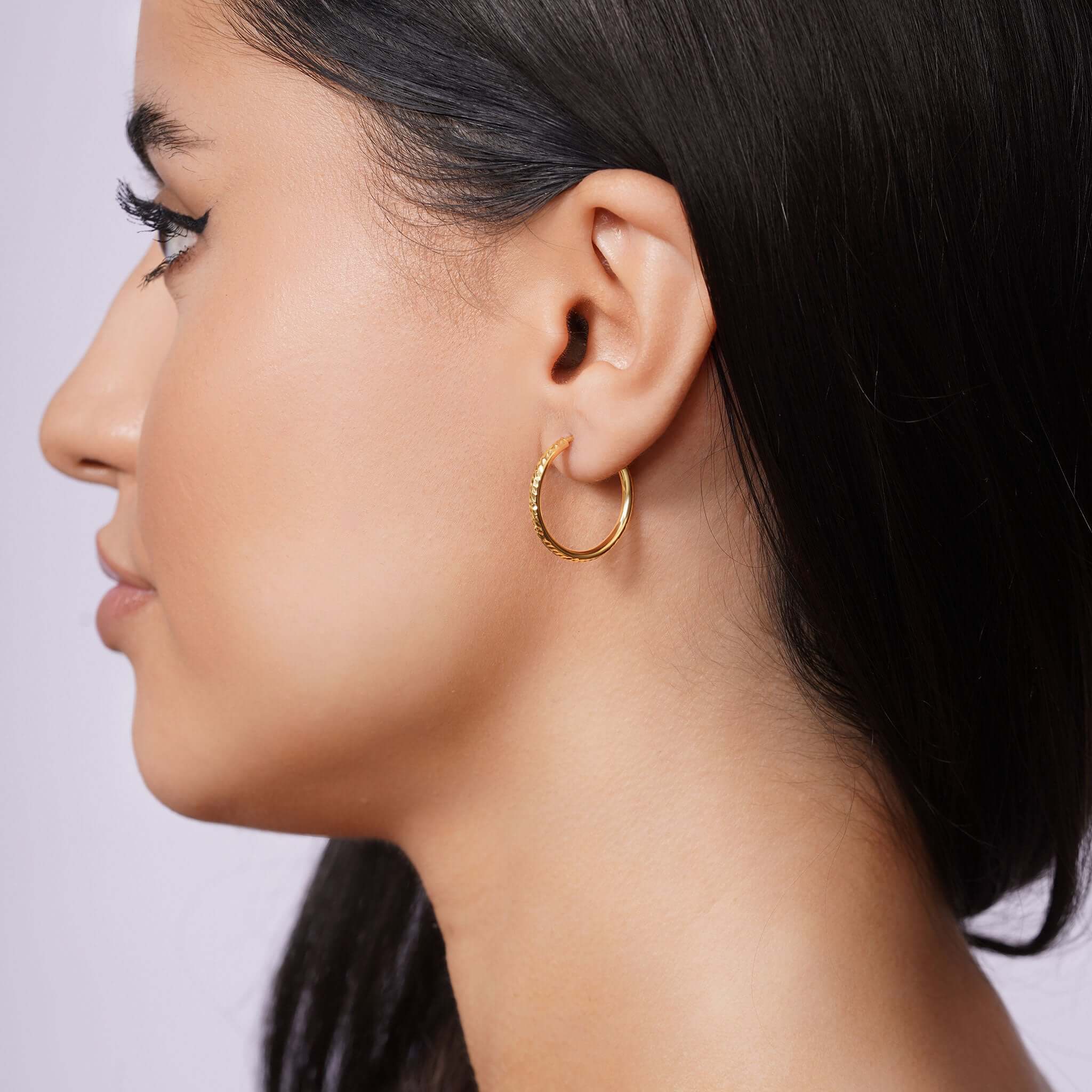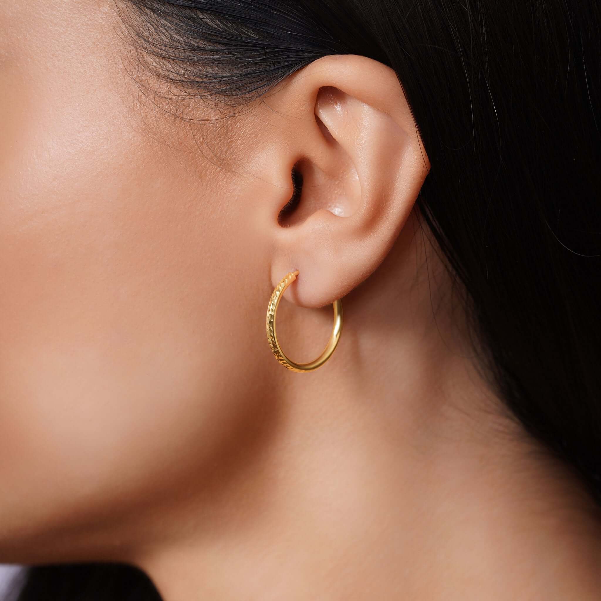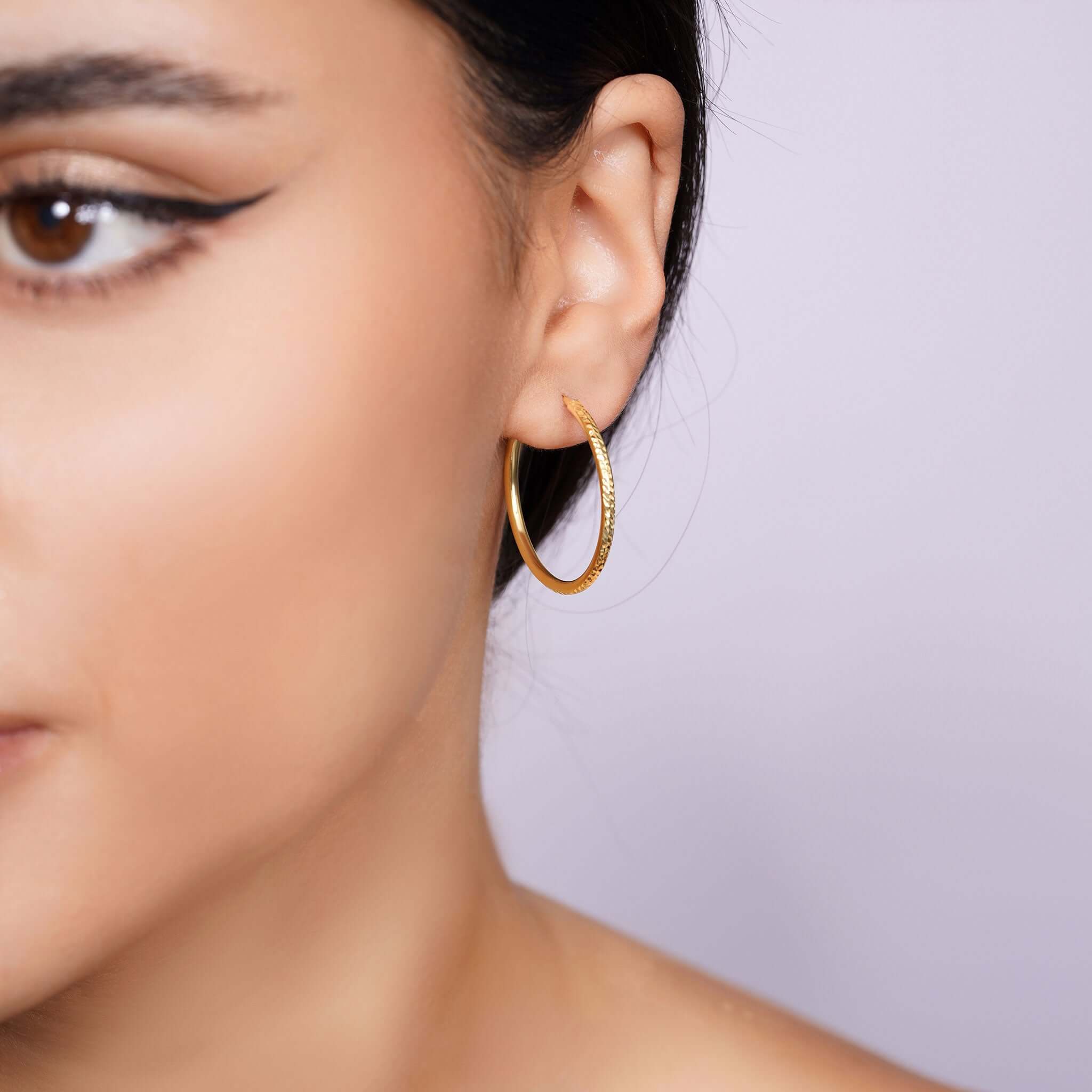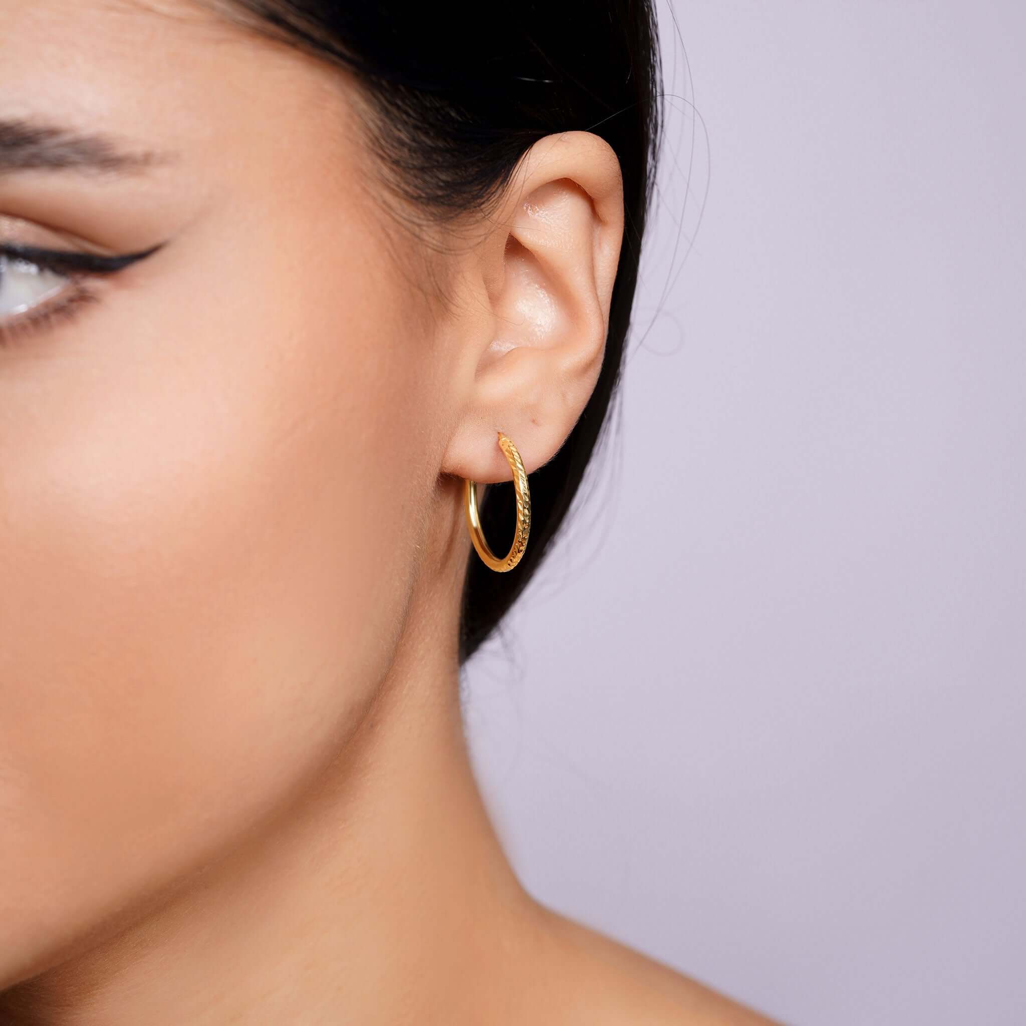 Our Textured Gold Endless Hoop Earrings, made from solid 14K gold, features a textured surface that shimmers softly in the light, adding dimension and personality without going over the top.