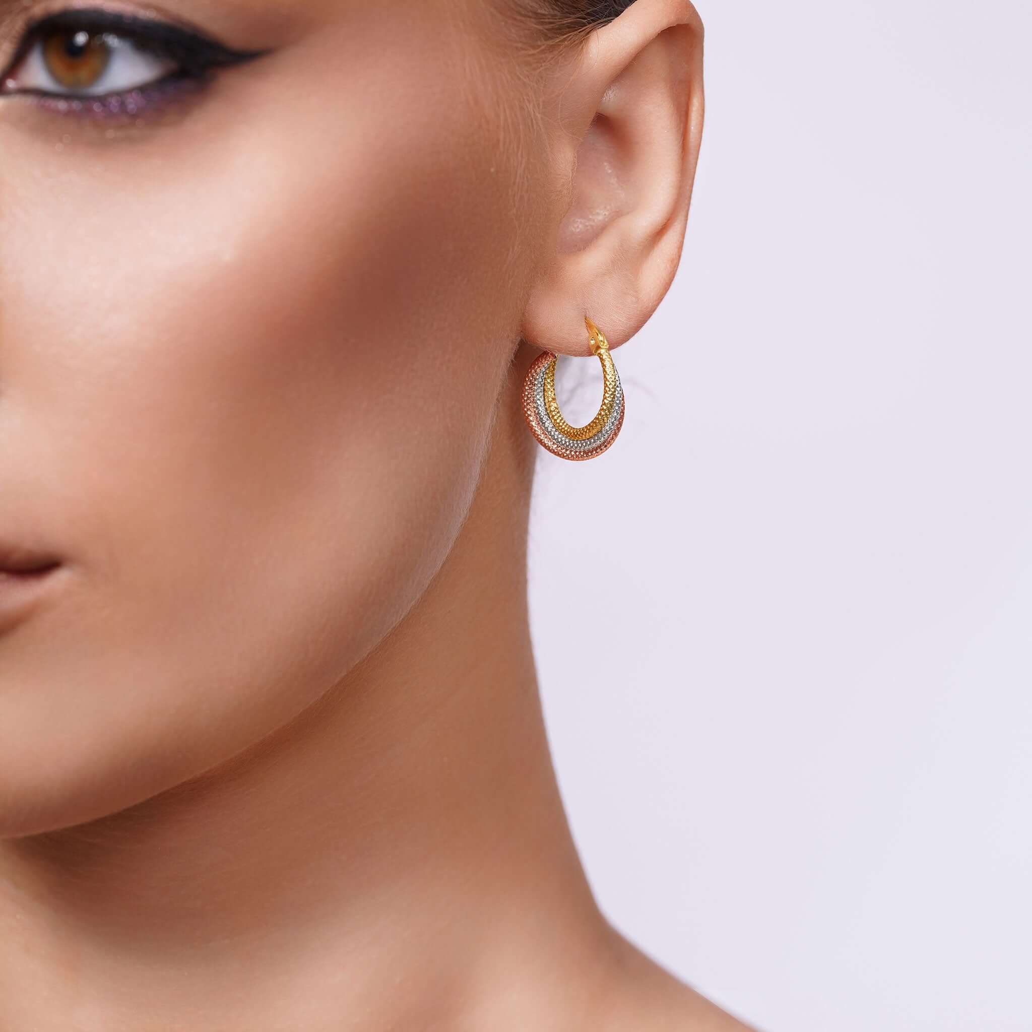 Whether paired with a crisp white shirt, mixed-metal accessories, or your favorite little black dress, these earrings become a versatile signature piece. They’re the ideal way to introduce tasteful texture and three-tone contrast into any jewelry rotation.