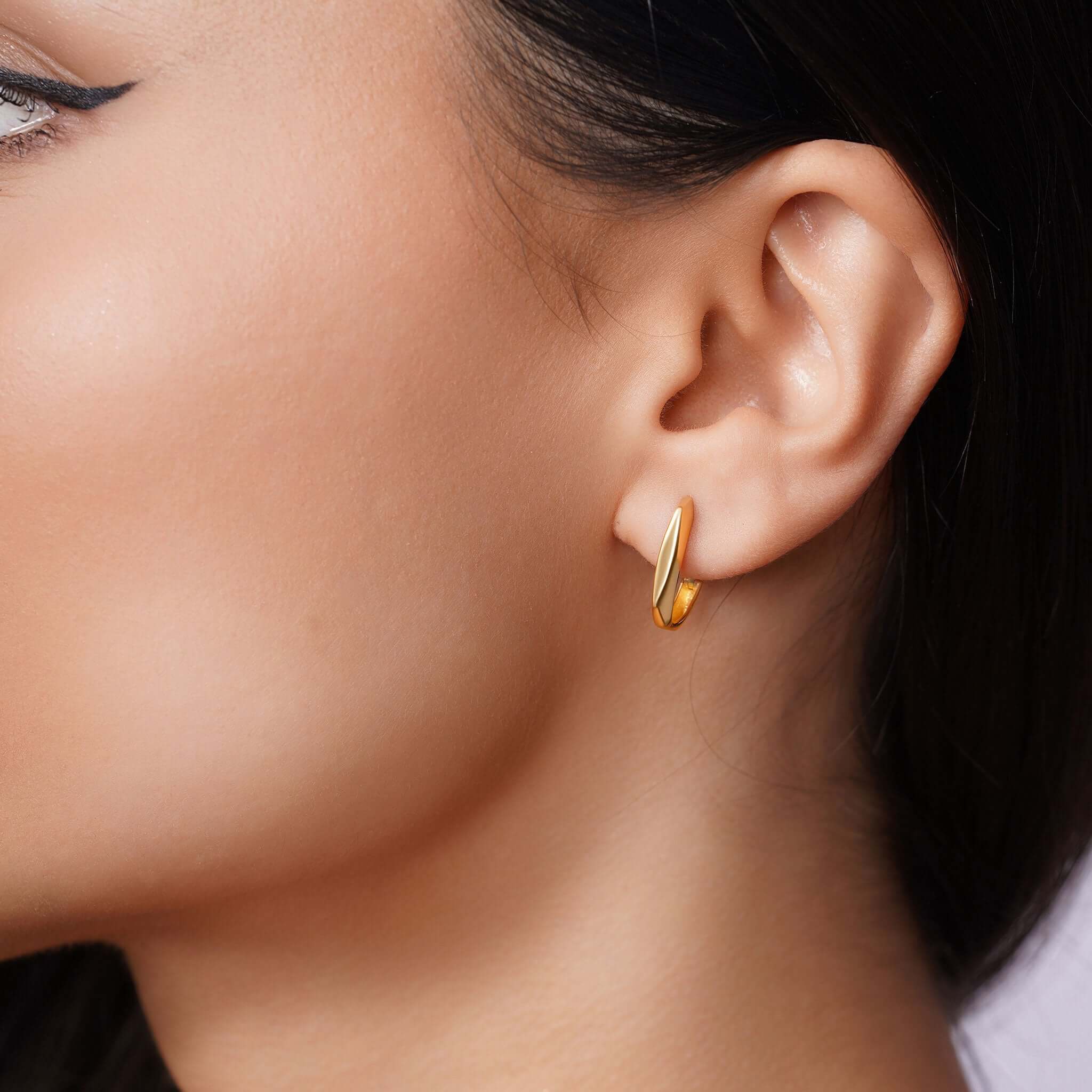 The sharp-edged U shape flatters the contours of the ear while bringing a fresh twist to traditional hoops. Whether paired with casual outfits or elevated evening looks, these huggies deliver a sleek, modern vibe with effortless style.