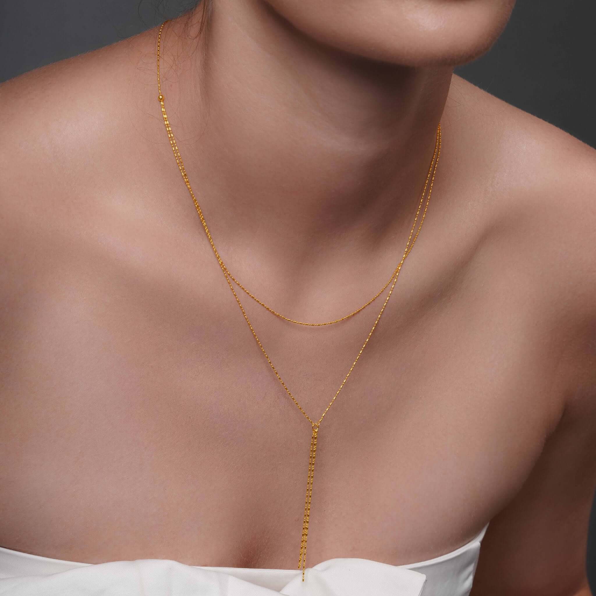 Elevate your accessory collection with this Adjustable Layered Multi Strand Dangle Necklace. Featuring two elegantly layered strands, it showcases vertical multi strands that dangle gracefully at the bottom, adding dynamic movement and sophistication. The adjustable design ensures a perfect fit for any neckline, making it a versatile choice for both casual and formal occasions. Crafted to enhance your style with expert precision, this necklace combines contemporary layering with timeless elegance.