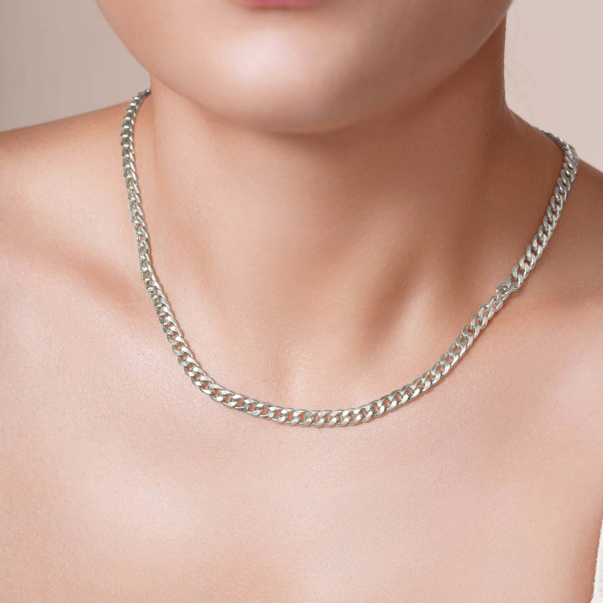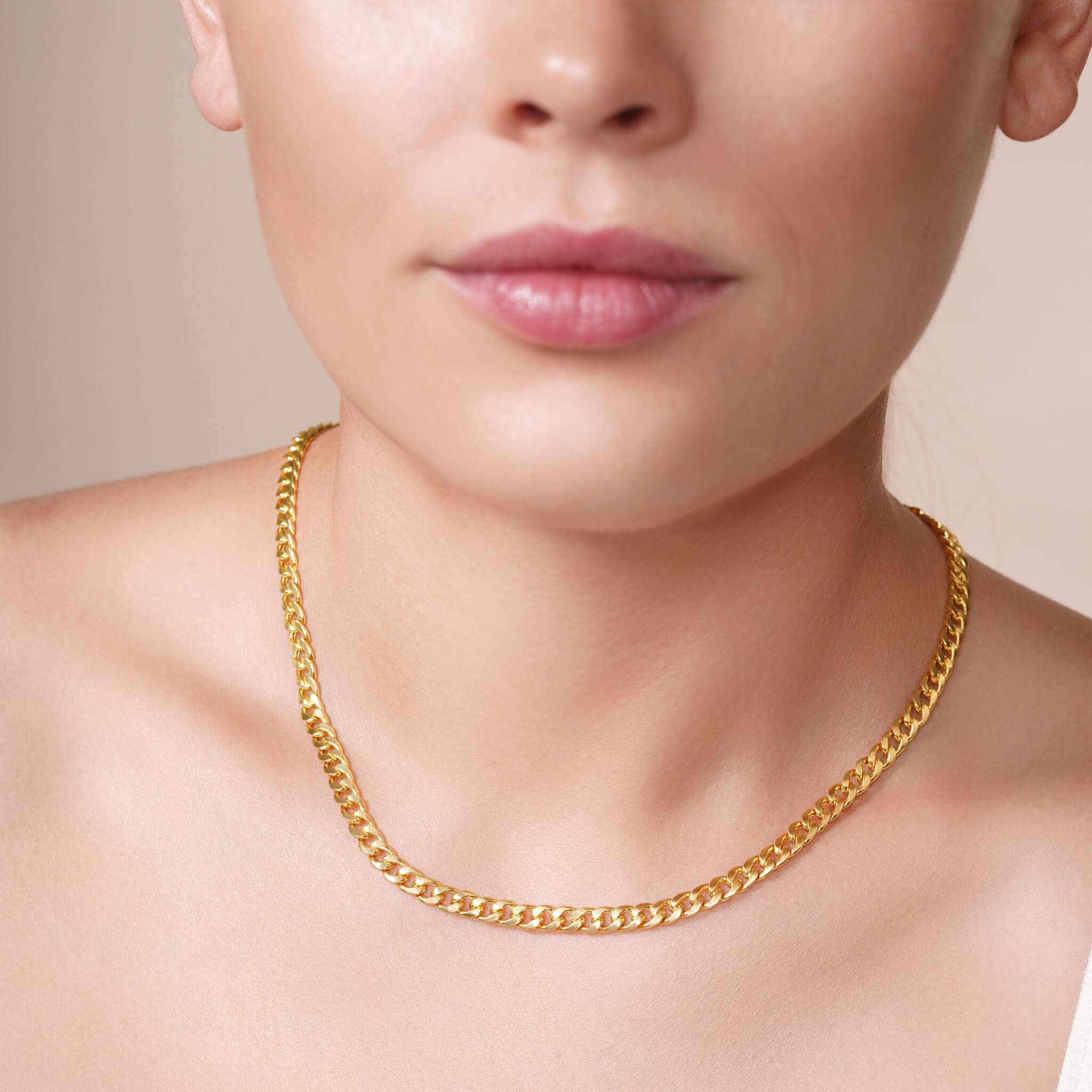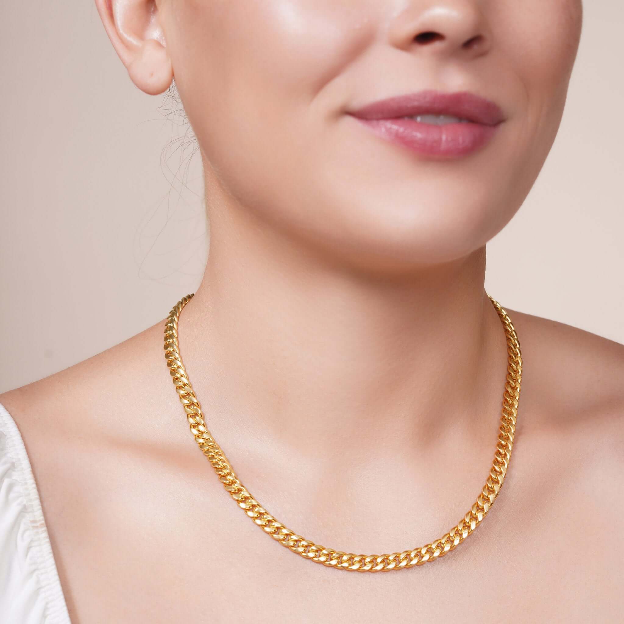 The Lightweight Cuban Link Chain for women features a refined take on the classic Cuban link design, with closely woven oval links that lie flat and catch the light beautifully. Crafted from 14k solid gold or white gold, it balances elegance with durability for everyday wear.